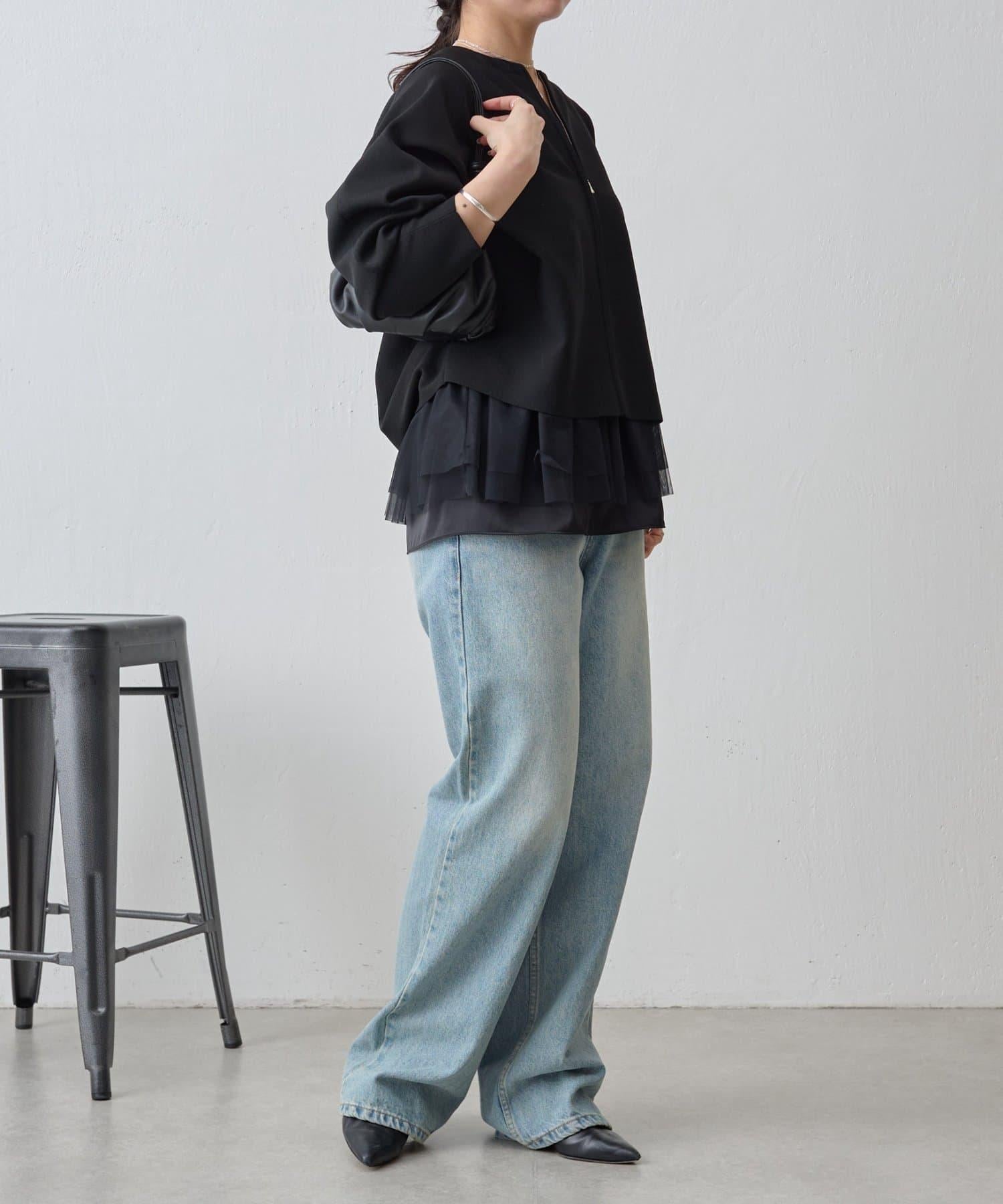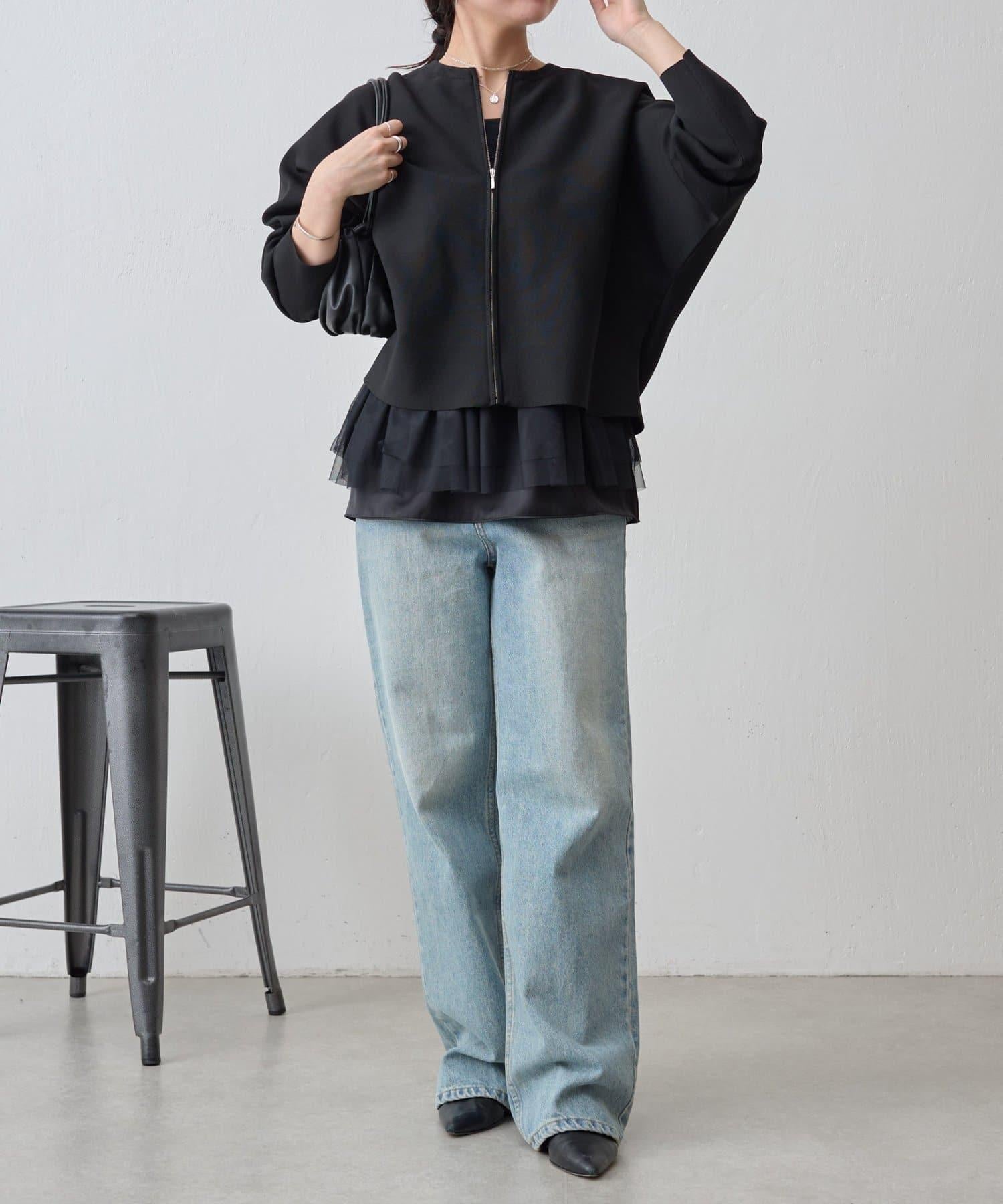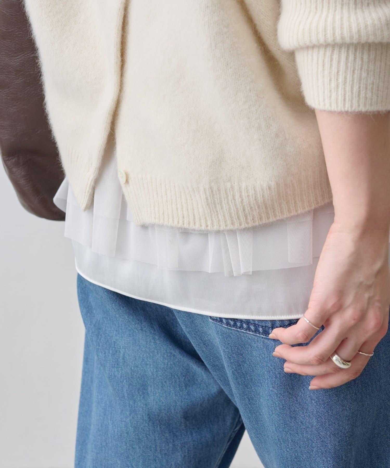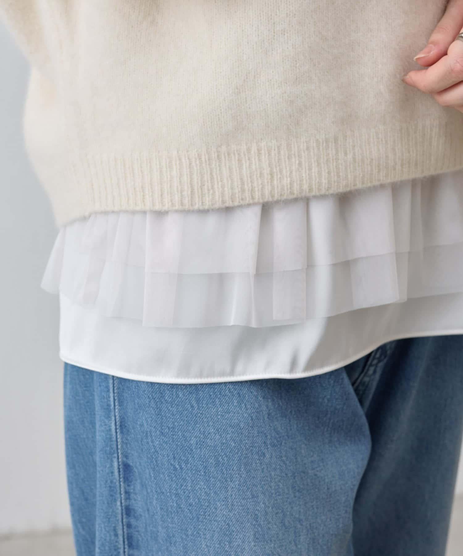 將它疊穿在針織衫或剪裁縫製的衣服裡,蓬蓬裙就會從下襬露出來。
