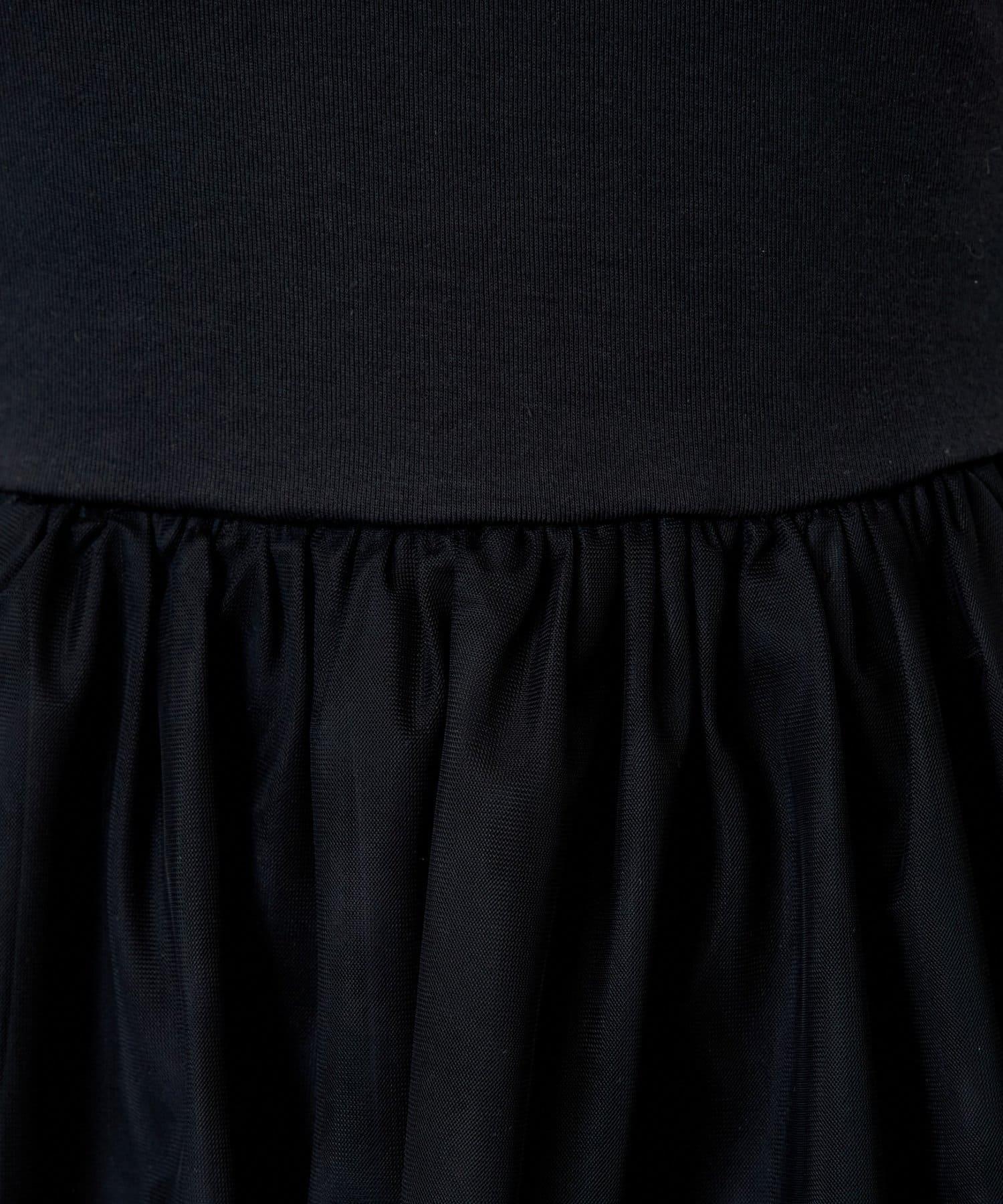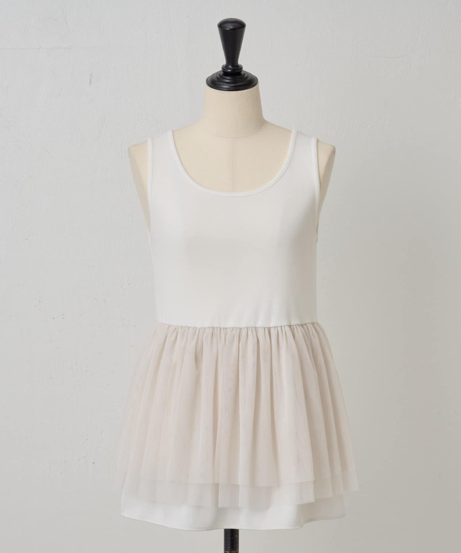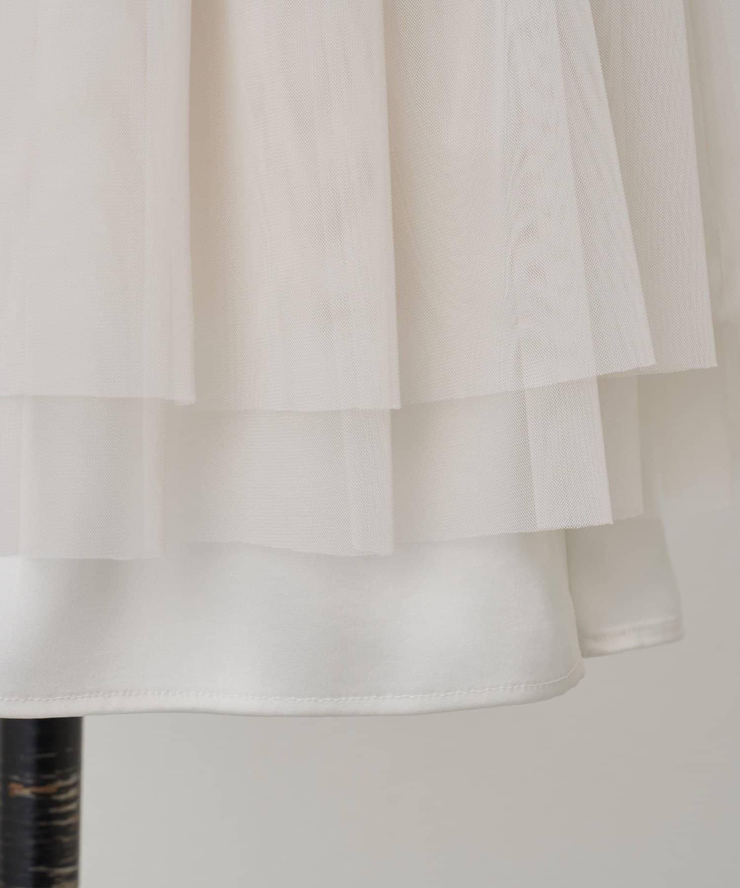 內搭綢緞面料,背心下襬疊加蓬蓬裙。