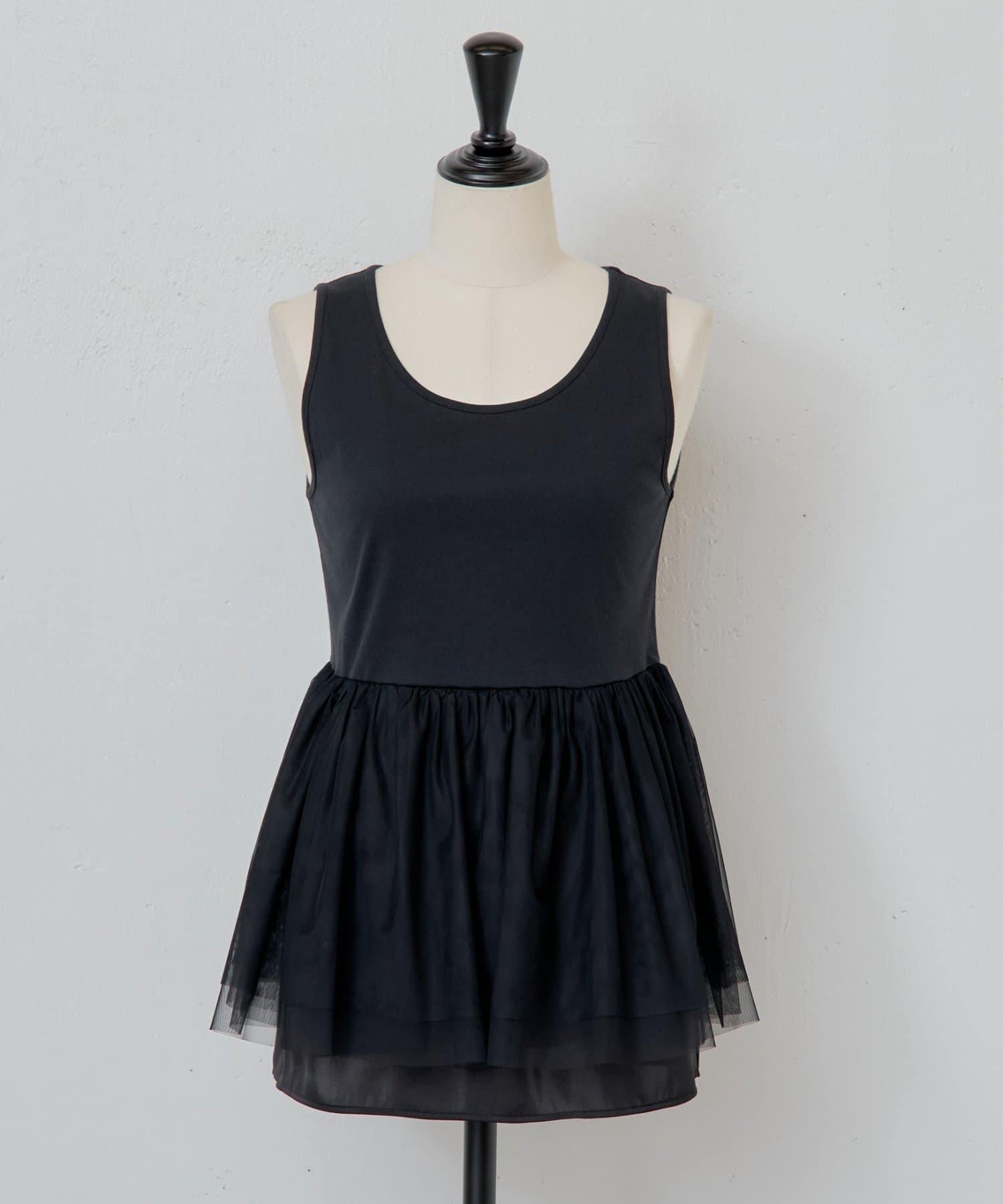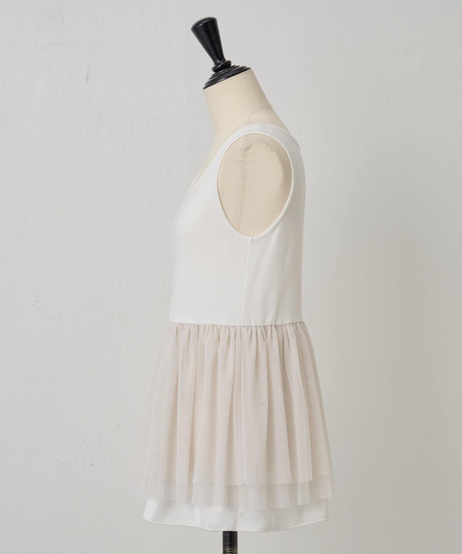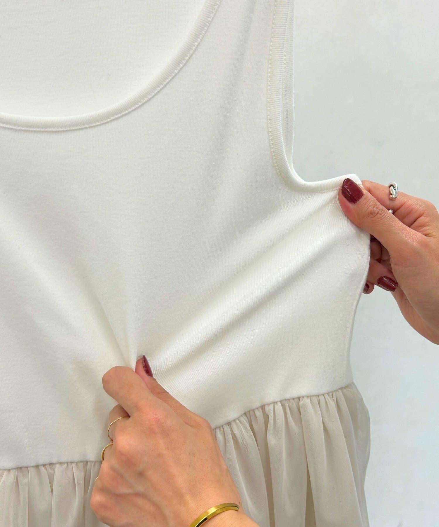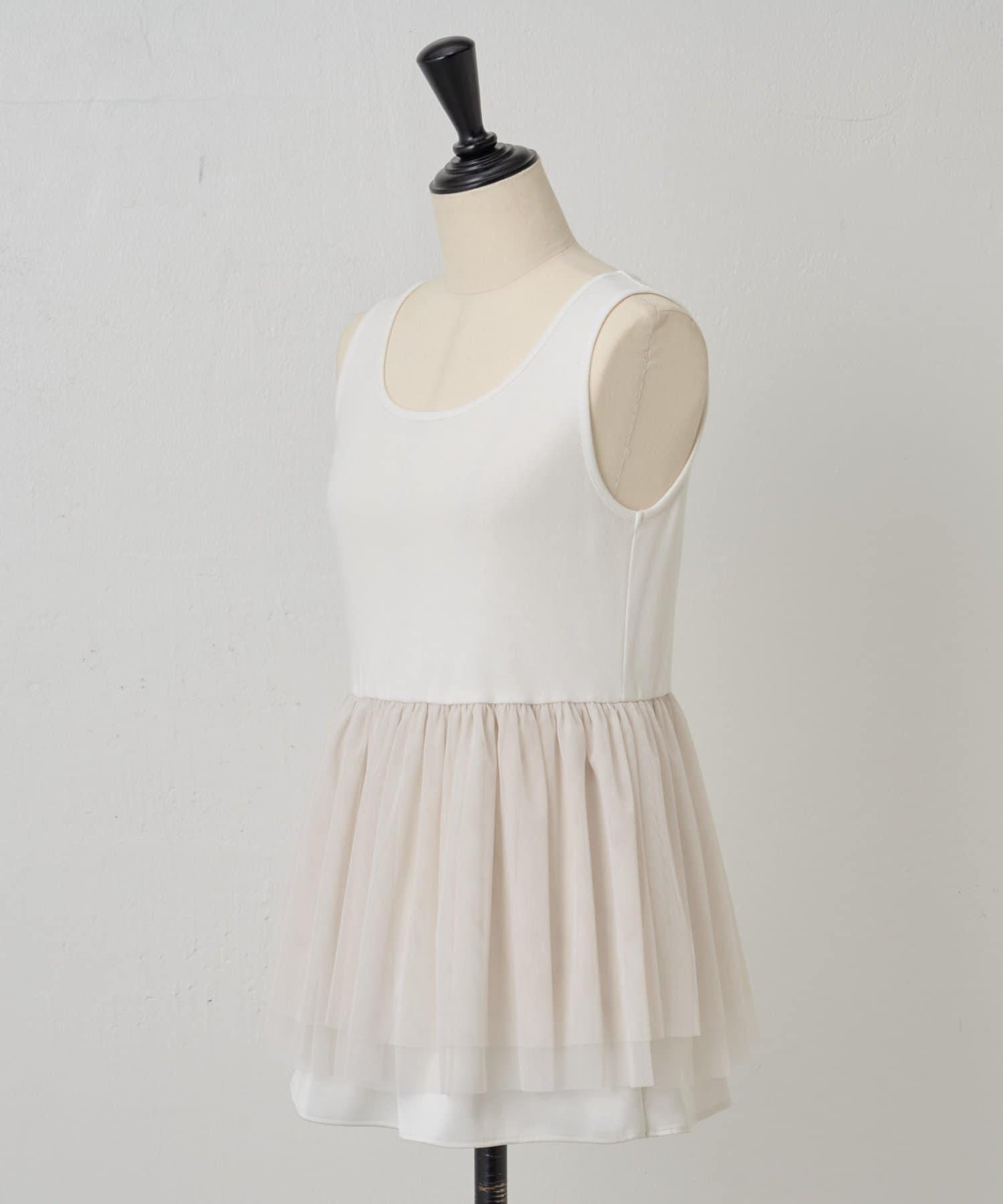 內搭綢緞面料,背心下襬疊加蓬蓬裙。