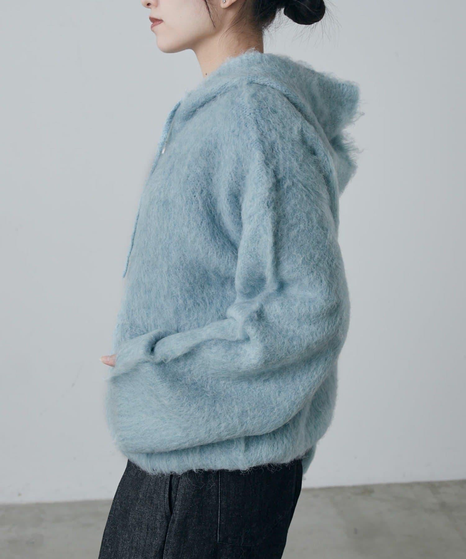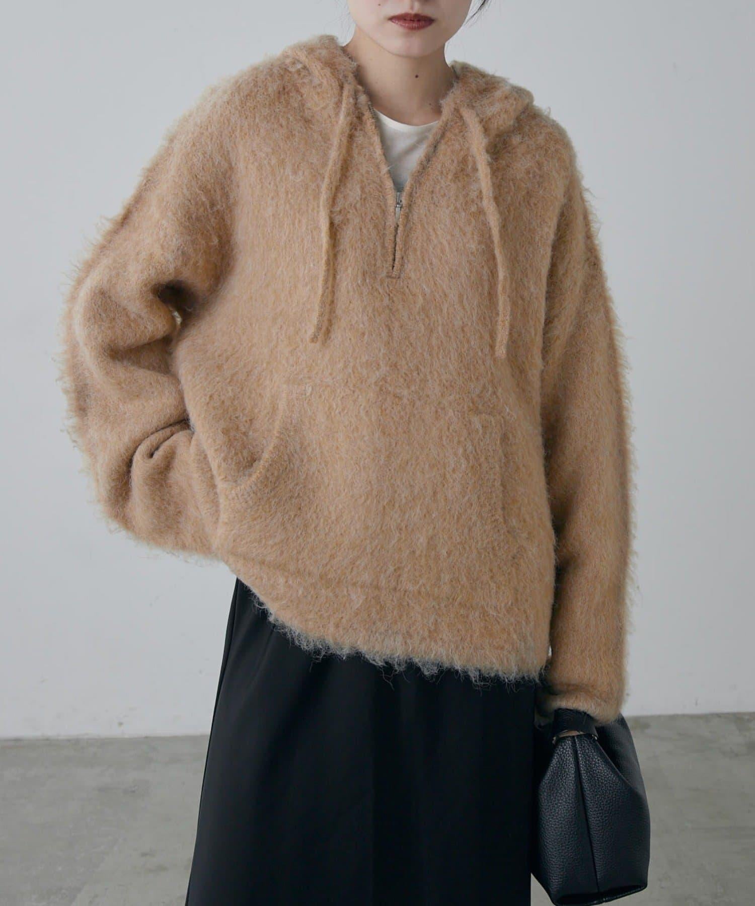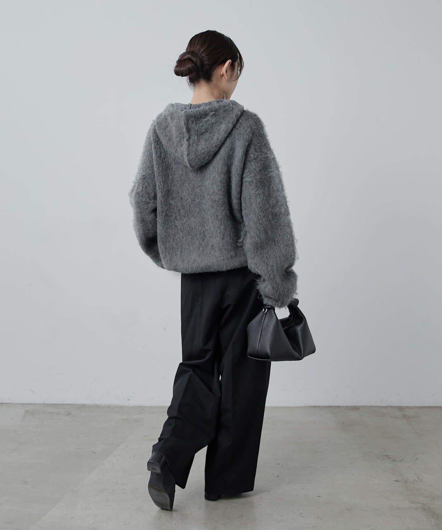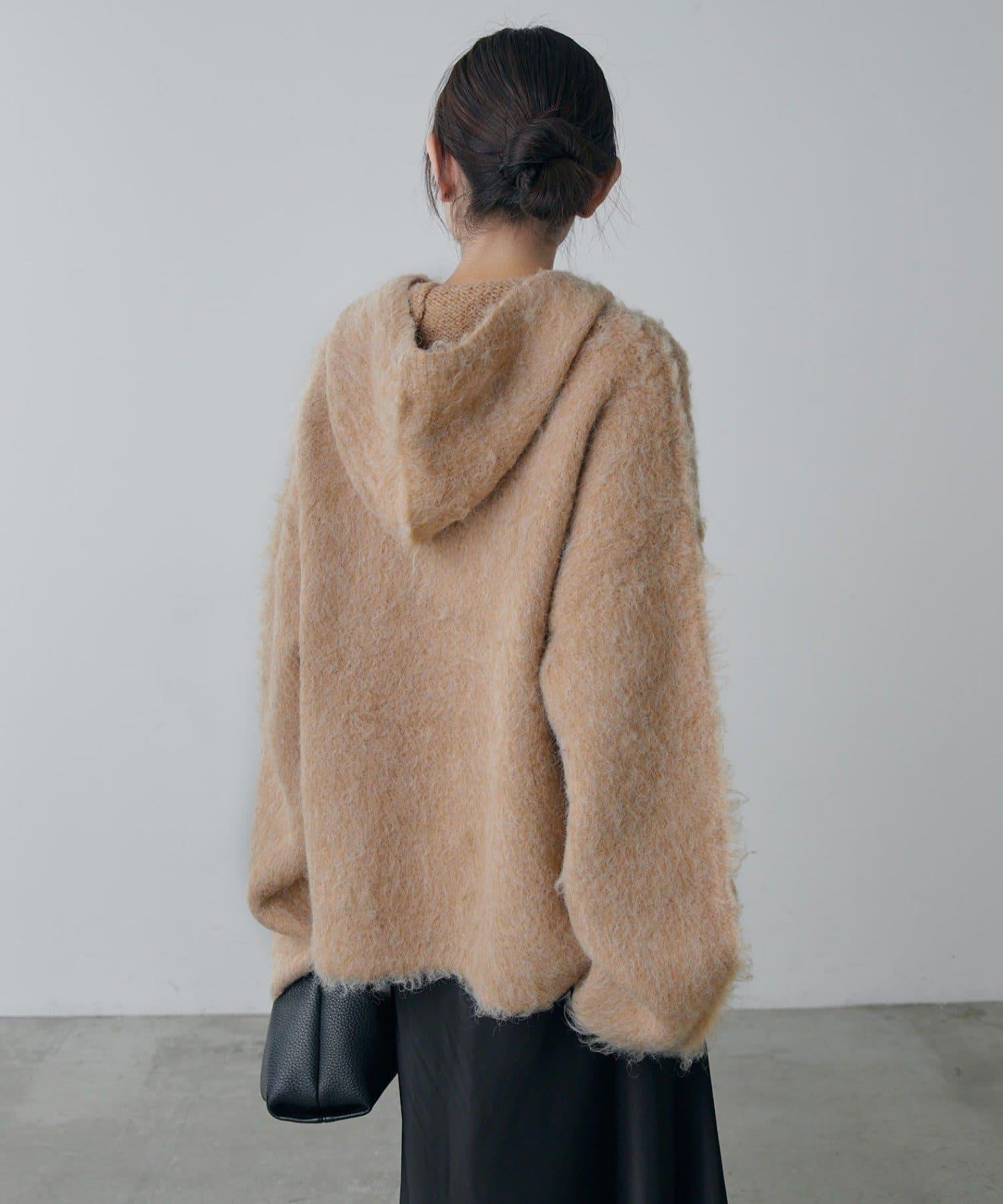 毛茸茸的針織雙拉鍊派克大衣具有蓬鬆的肌膚觸感,是必備單品!