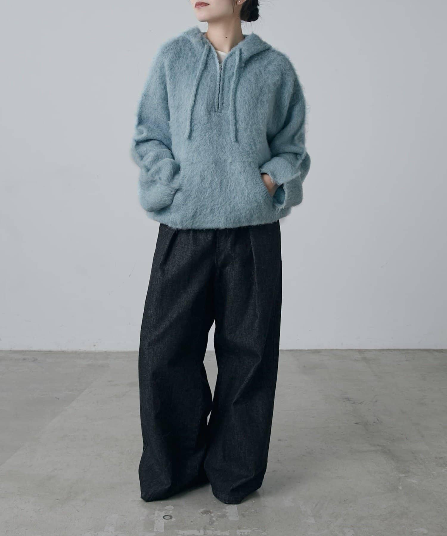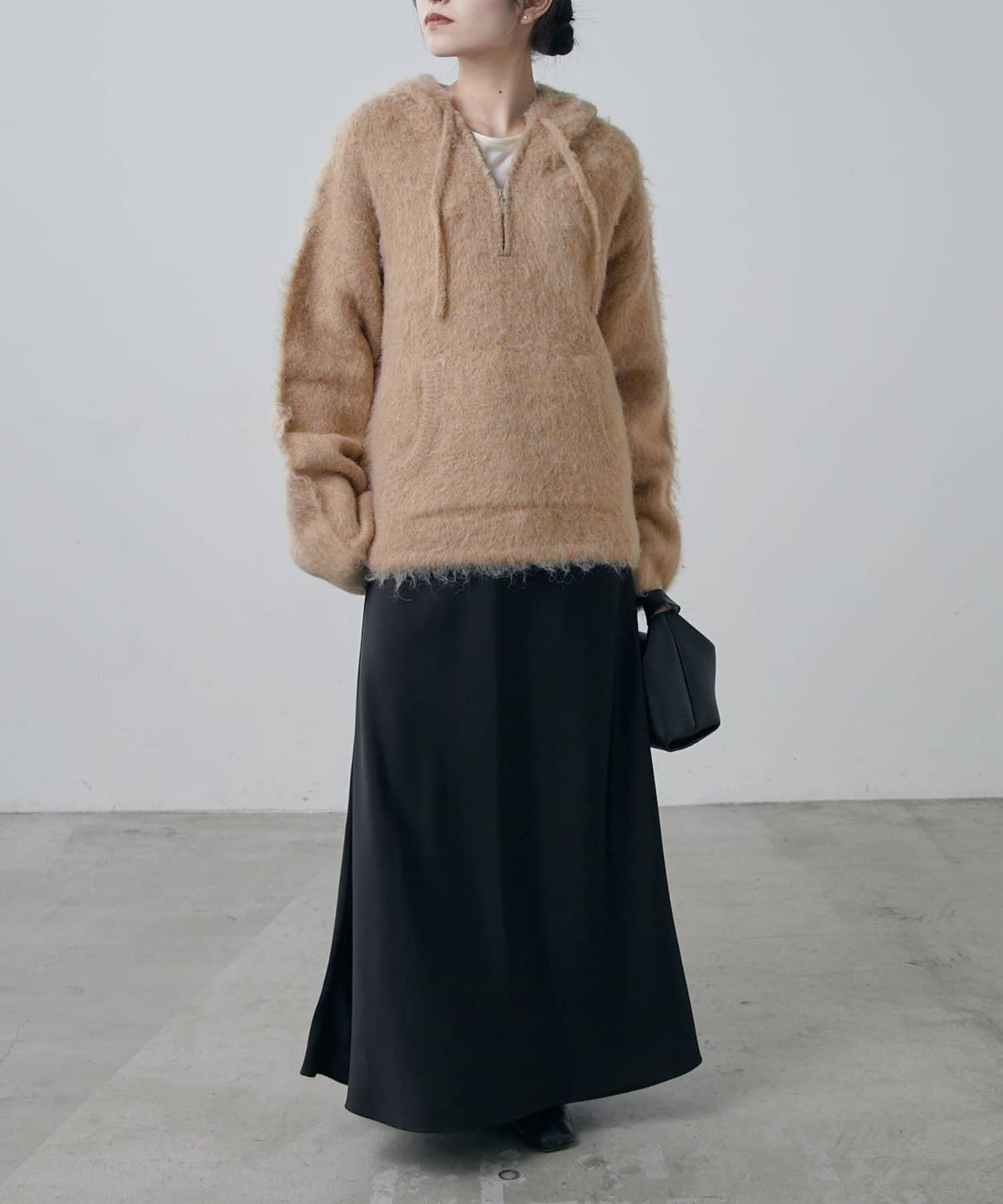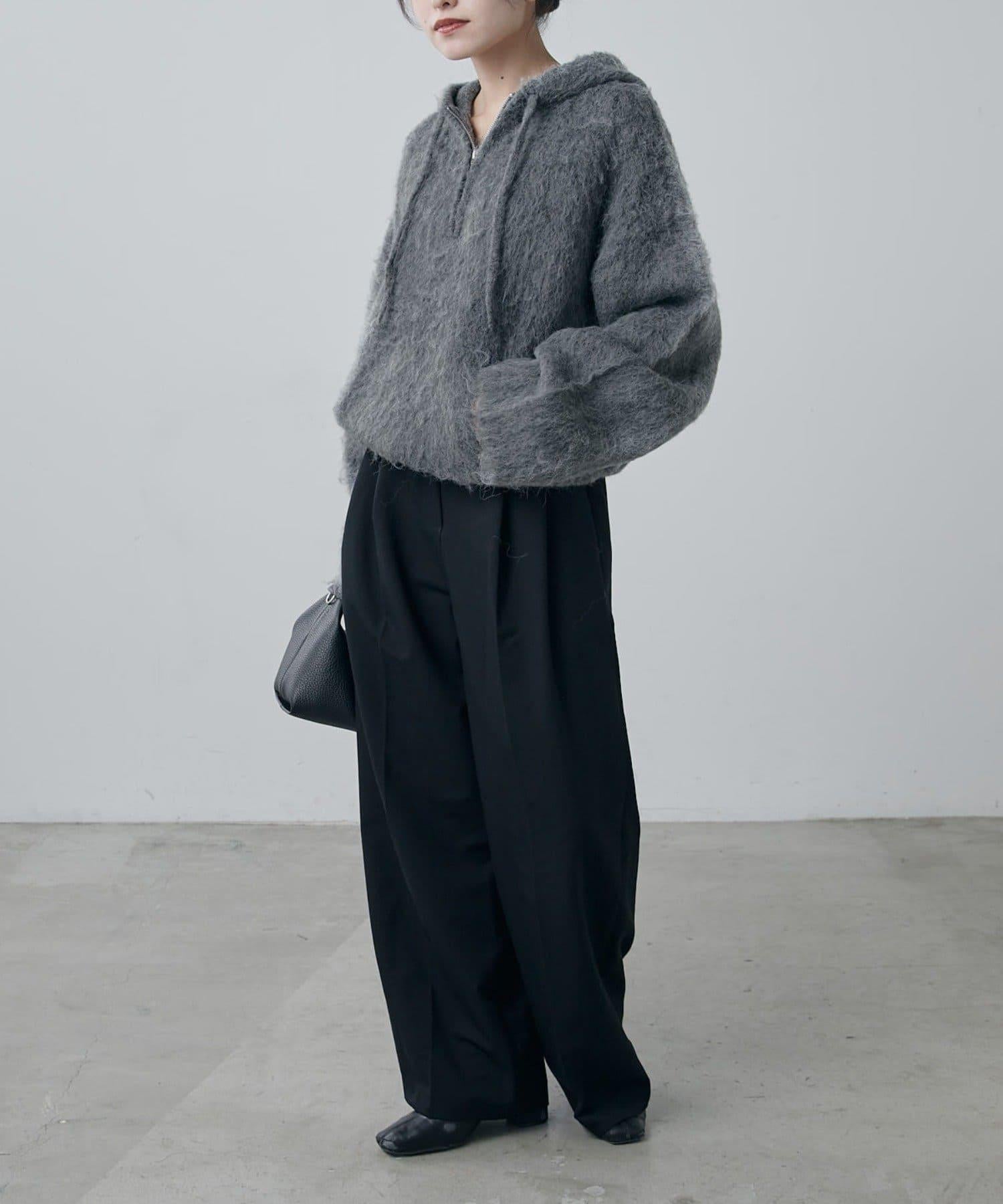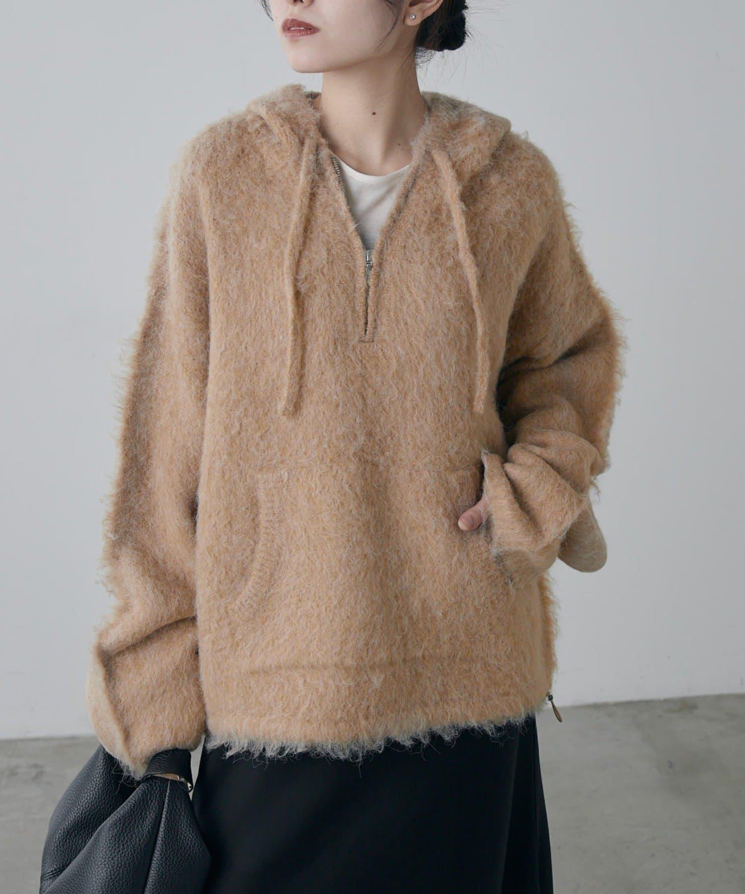 毛茸茸的針織雙拉鍊派克大衣具有蓬鬆的肌膚觸感,是必備單品!