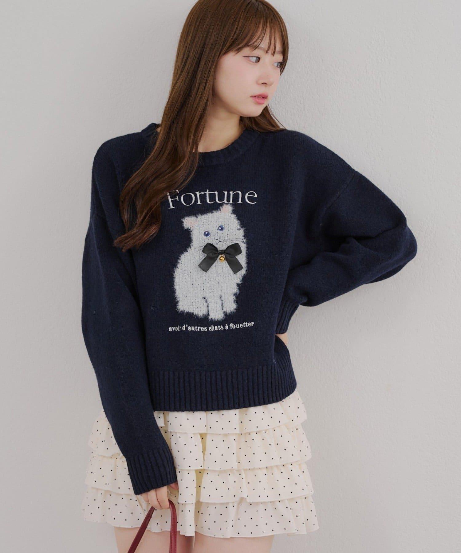 這是一款可愛的動物圖案針織衫,採用蓬鬆的毛茸茸針織面料。