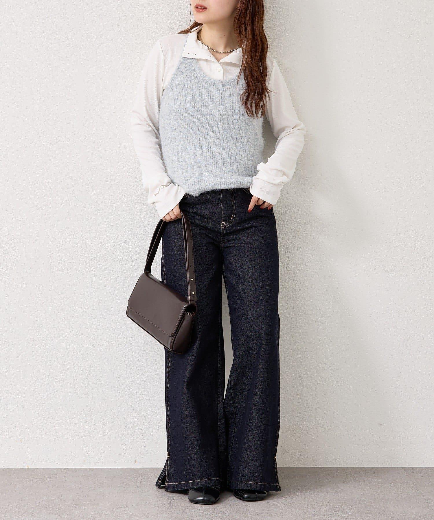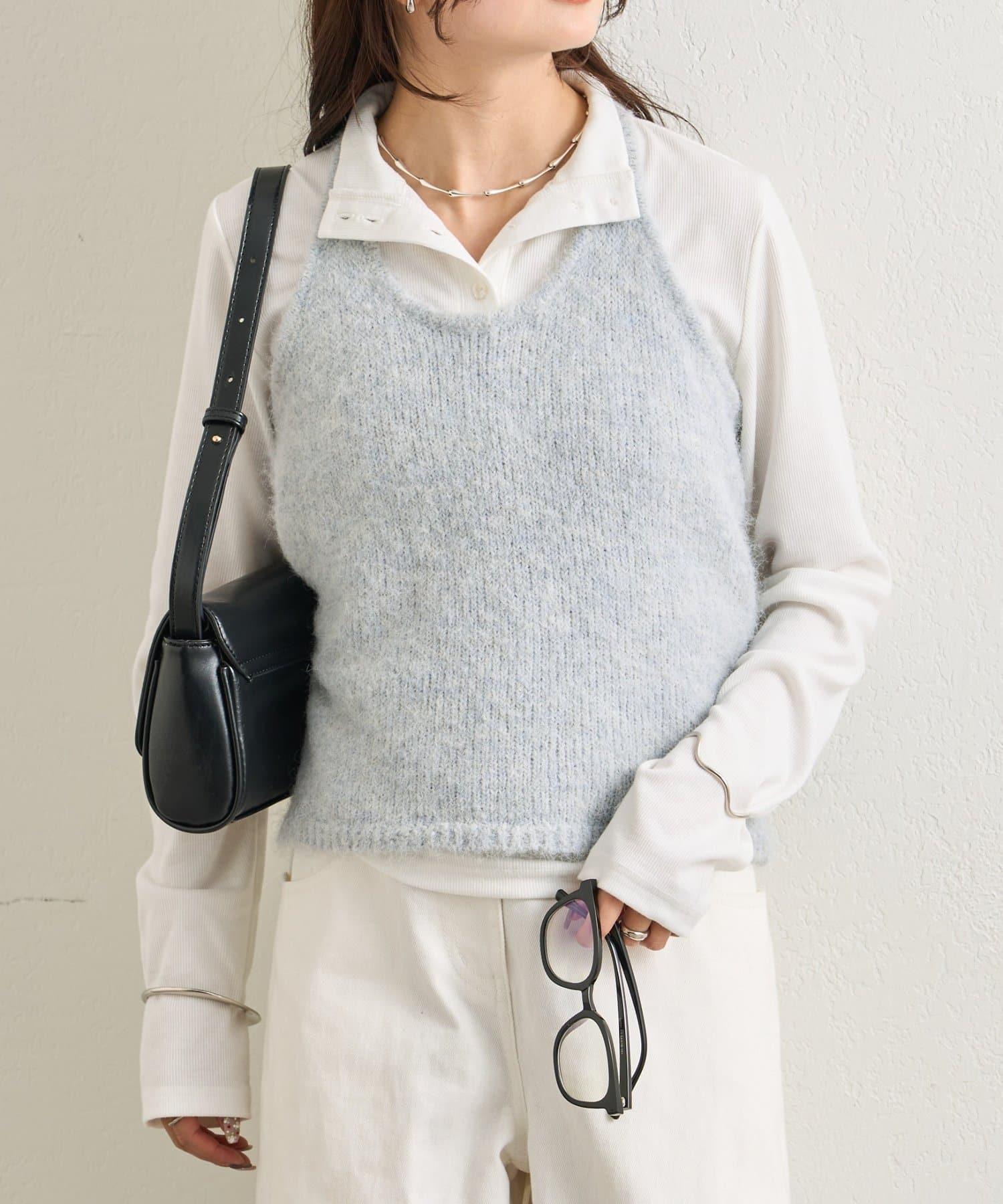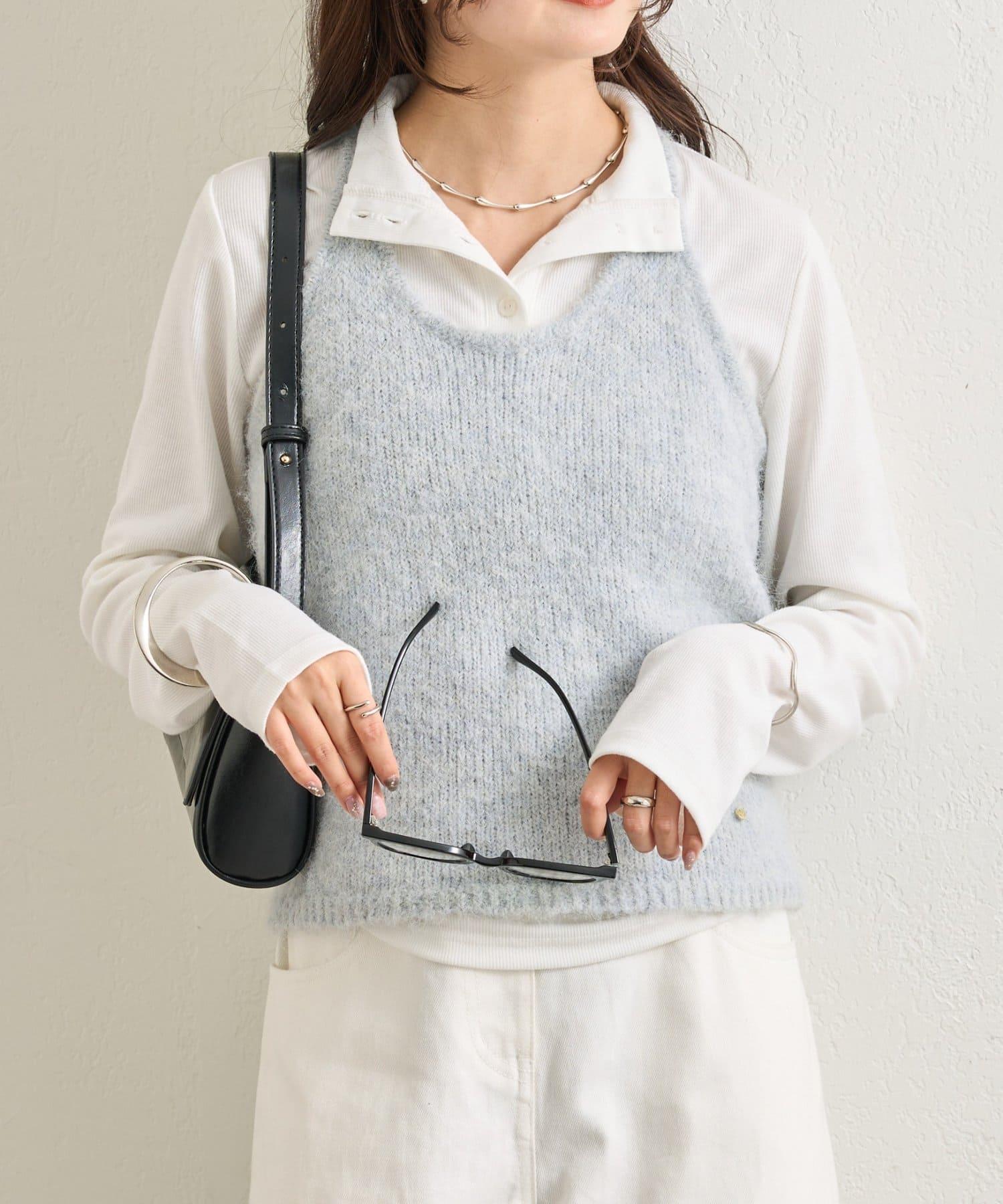 將它疊穿在剪裁合體的襯衫或襯衣上,打造休閒的韓式造型。