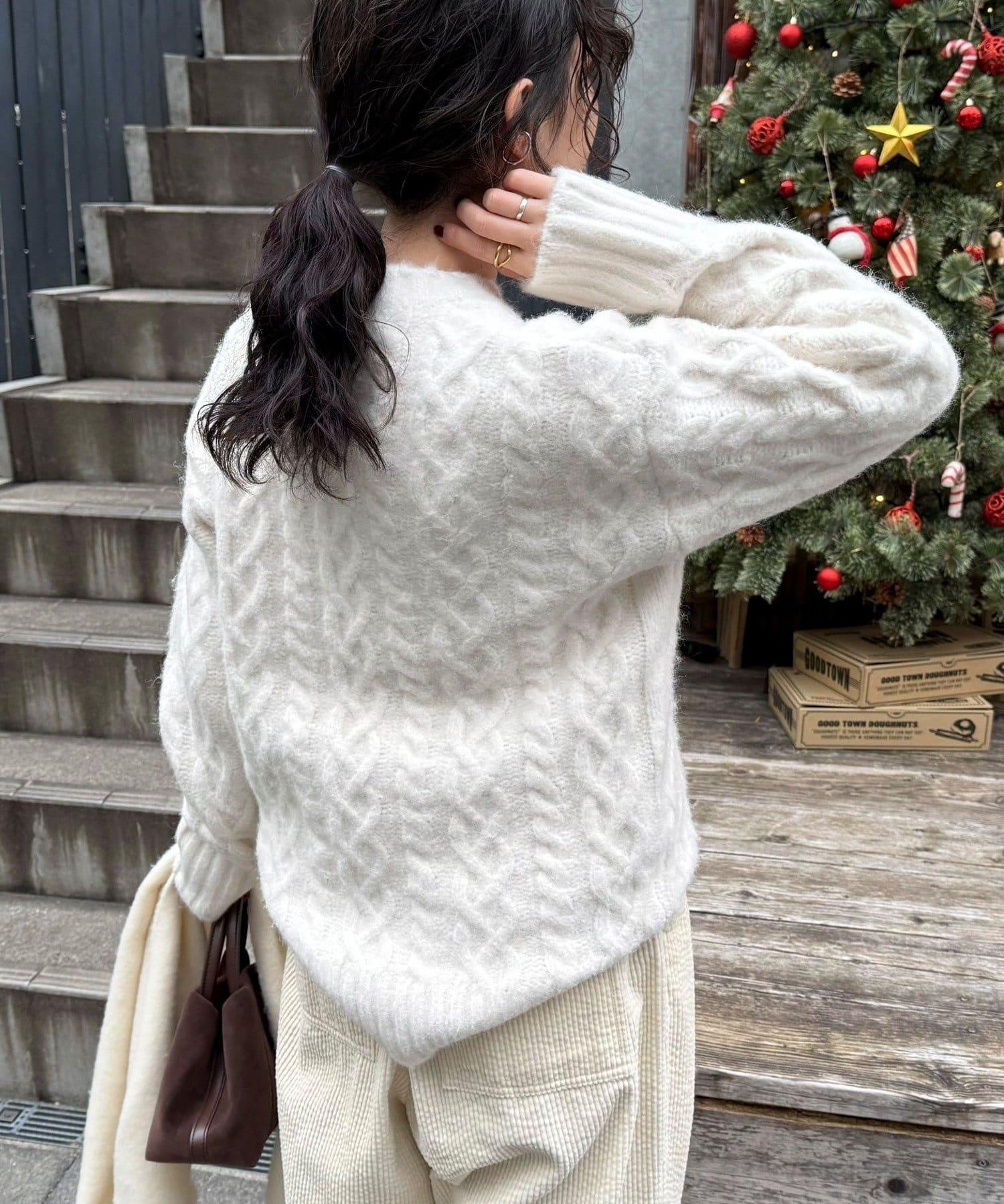 這款針織套頭衫質地柔軟蓬鬆。