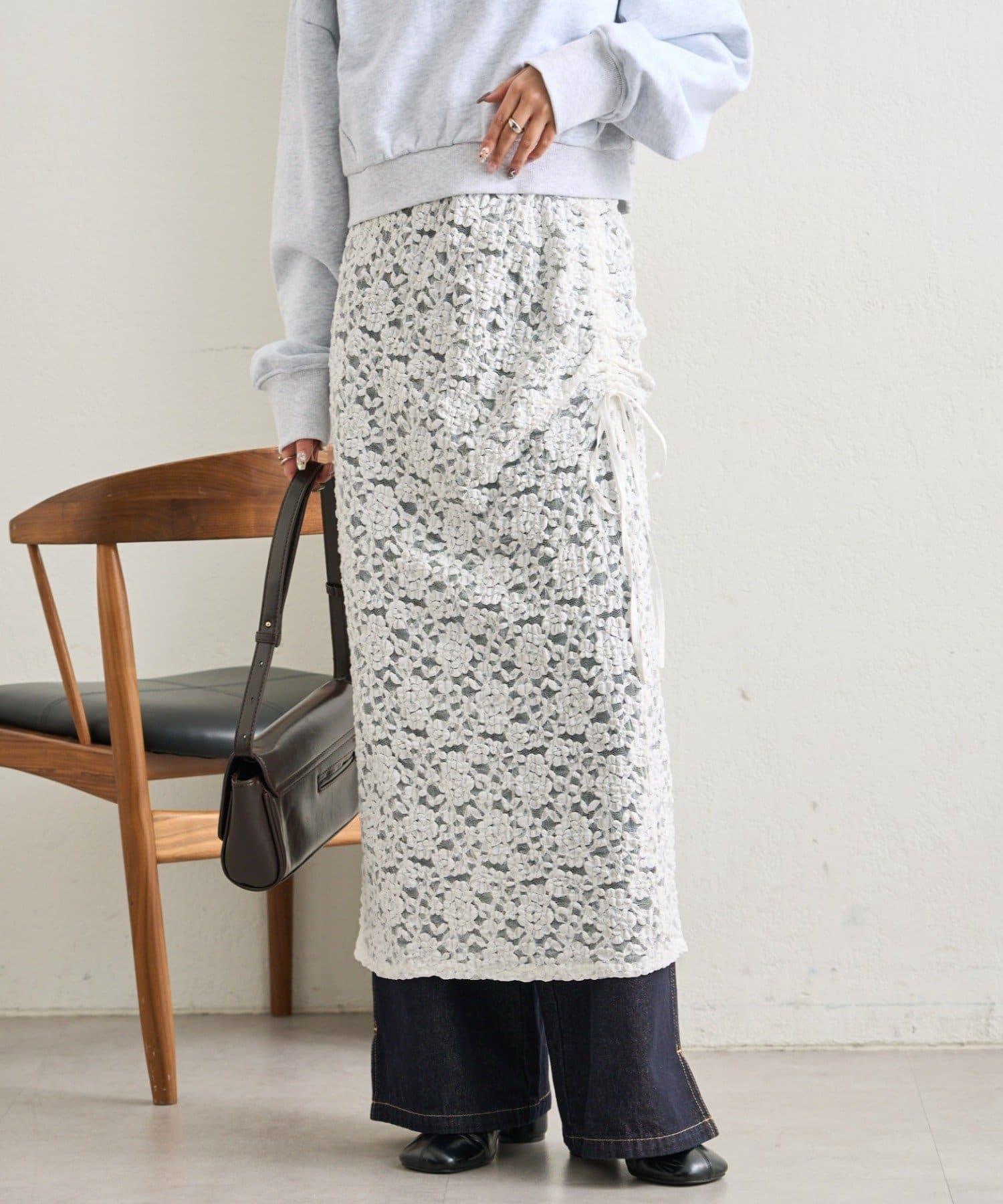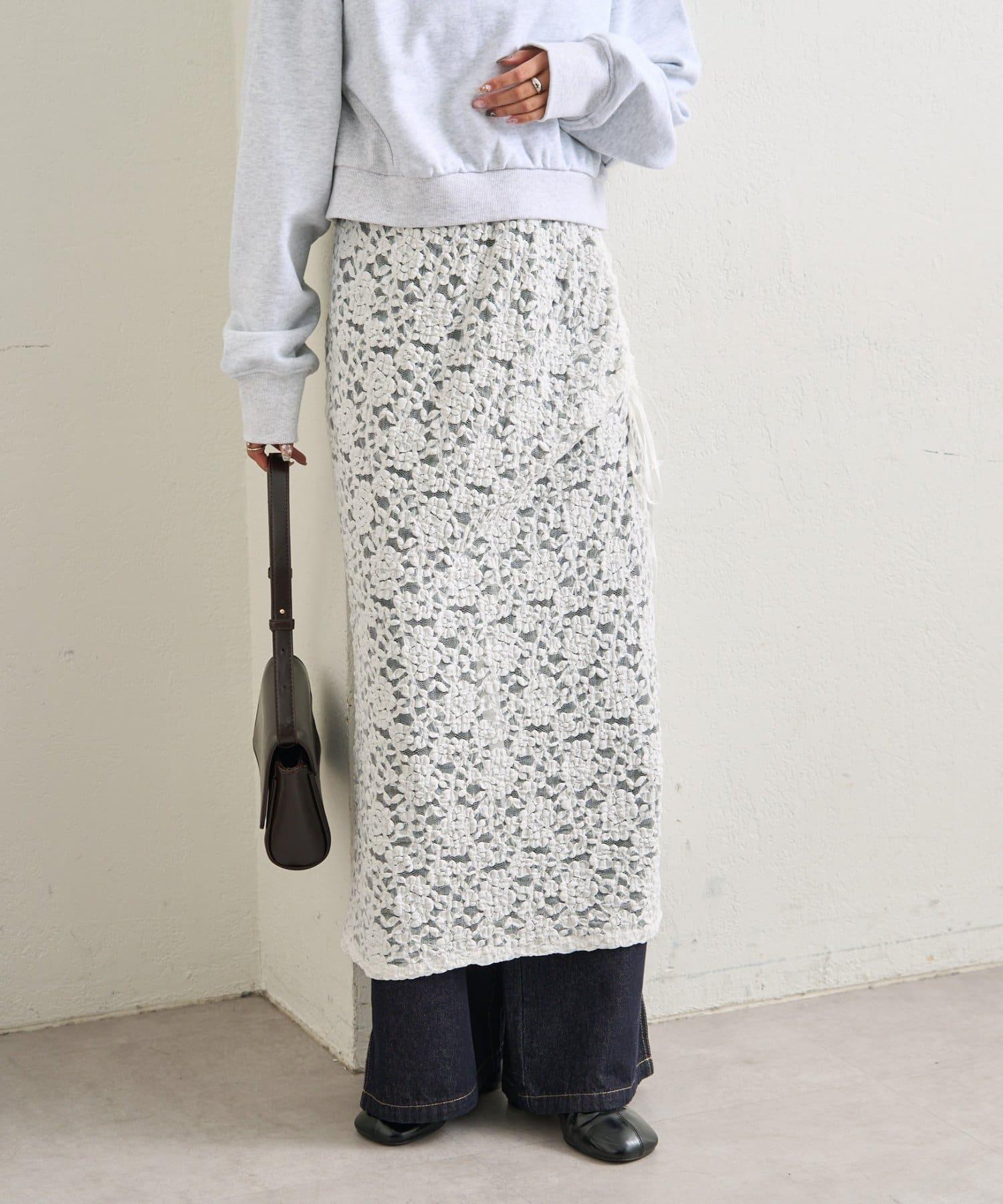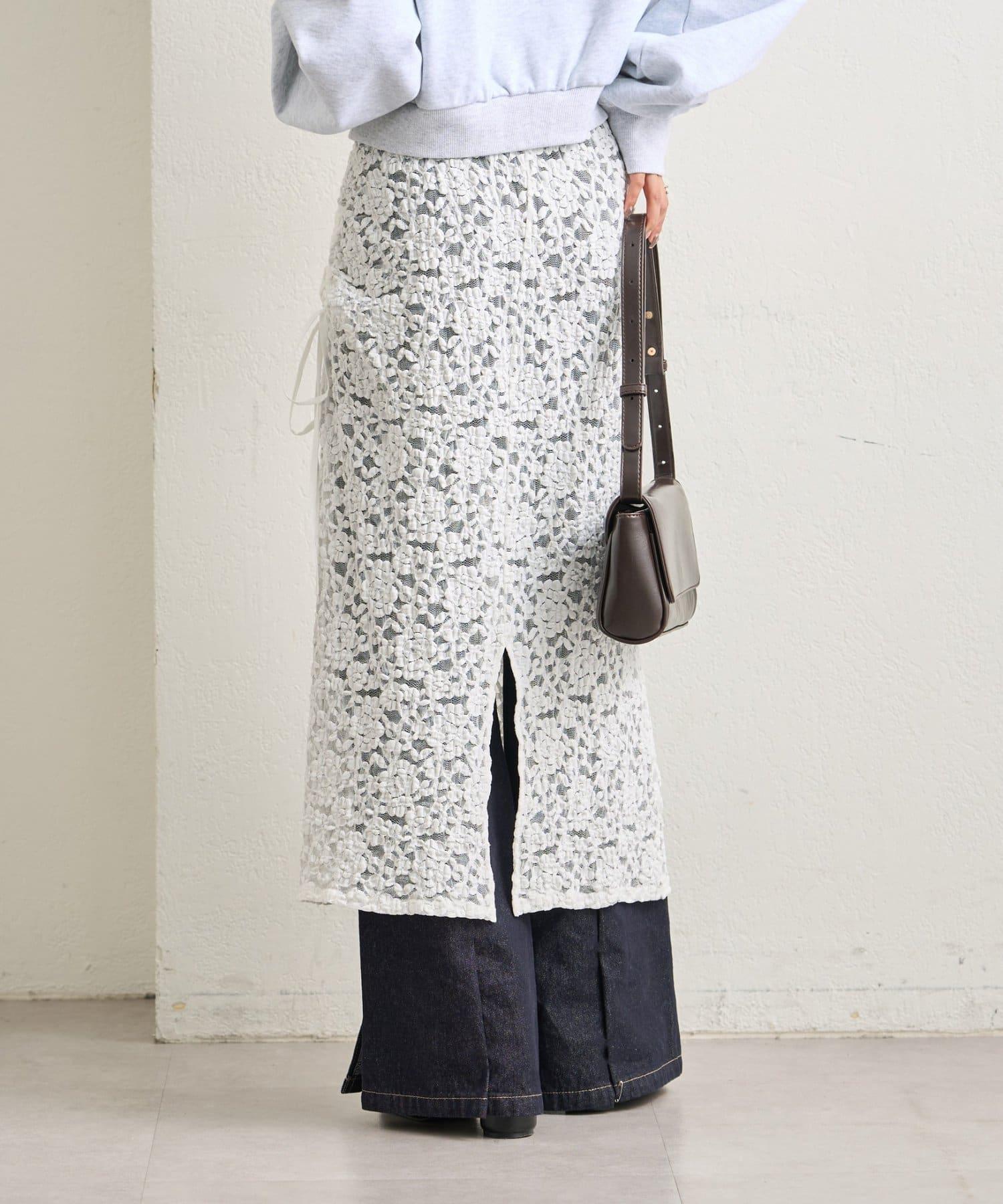 蕾絲裙既可作為裙子單穿,也可作為獨立單品疊穿在褲子外面。