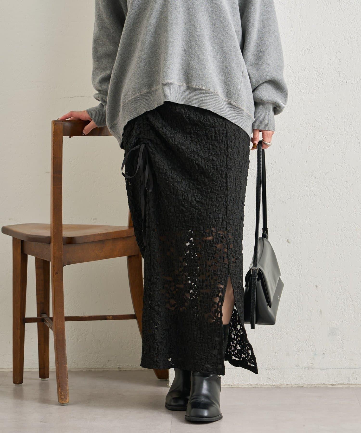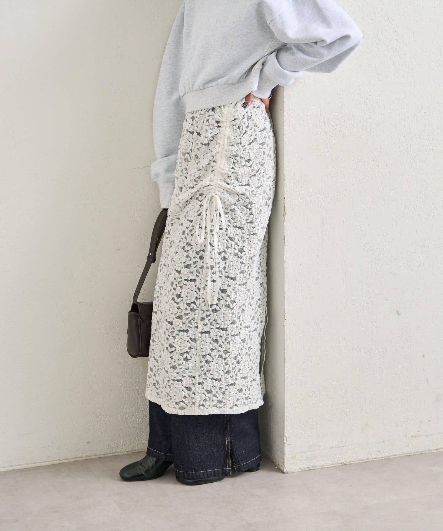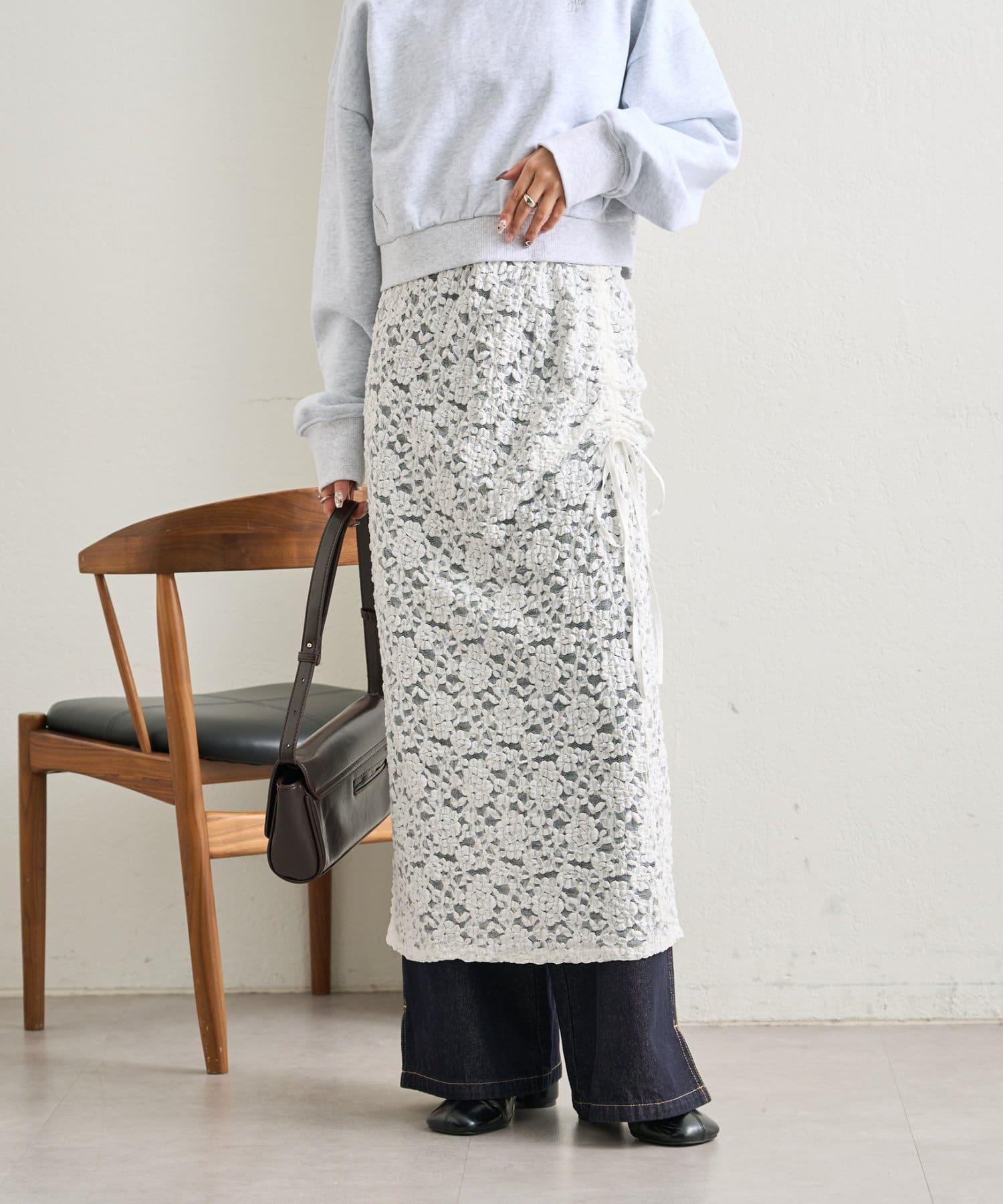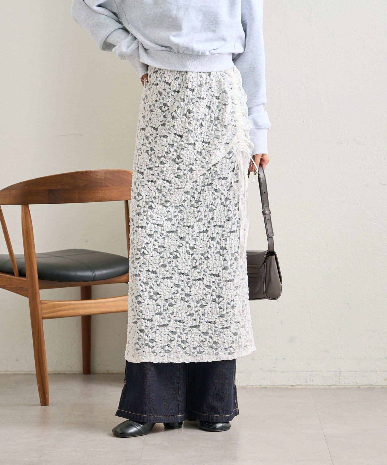 蕾絲裙既可作為裙子單穿,也可作為獨立單品疊穿在褲子外面。