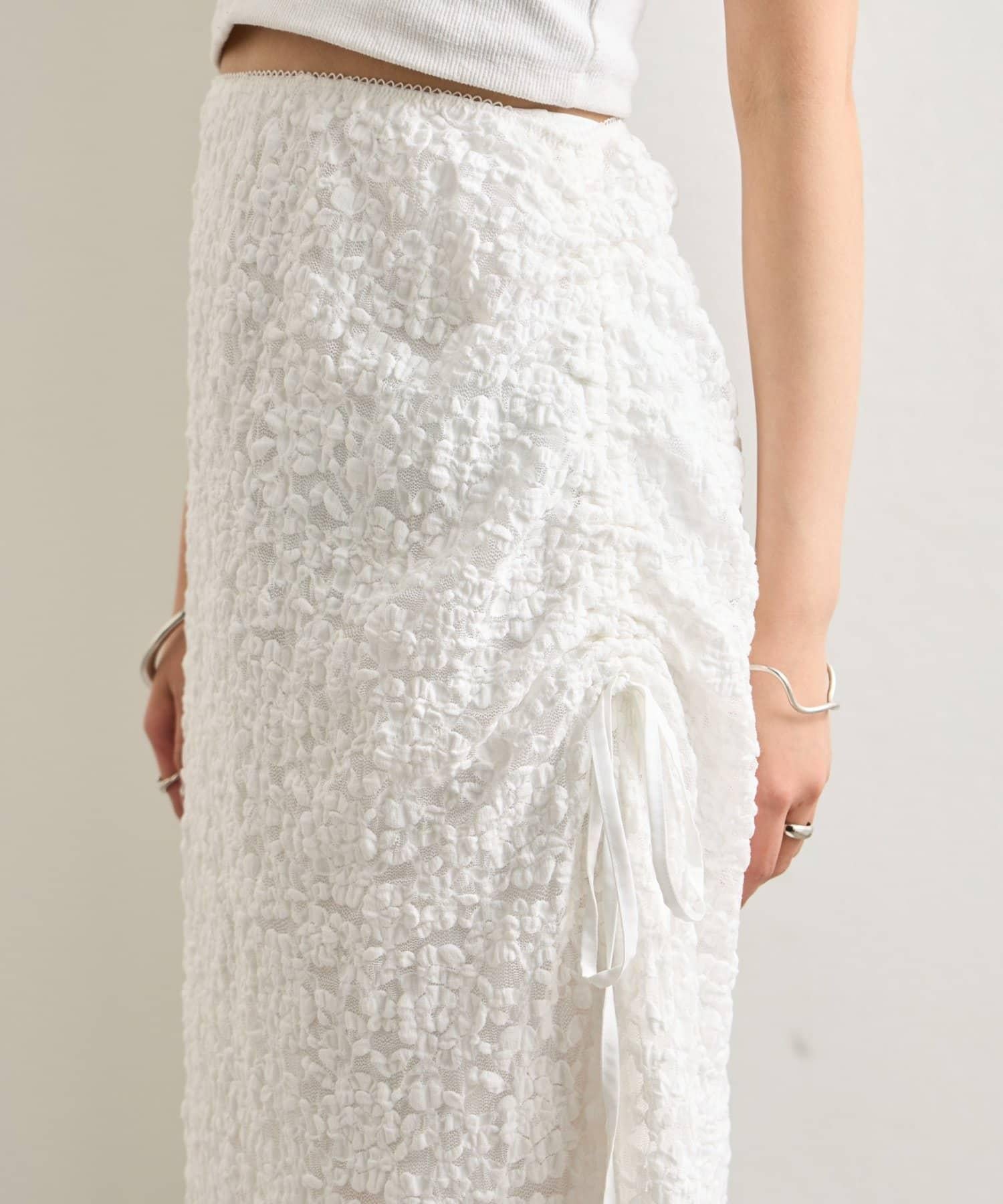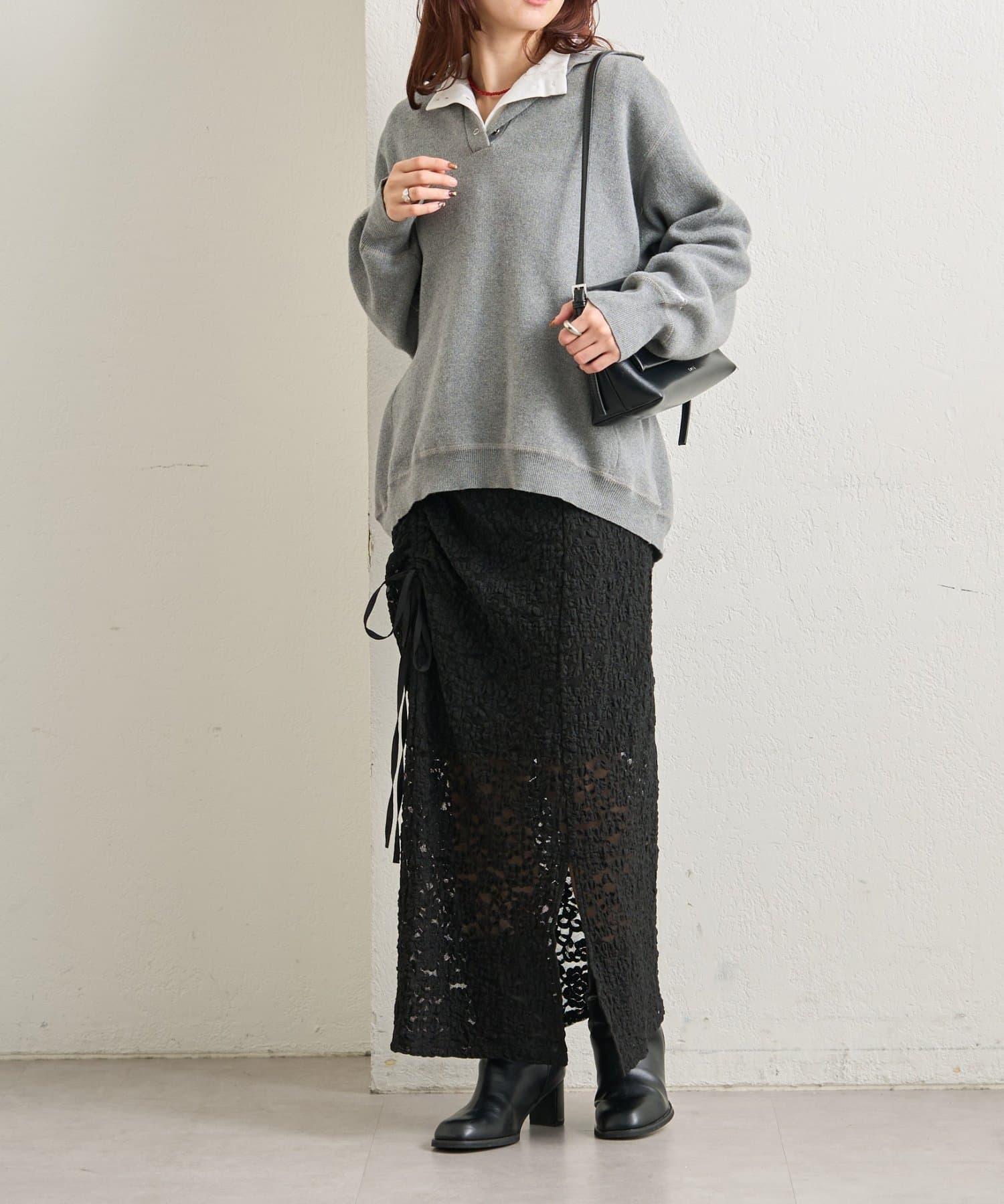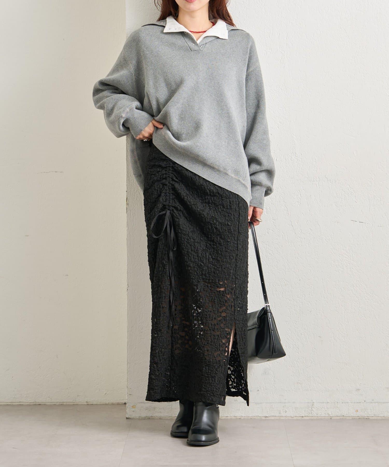 兩側的褶皺設計讓裙子看起來更有女人味,下襬的開衩設計則給人一種寬鬆的感覺。