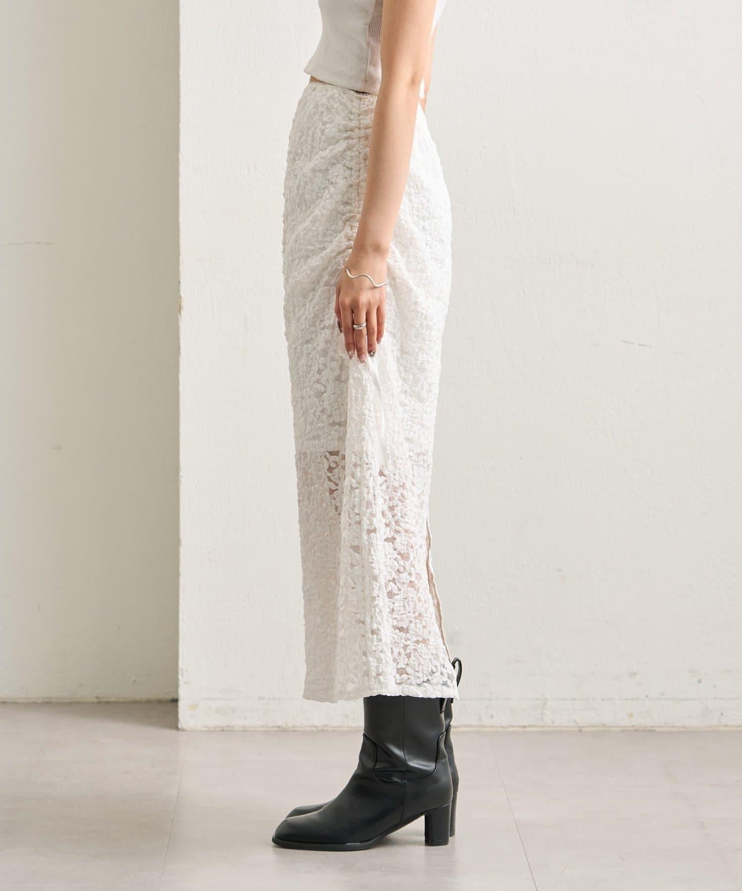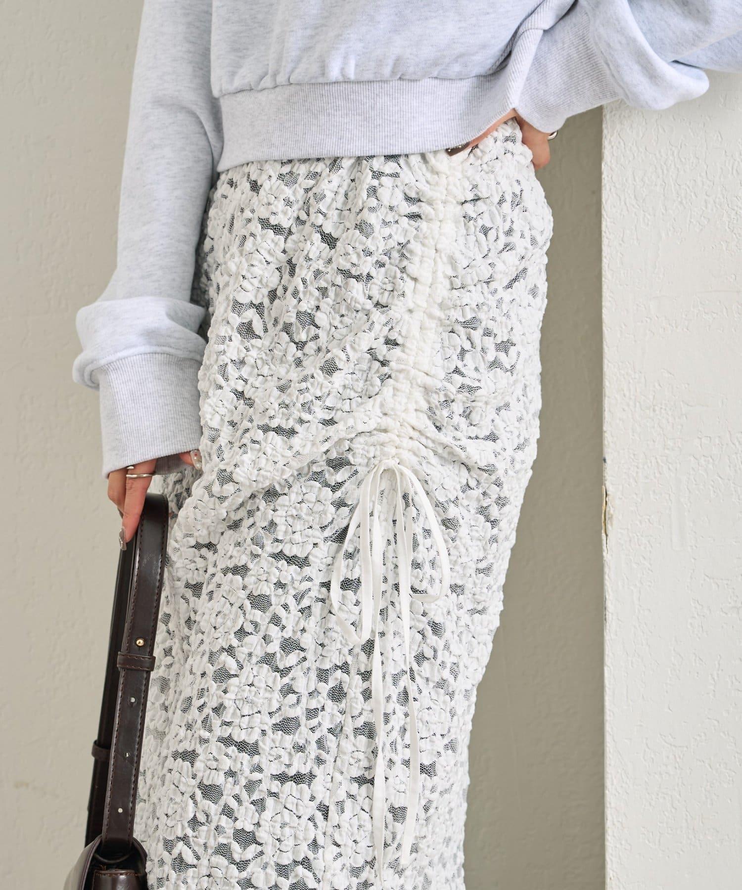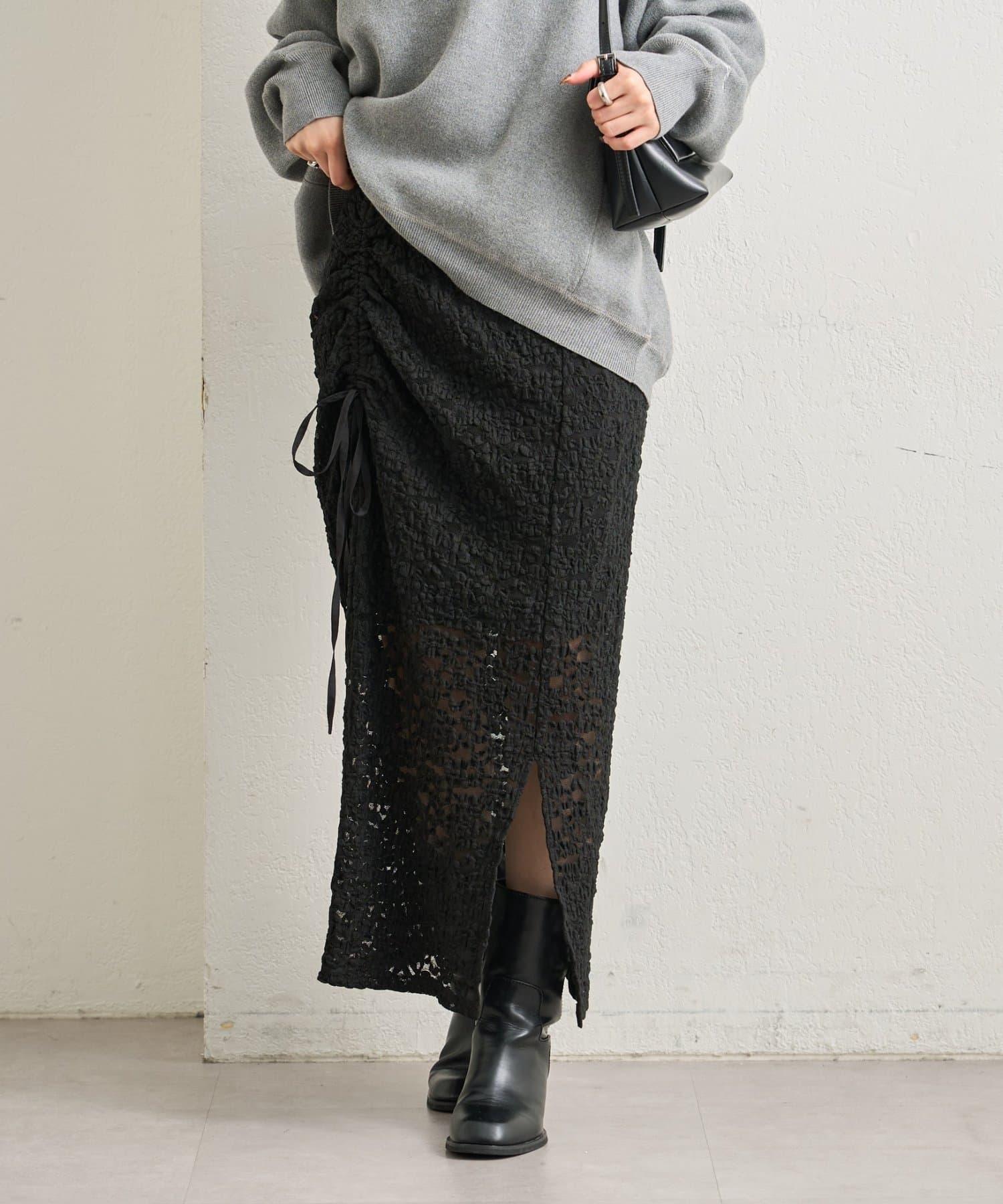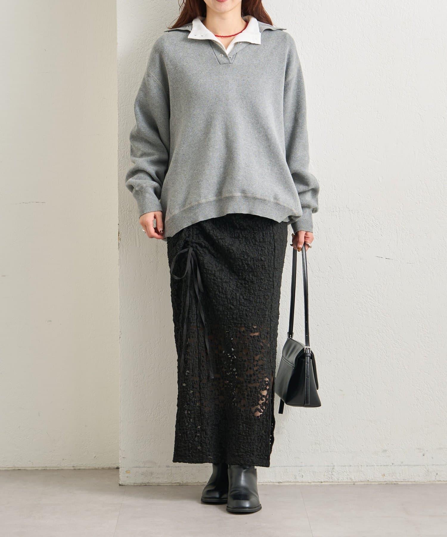 兩側的褶皺設計讓裙子看起來更有女人味,下襬的開衩設計則給人一種寬鬆的感覺。