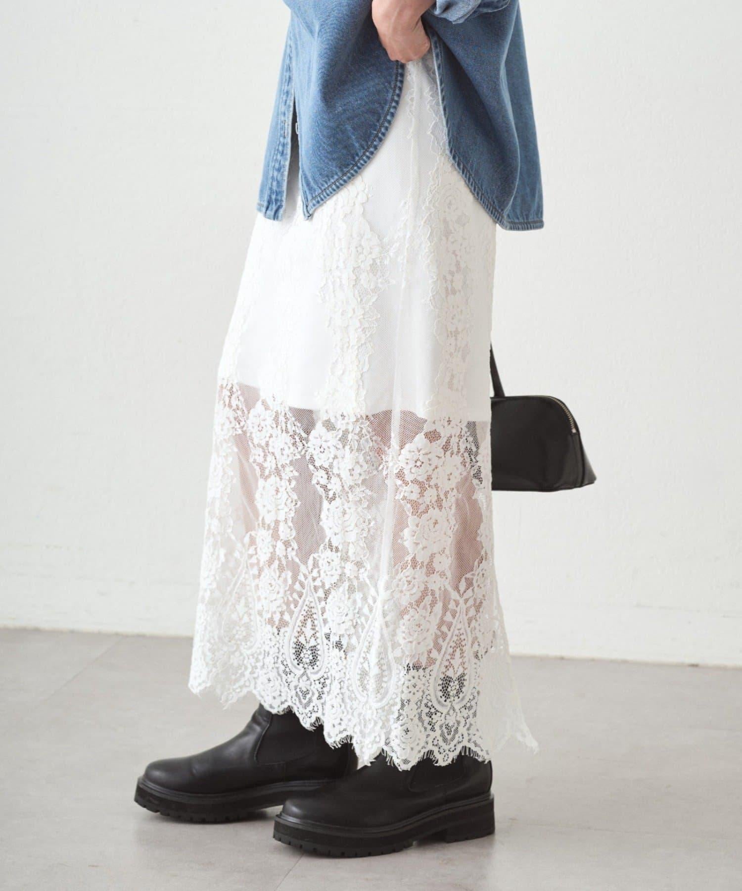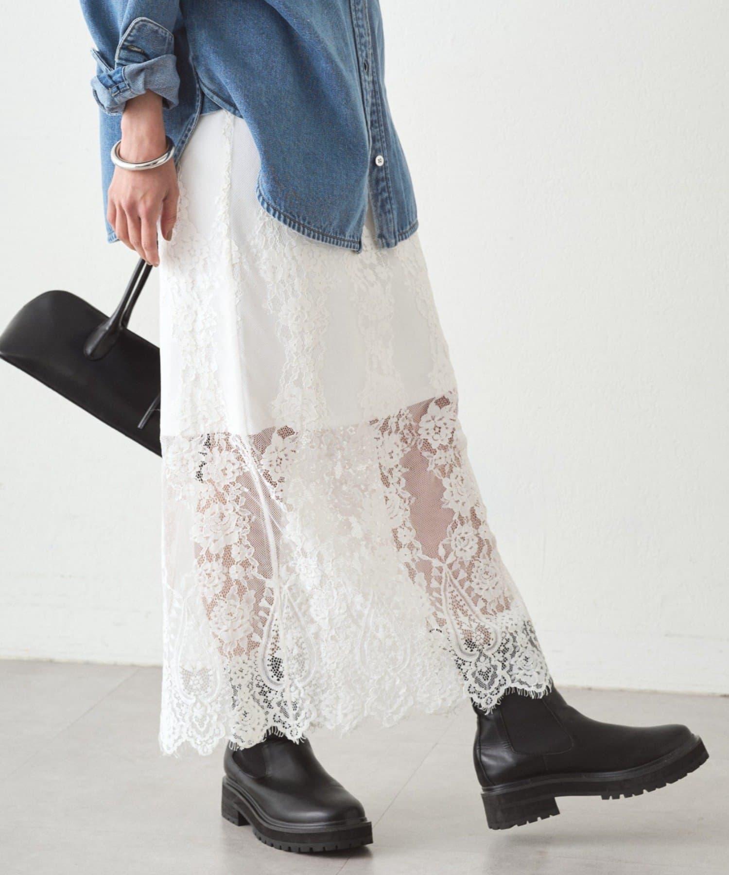 此外,建議在簡單的連衣裙或褲子上疊加蕾絲,享受蕾絲的透明感。