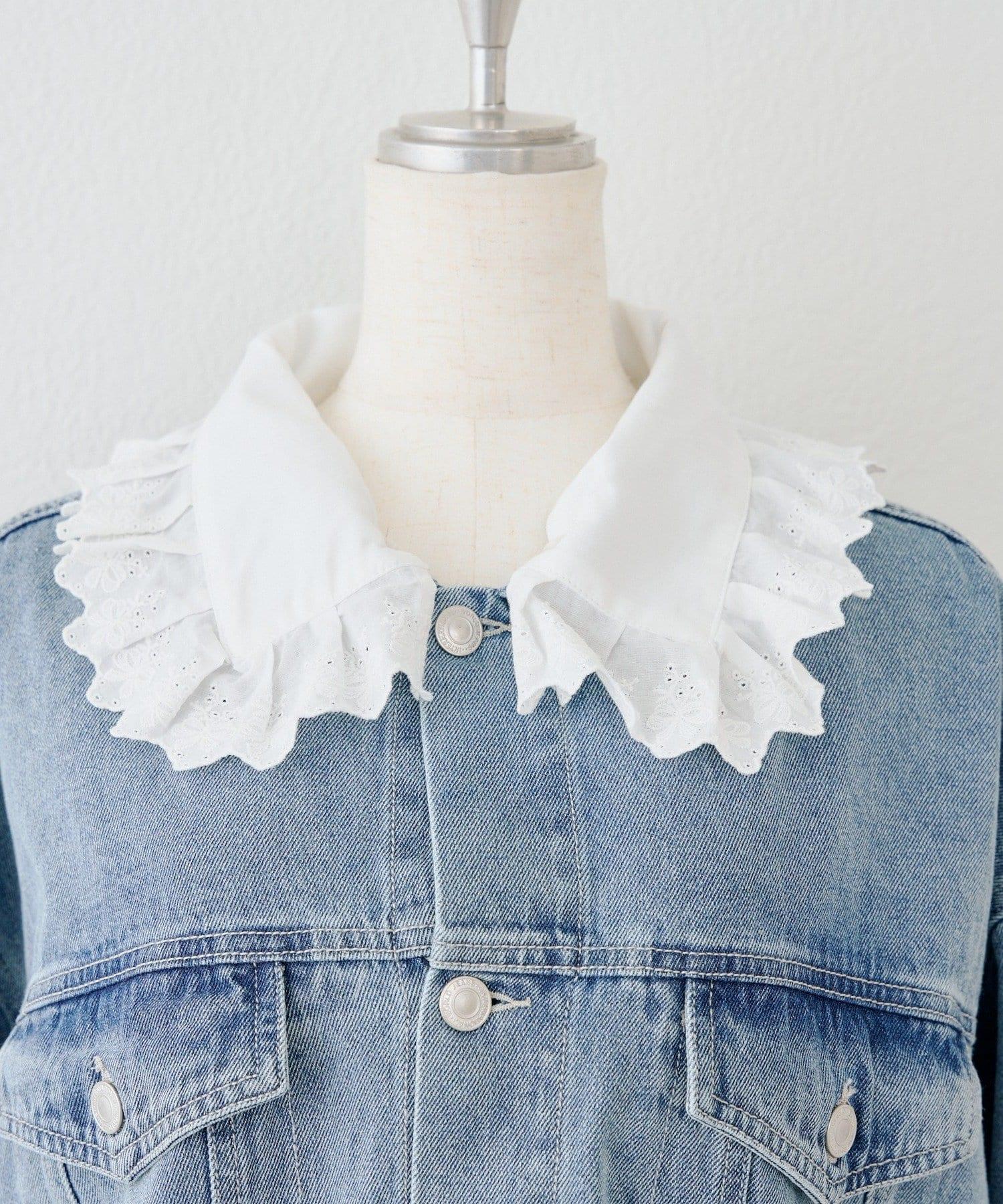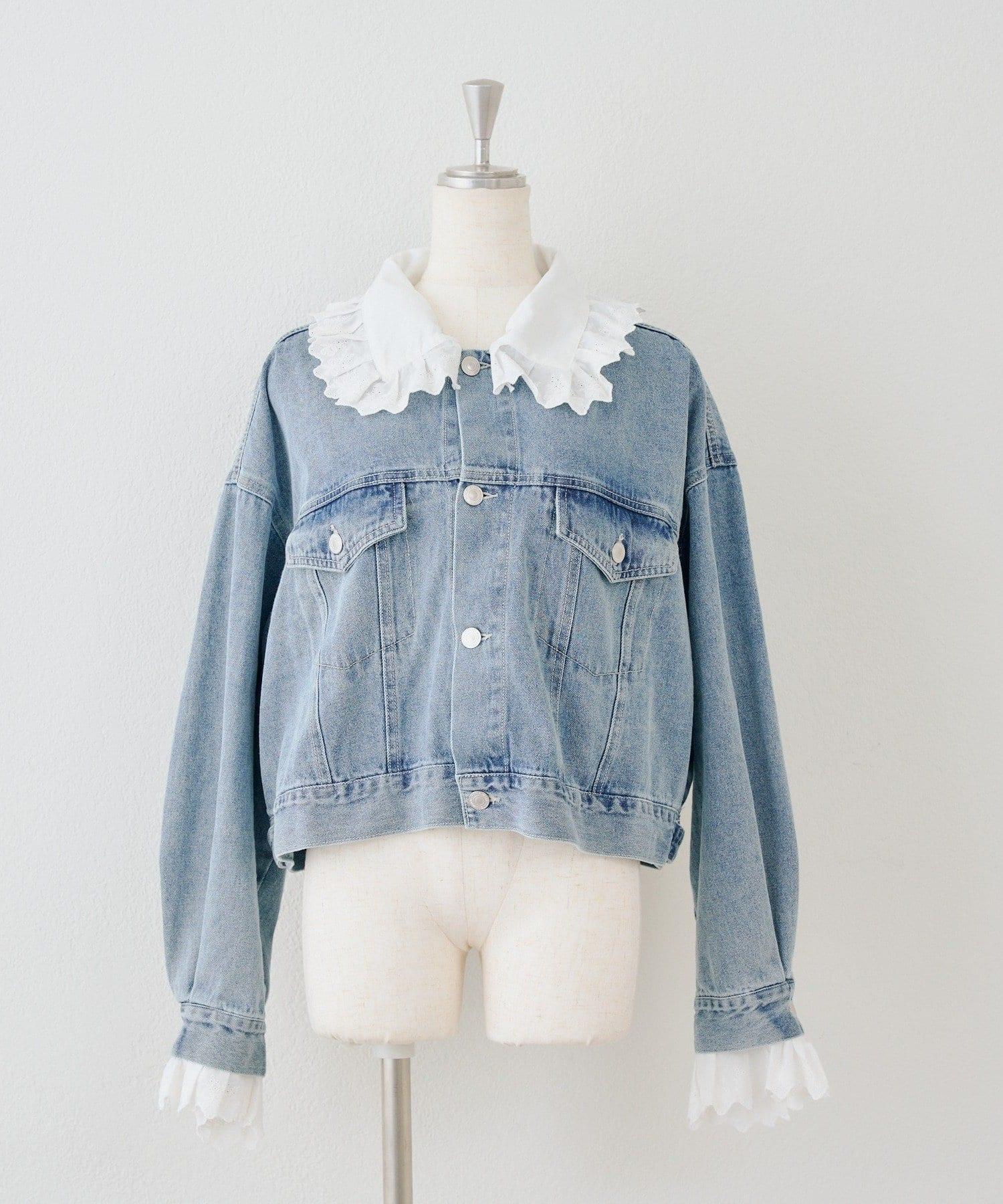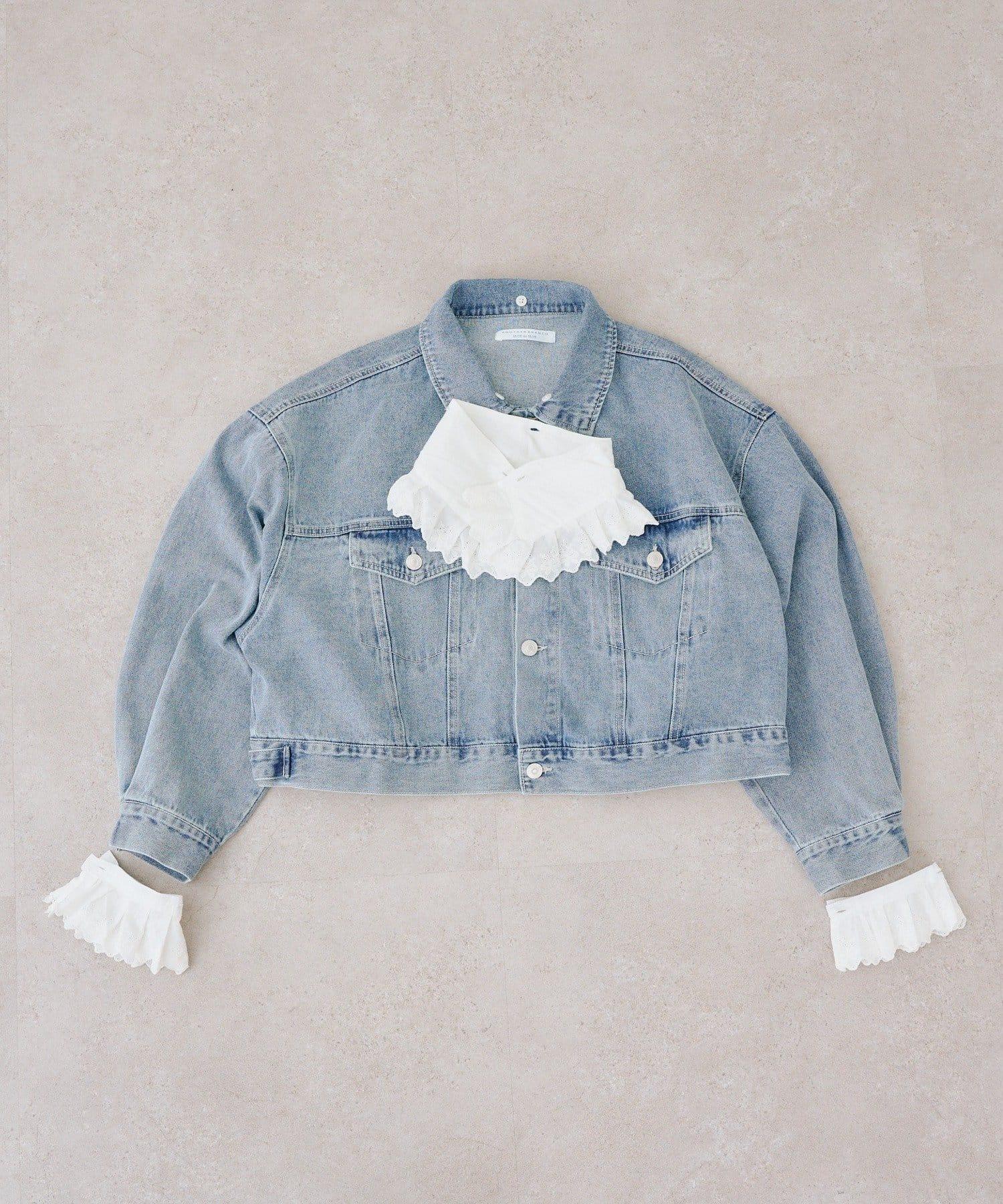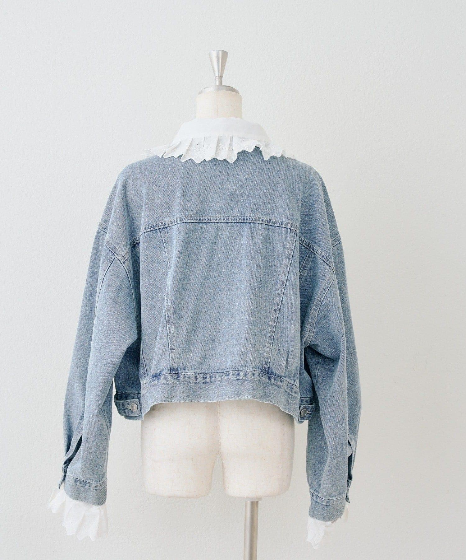 蕾絲可拆卸 大翻領 牛仔外套 【RMAF】 (Note: 英文/字母 RMAF 原樣保留)