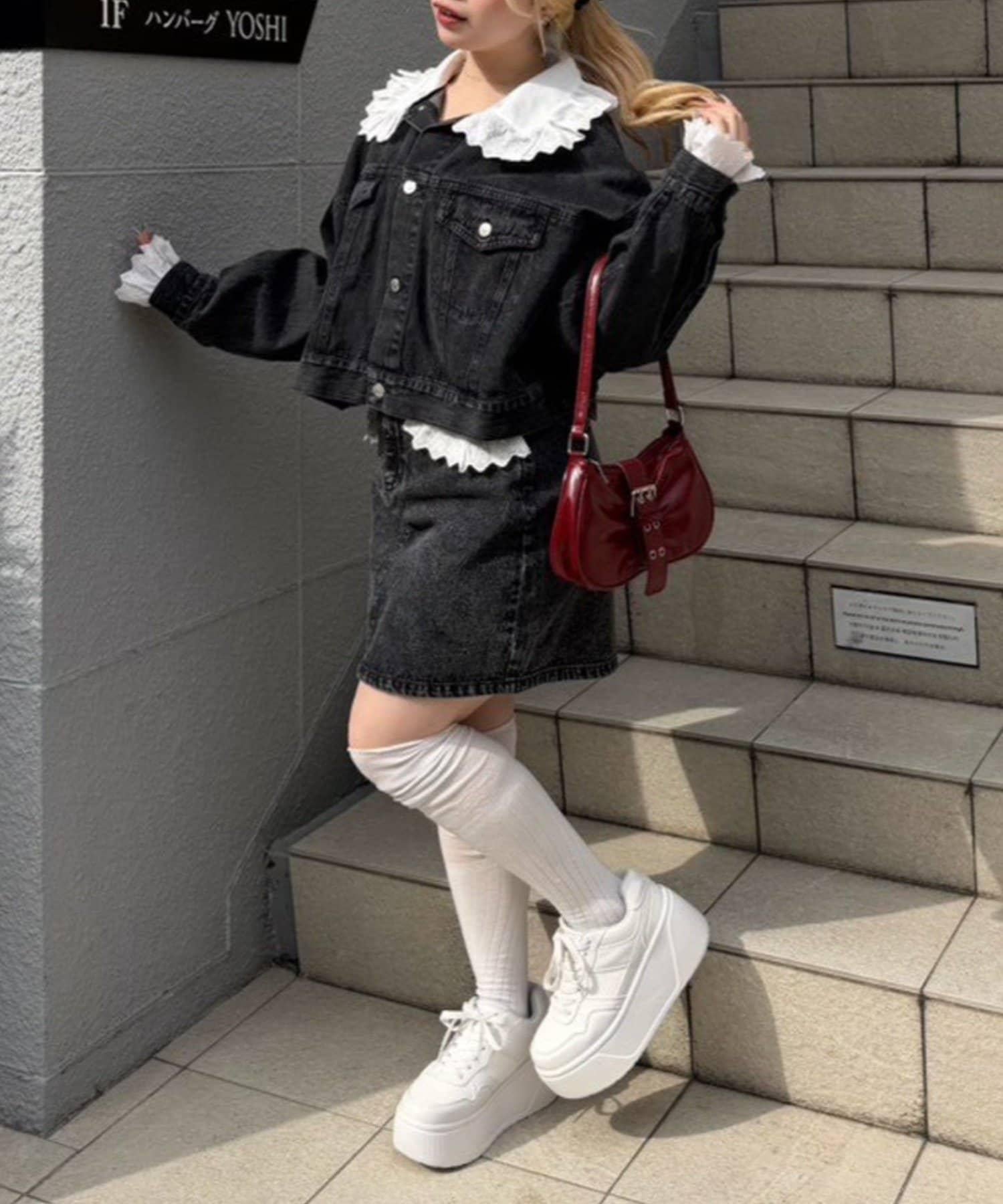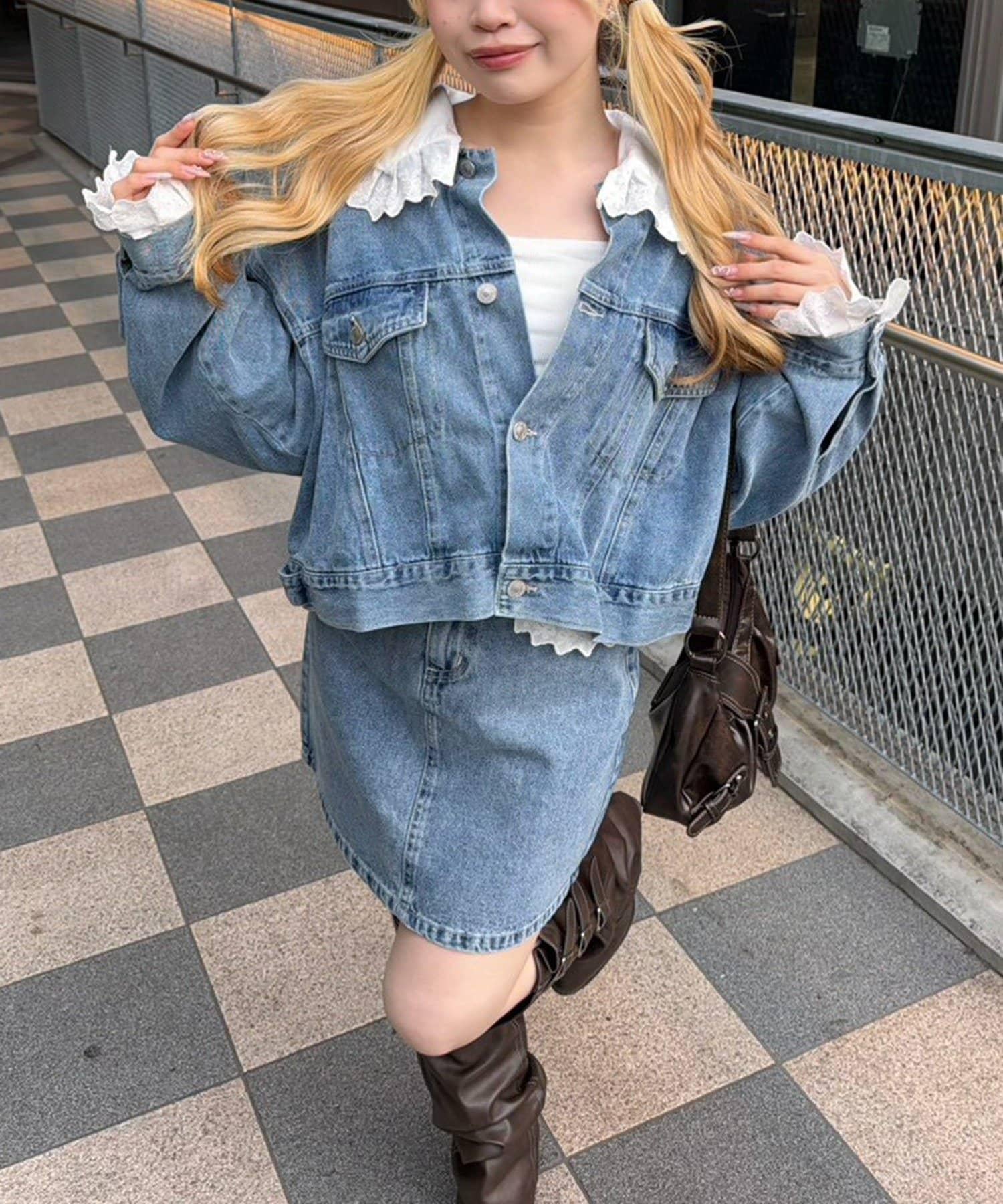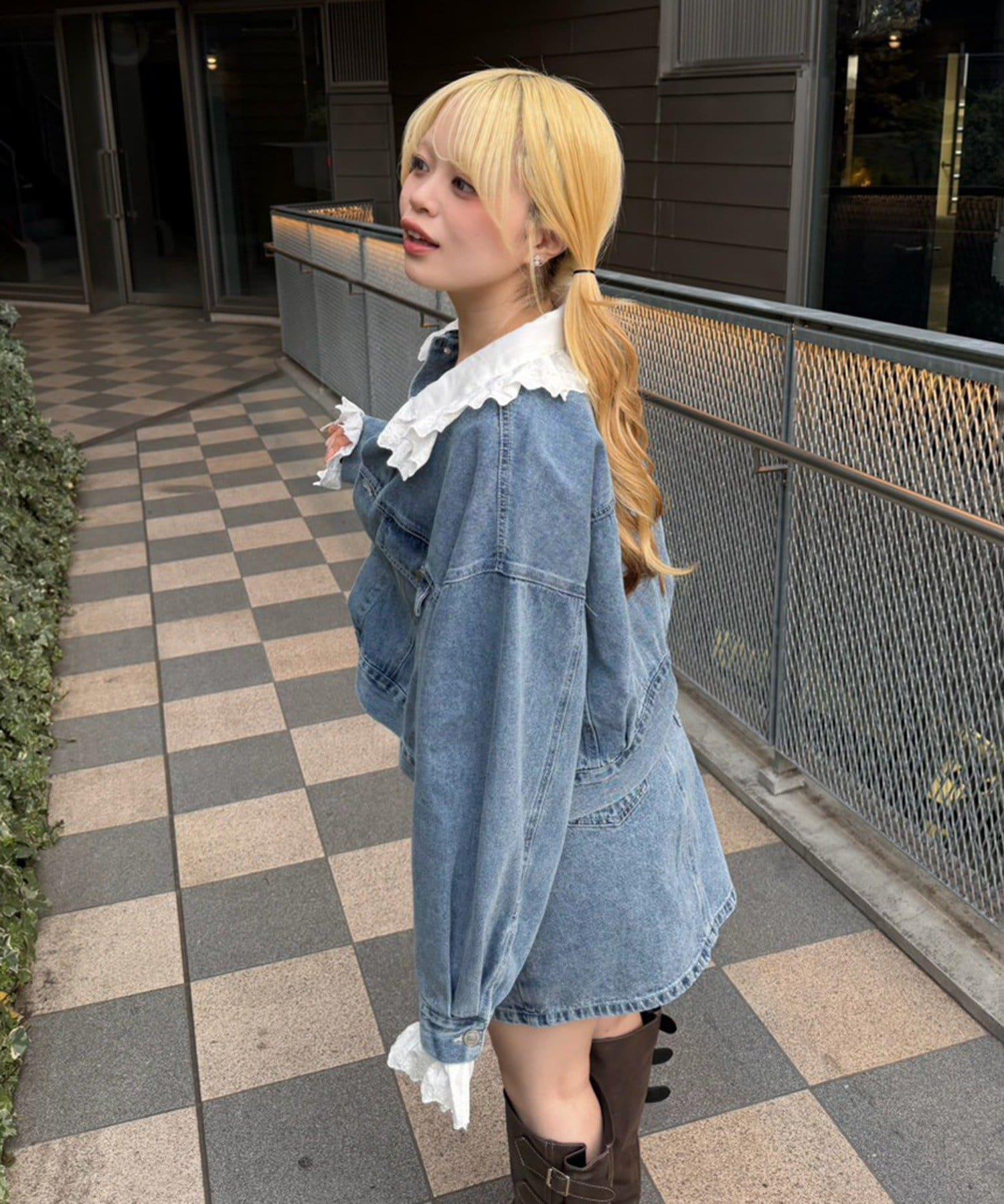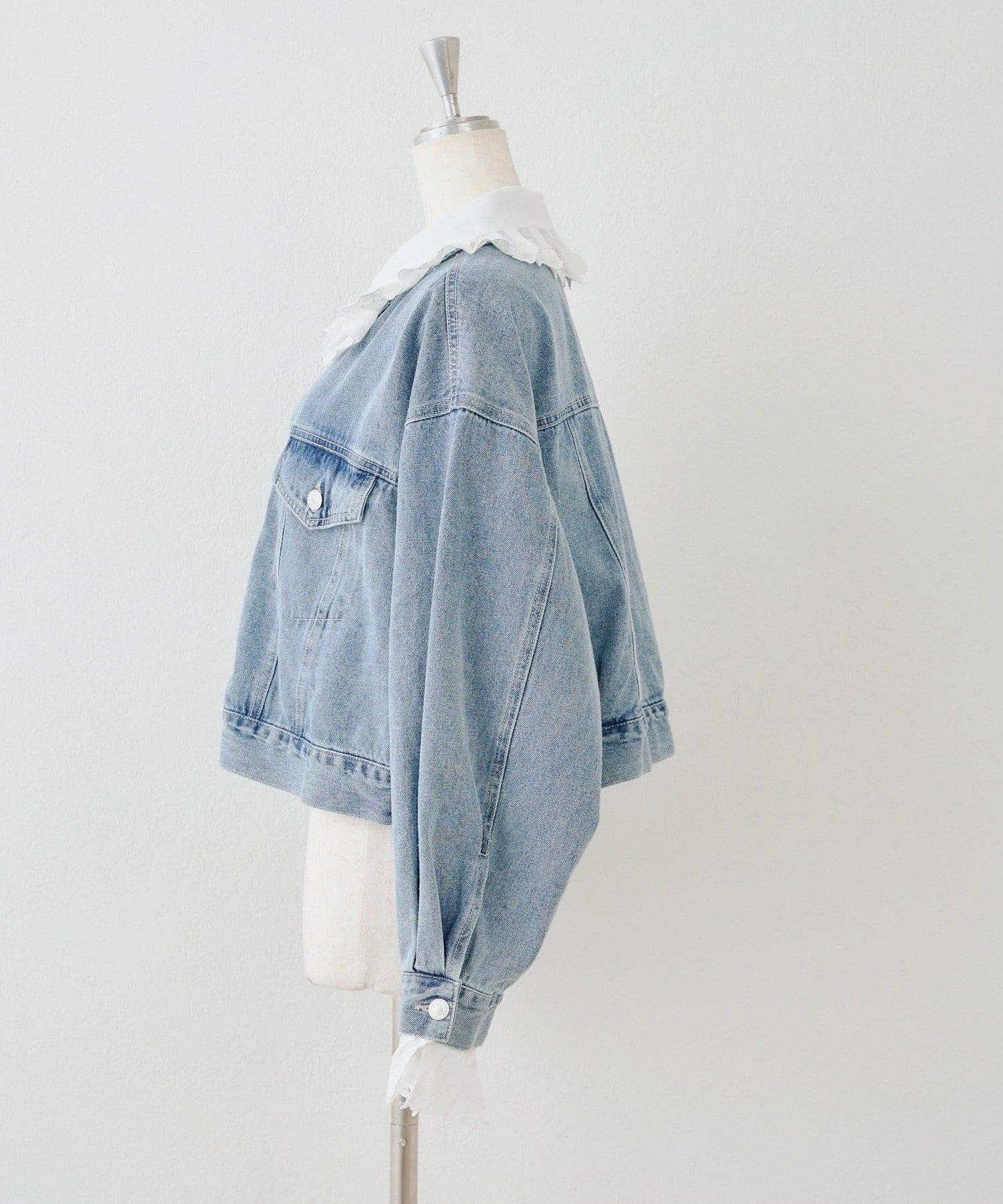蕾絲可拆卸 大翻領 牛仔外套 【RMAF】 (Note: 英文/字母 RMAF 原樣保留)