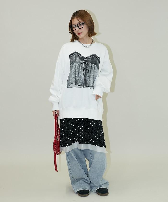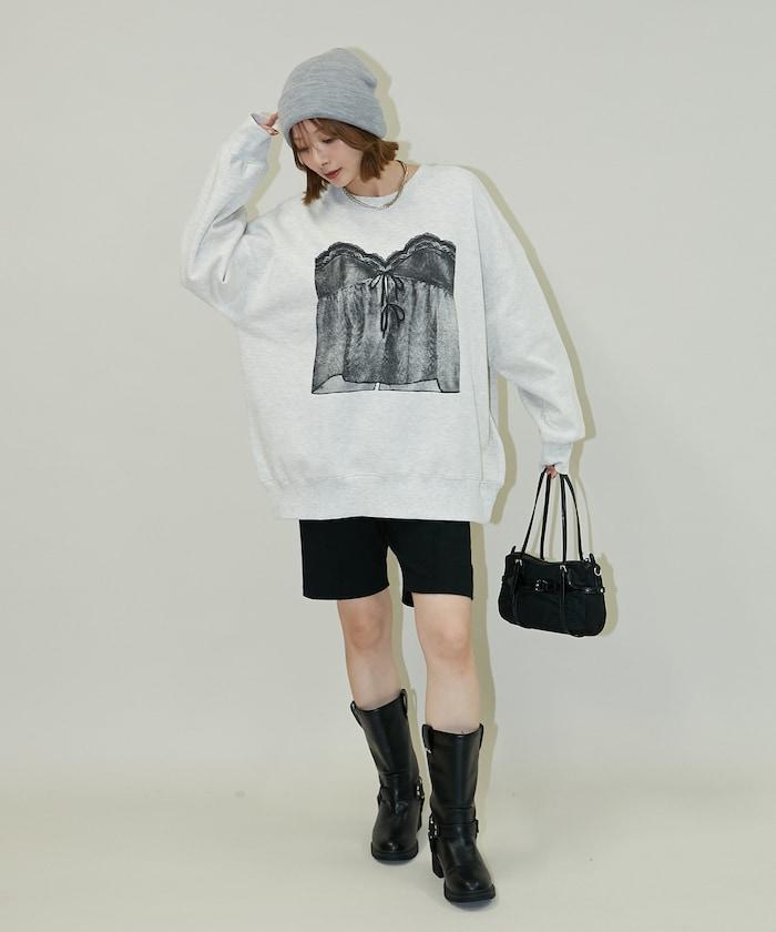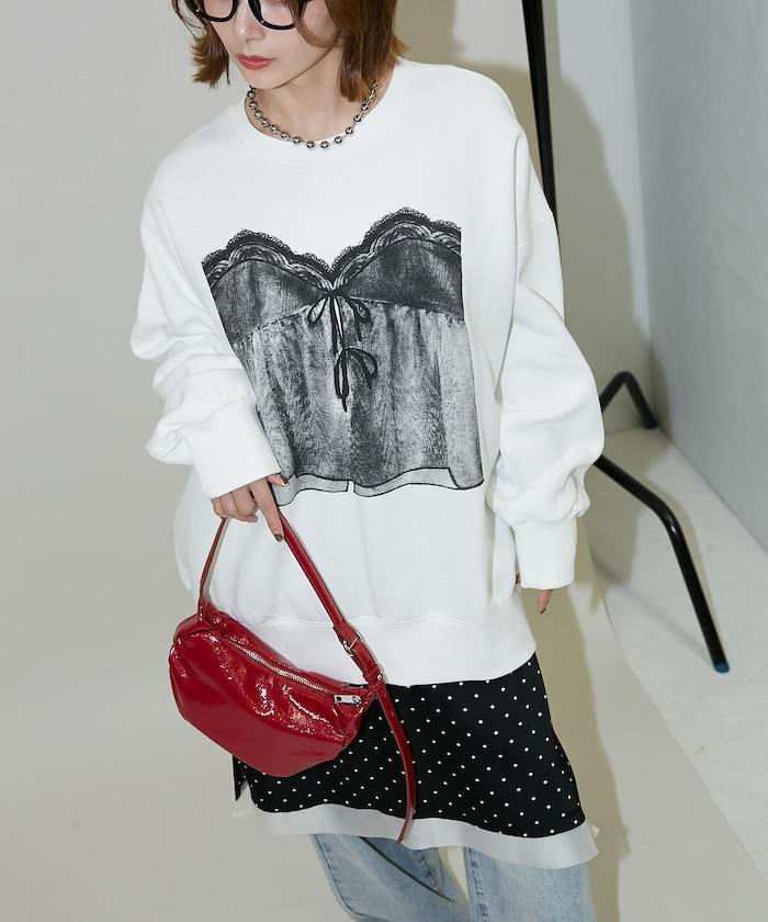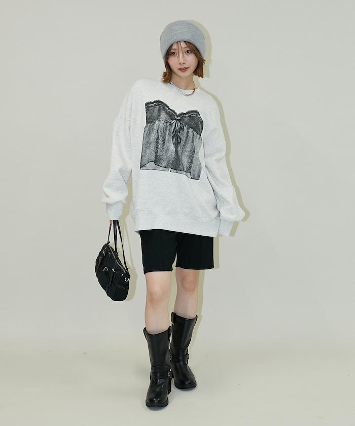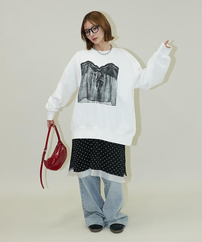 俏皮的超大號運動衫,印有內衣風格的大膽圖案。