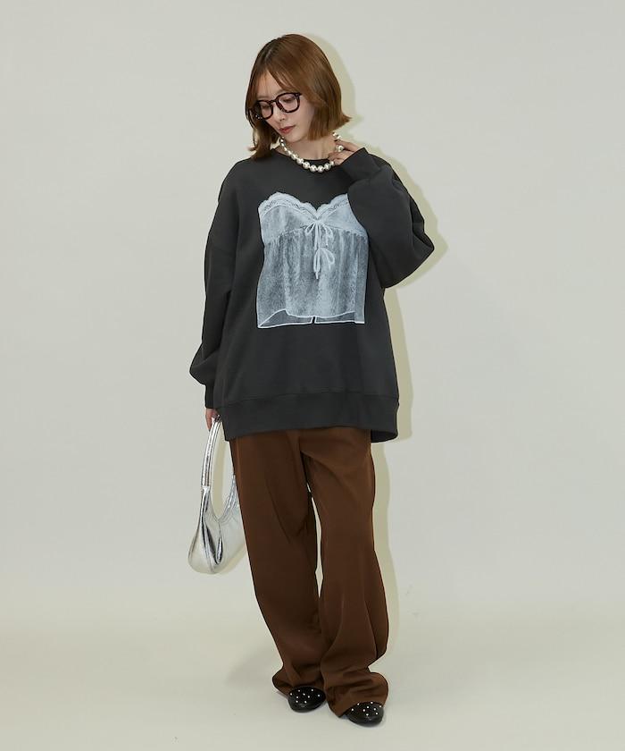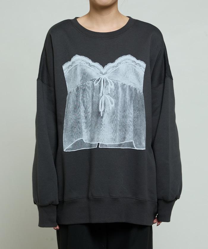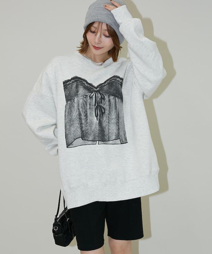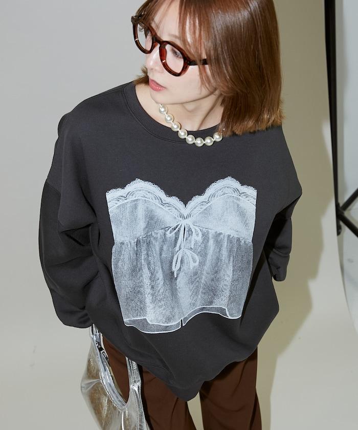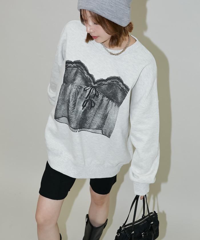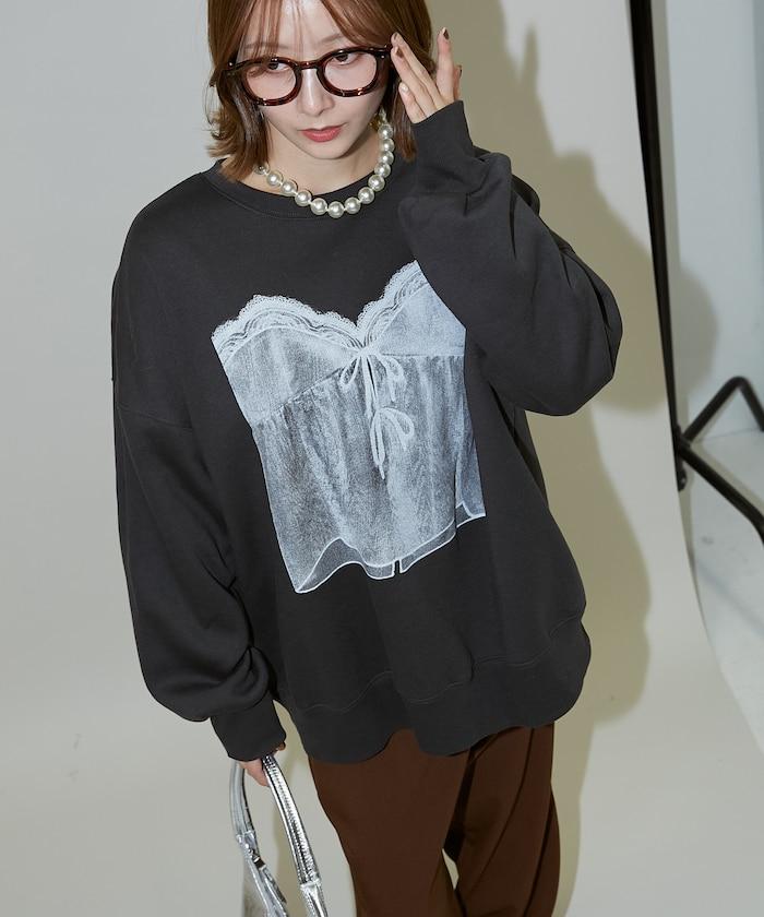 俏皮的超大號運動衫,印有內衣風格的大膽圖案。