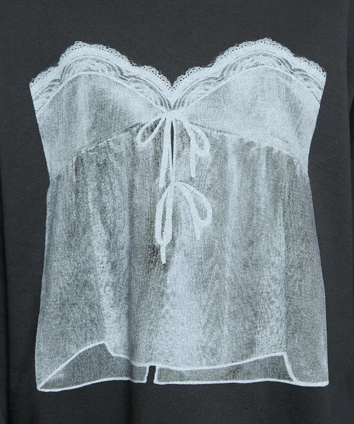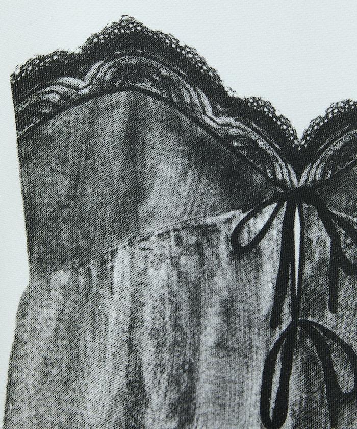 正面印有蕾絲吊帶衫圖案,設計獨特搶眼。