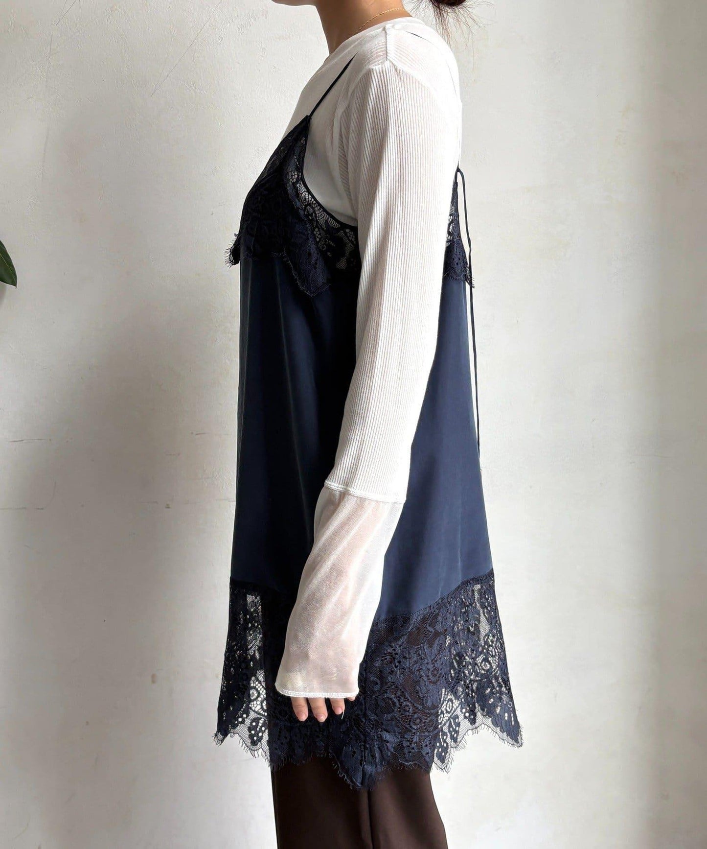 蕾絲吊帶長衫,層次感十足,今年正適合穿。