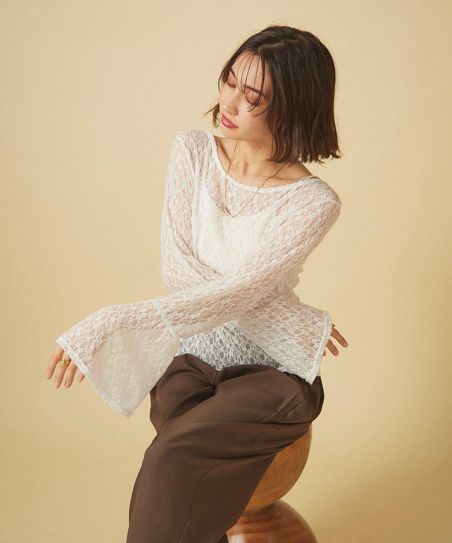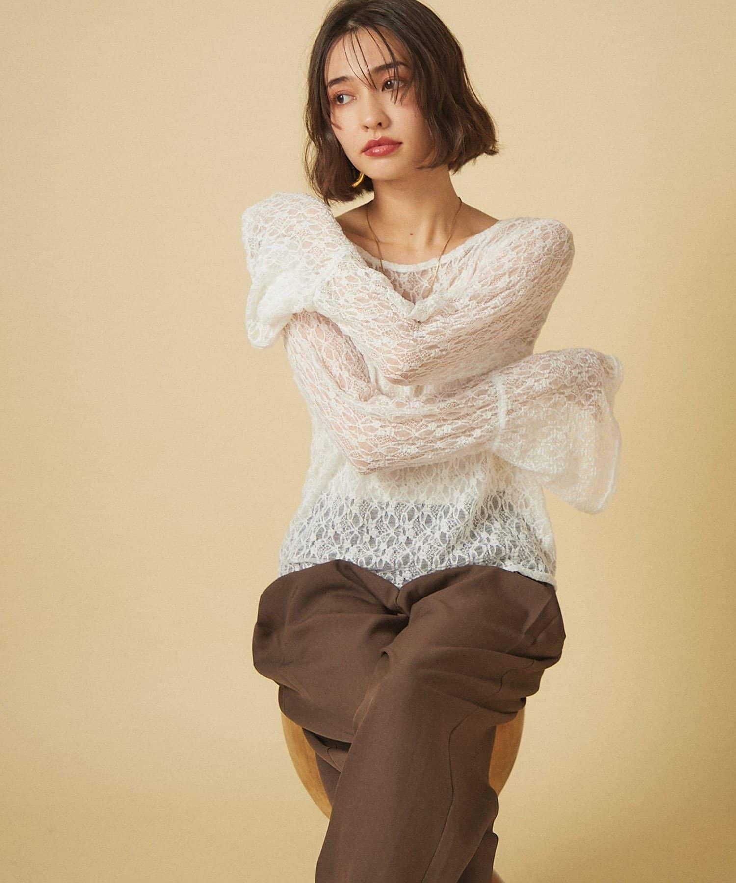 蕾絲喇叭袖套頭衫