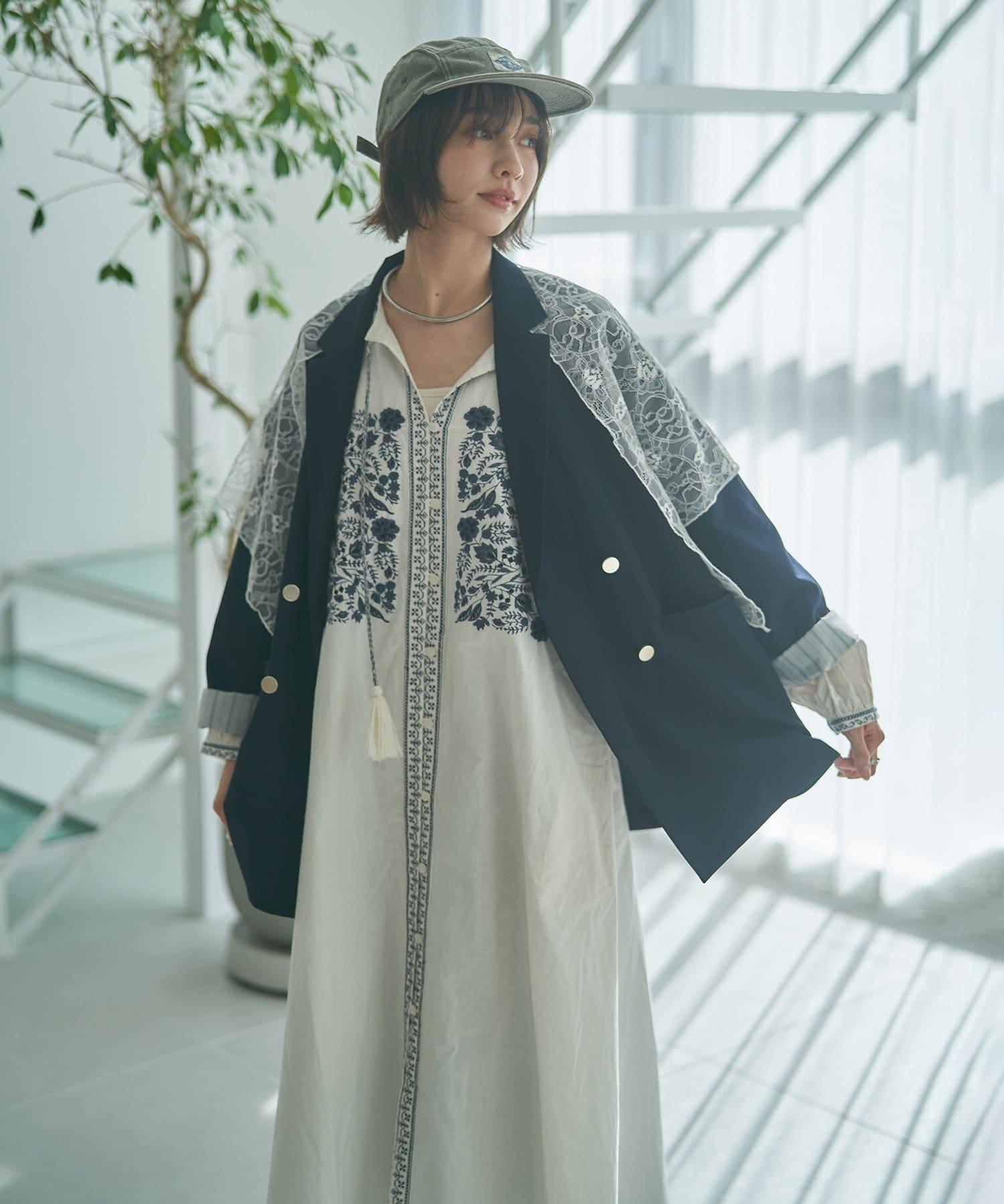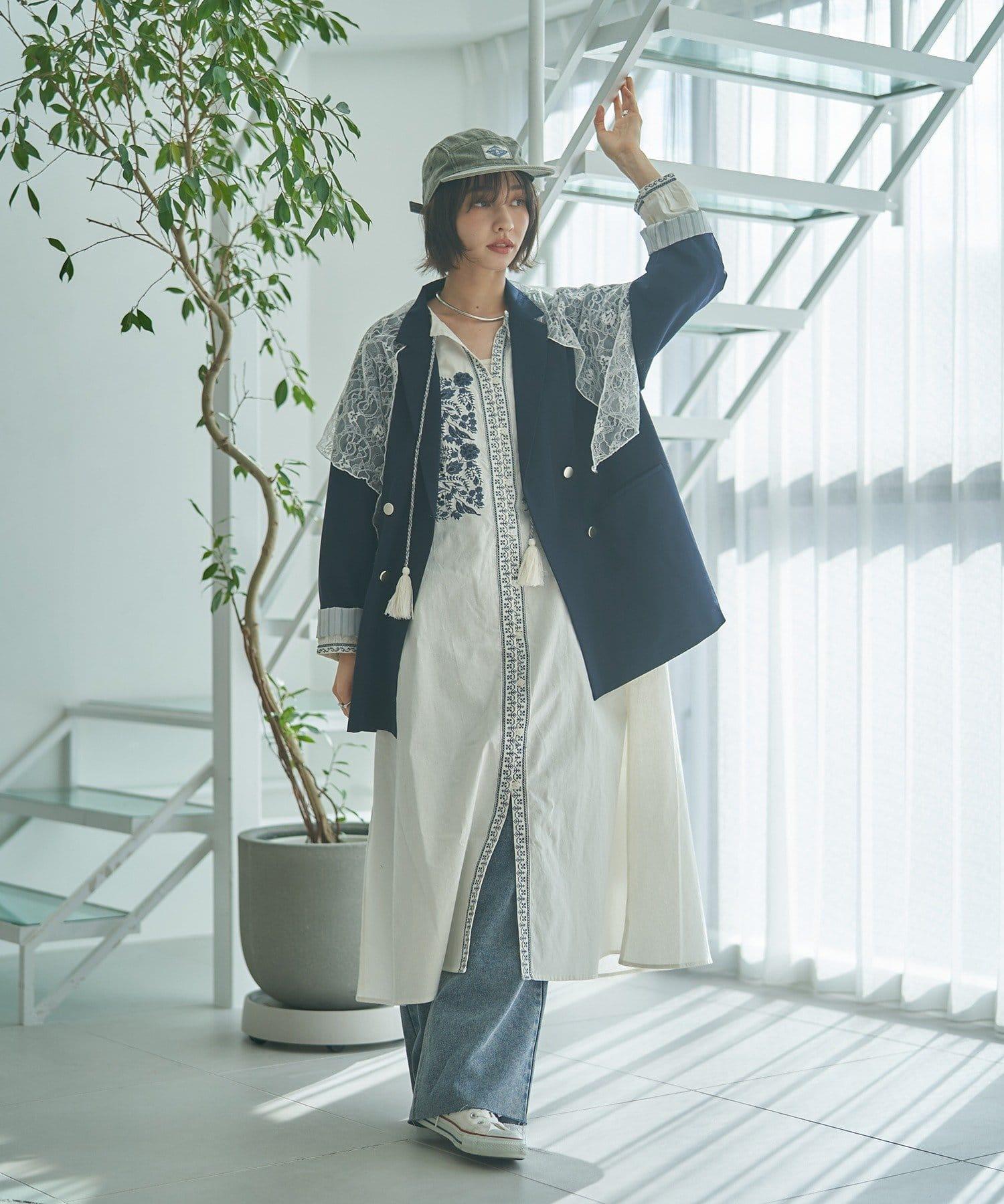 搭配蕾絲圍巾,盡顯淑女風範。