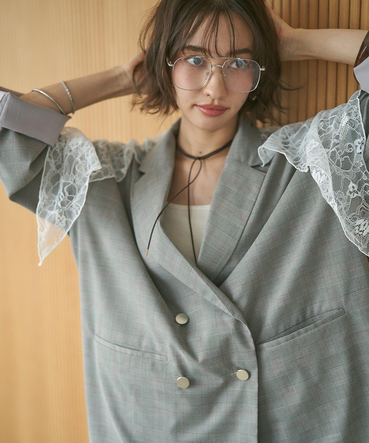 蕾絲套裝 寬鬆版 西裝領 西裝外套