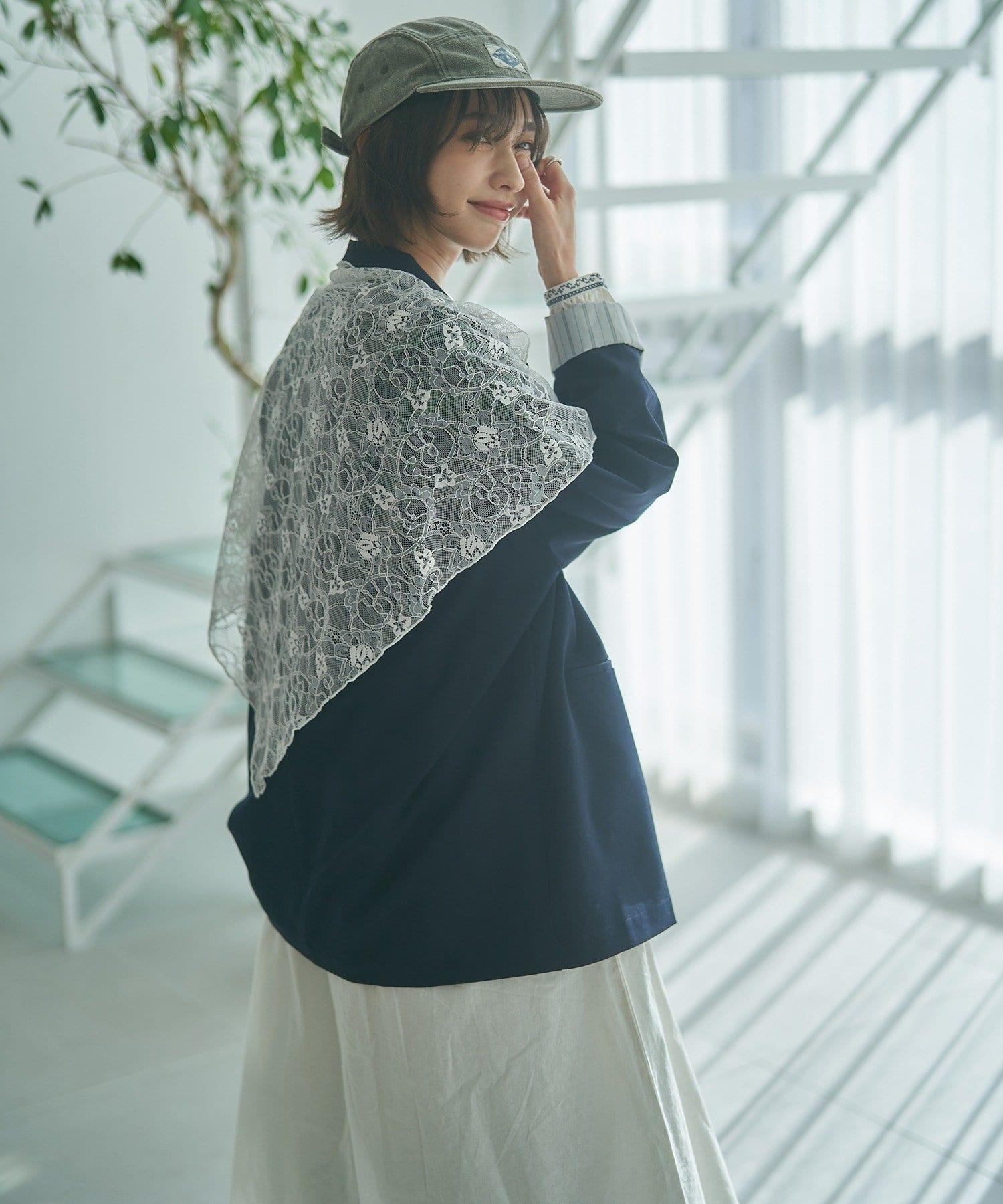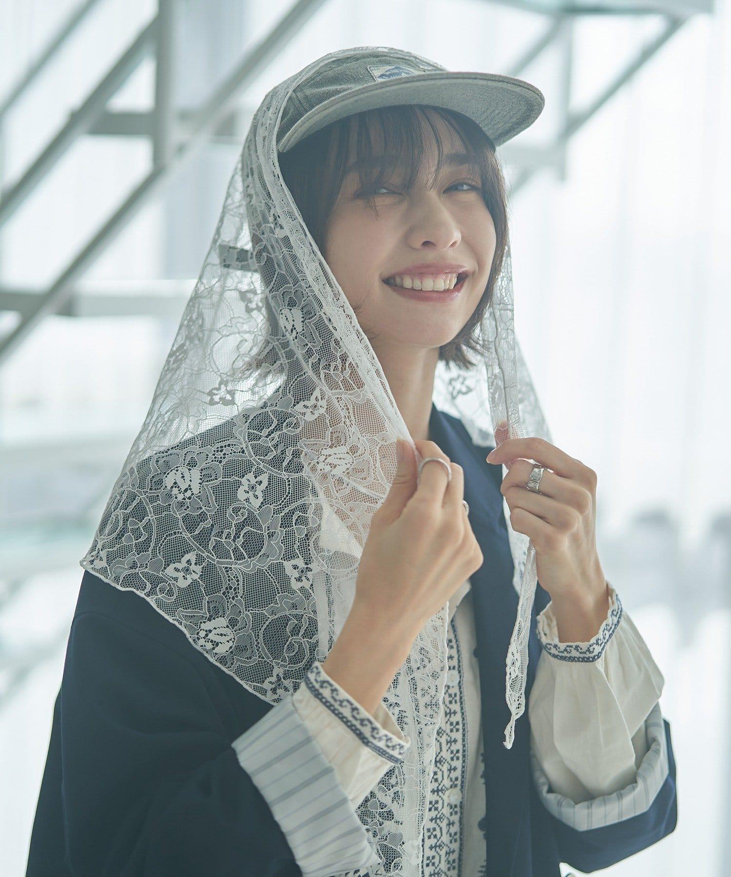 蕾絲圍巾為套裝,可搭在肩上、腰帶環上或掛在包上,搭配範圍更廣。