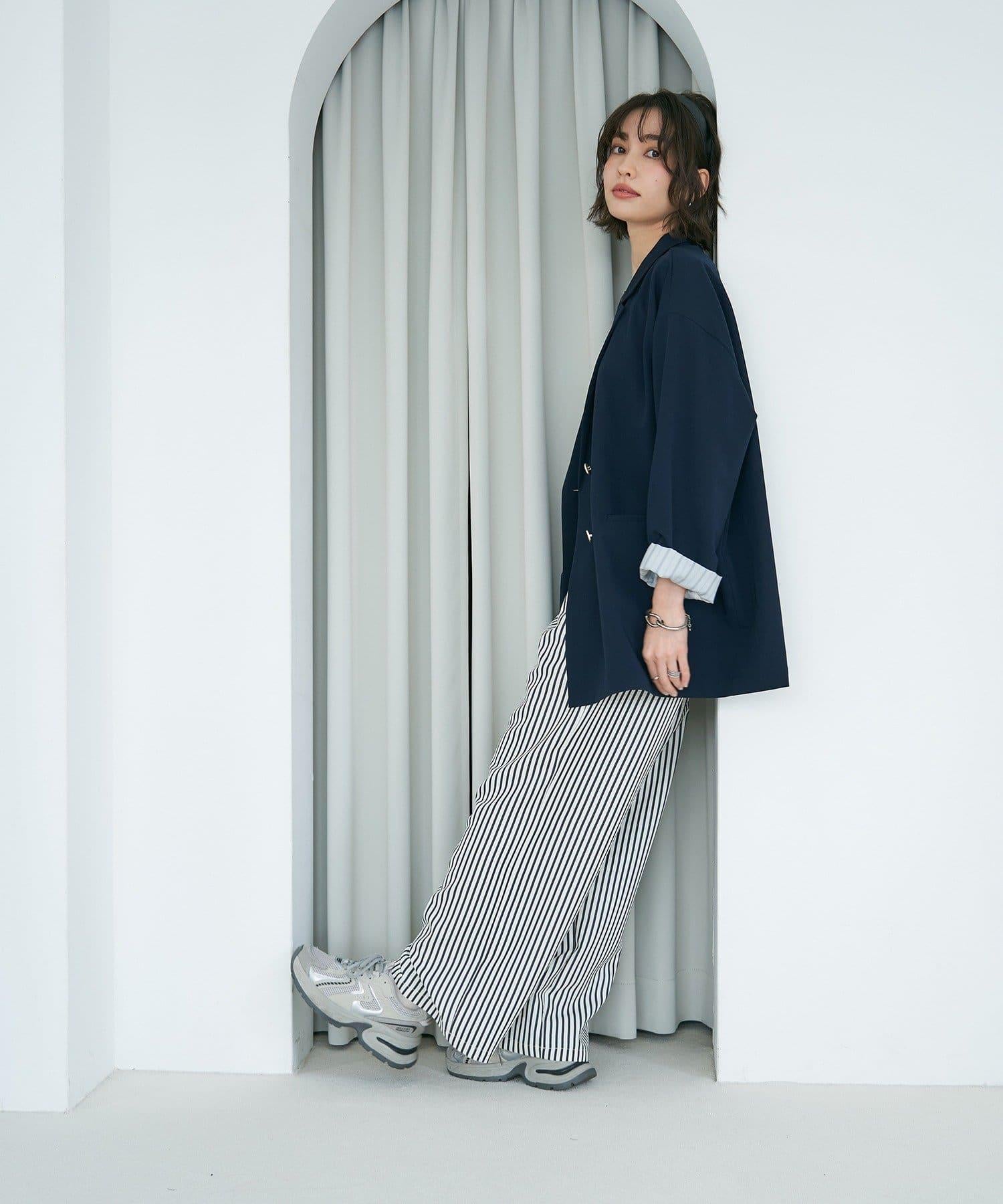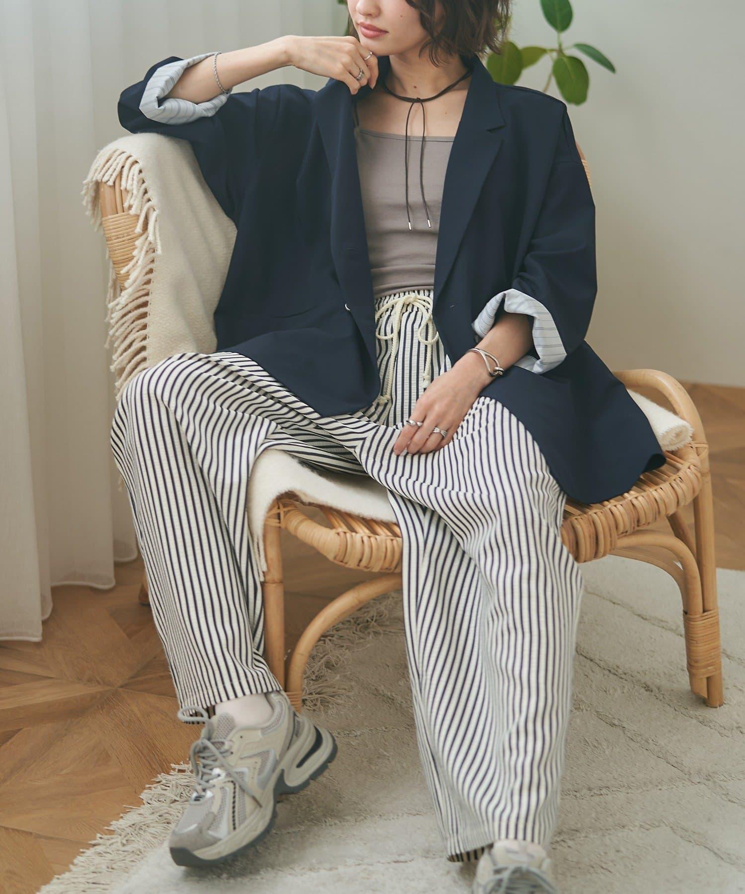 袖口內襯採用配色和條紋圖案,可以向後摺疊,成為造型點。