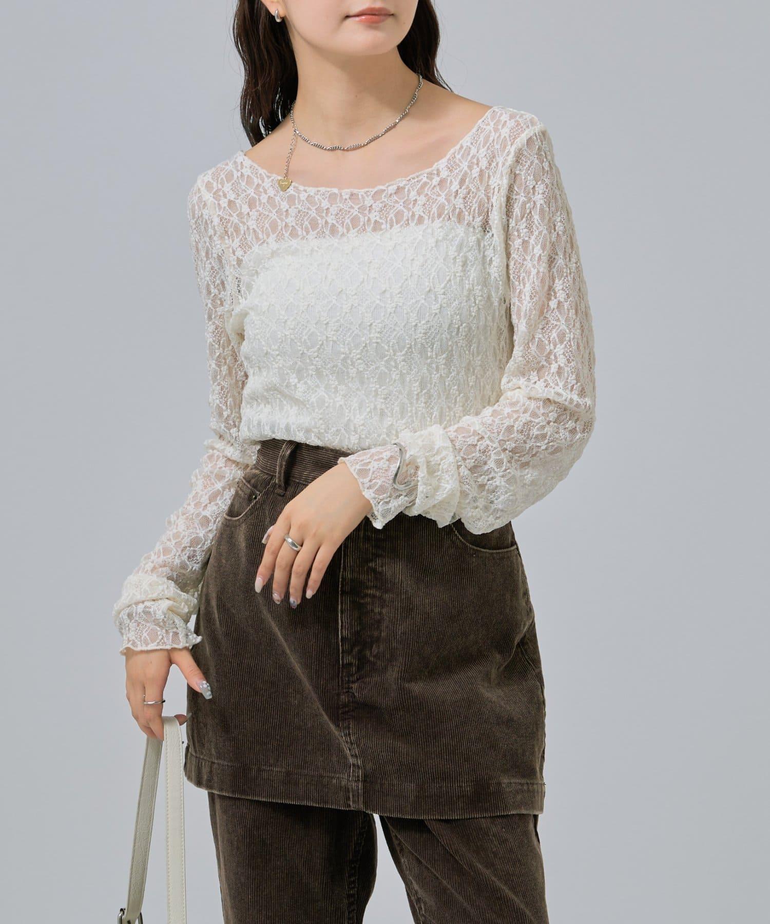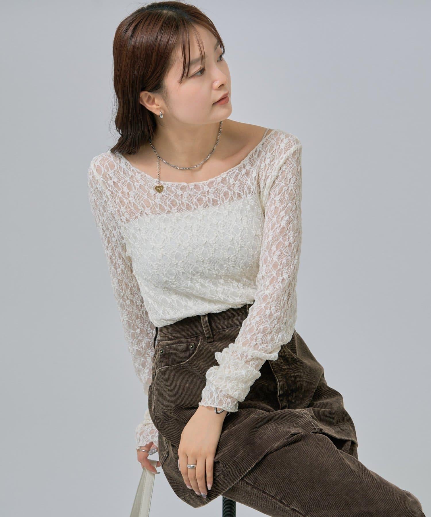 既可以單穿,也可以將蕾絲作為內層疊穿,是一件百搭的上衣♩。