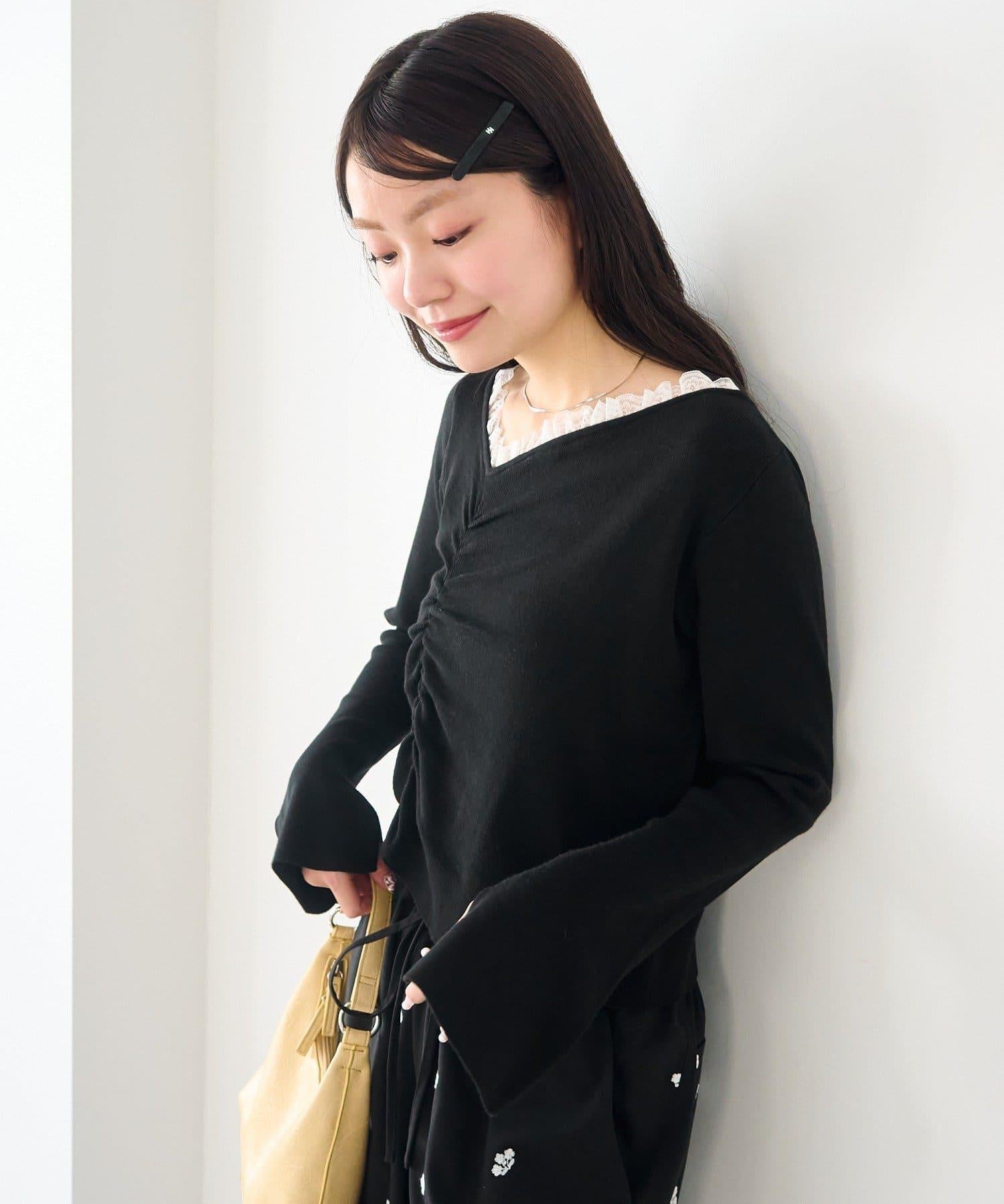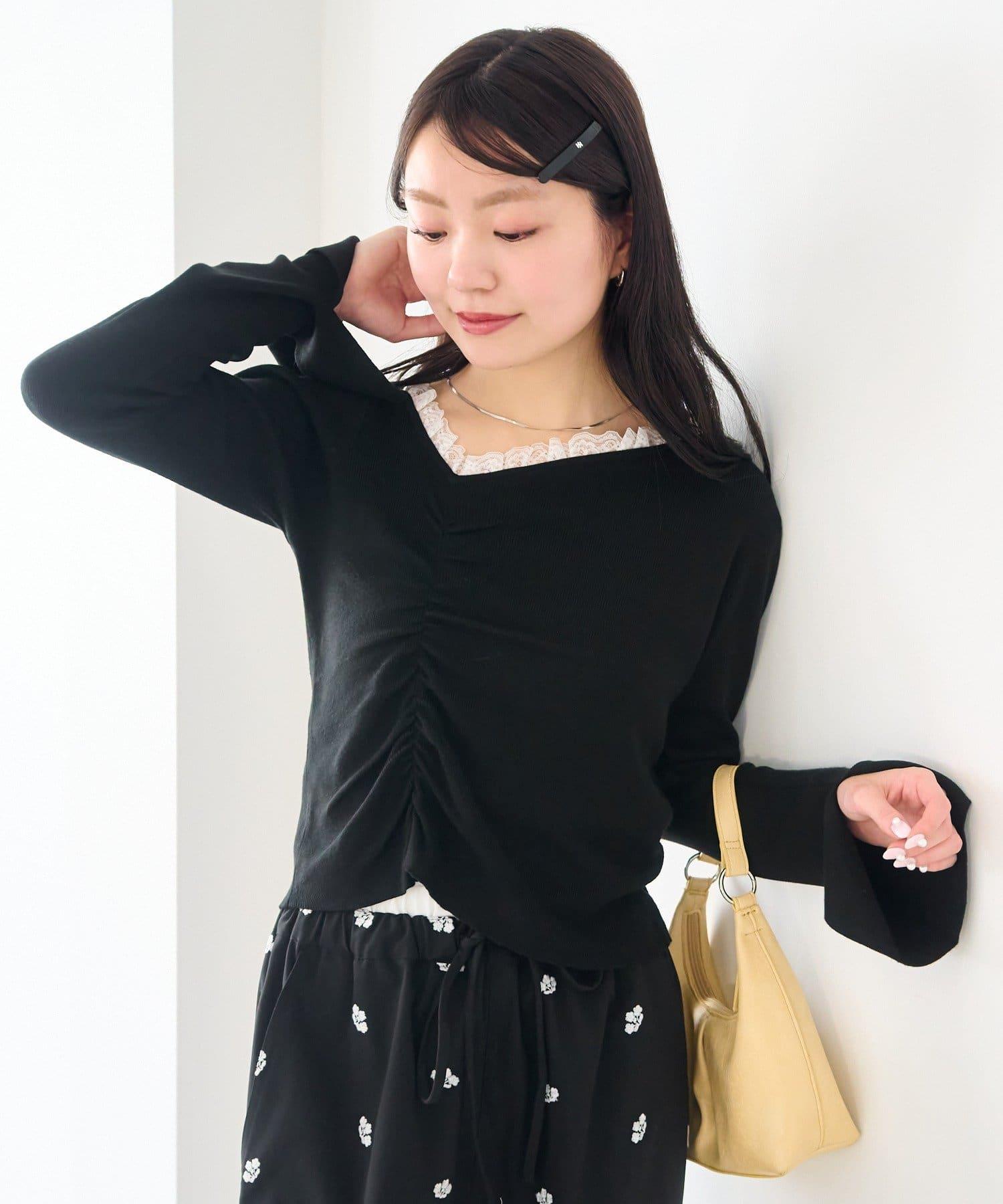 袖子的長度足以遮住雙手,微微喇叭形的輪廓增添了女性的柔美。