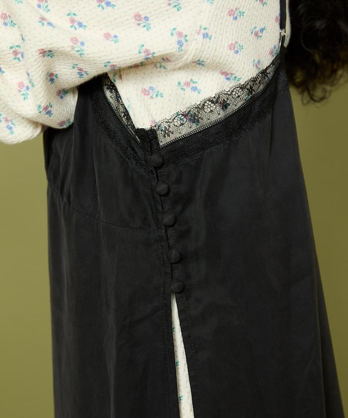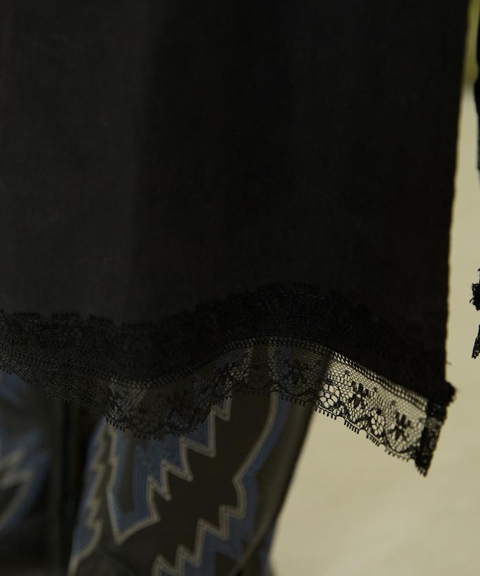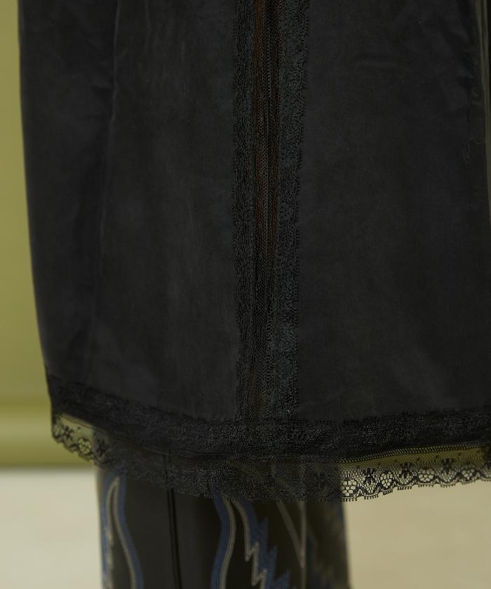 右側中間夾有蕾絲帶,左側則大膽敞開至胯骨。
