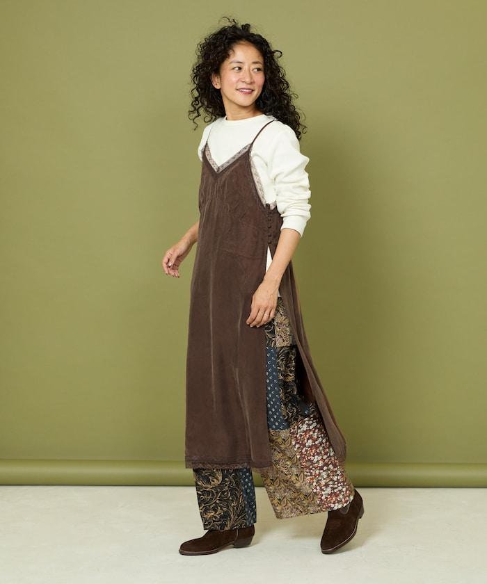 當這款連衣裙疊穿在男裝風格的牛仔褲或休閒燈芯絨打底褲上時,因為融入了淑女的細節,所以有一種精緻的混合味道。