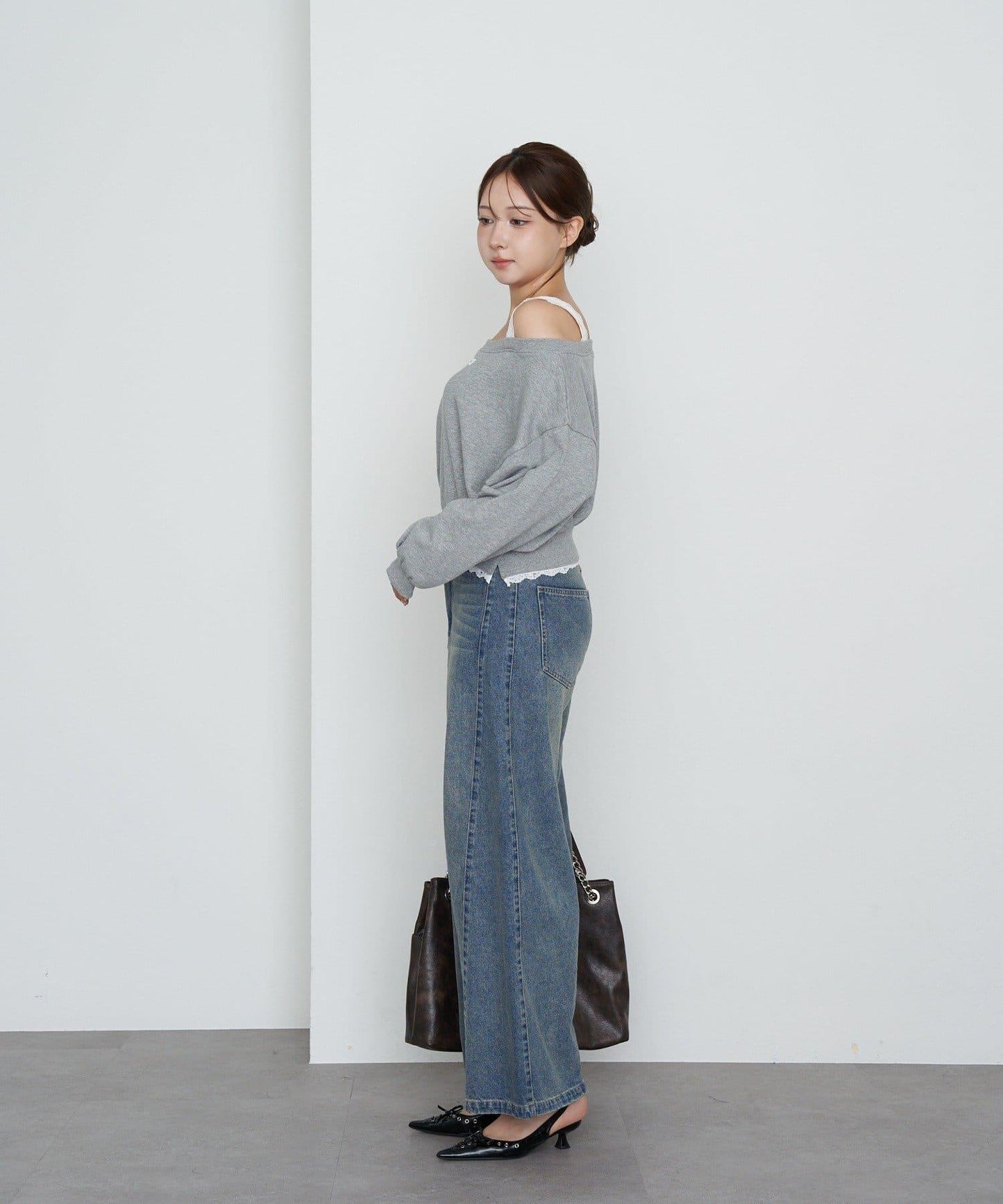 也建議搭配寬牛仔褲或休閒褲,更顯休閒。