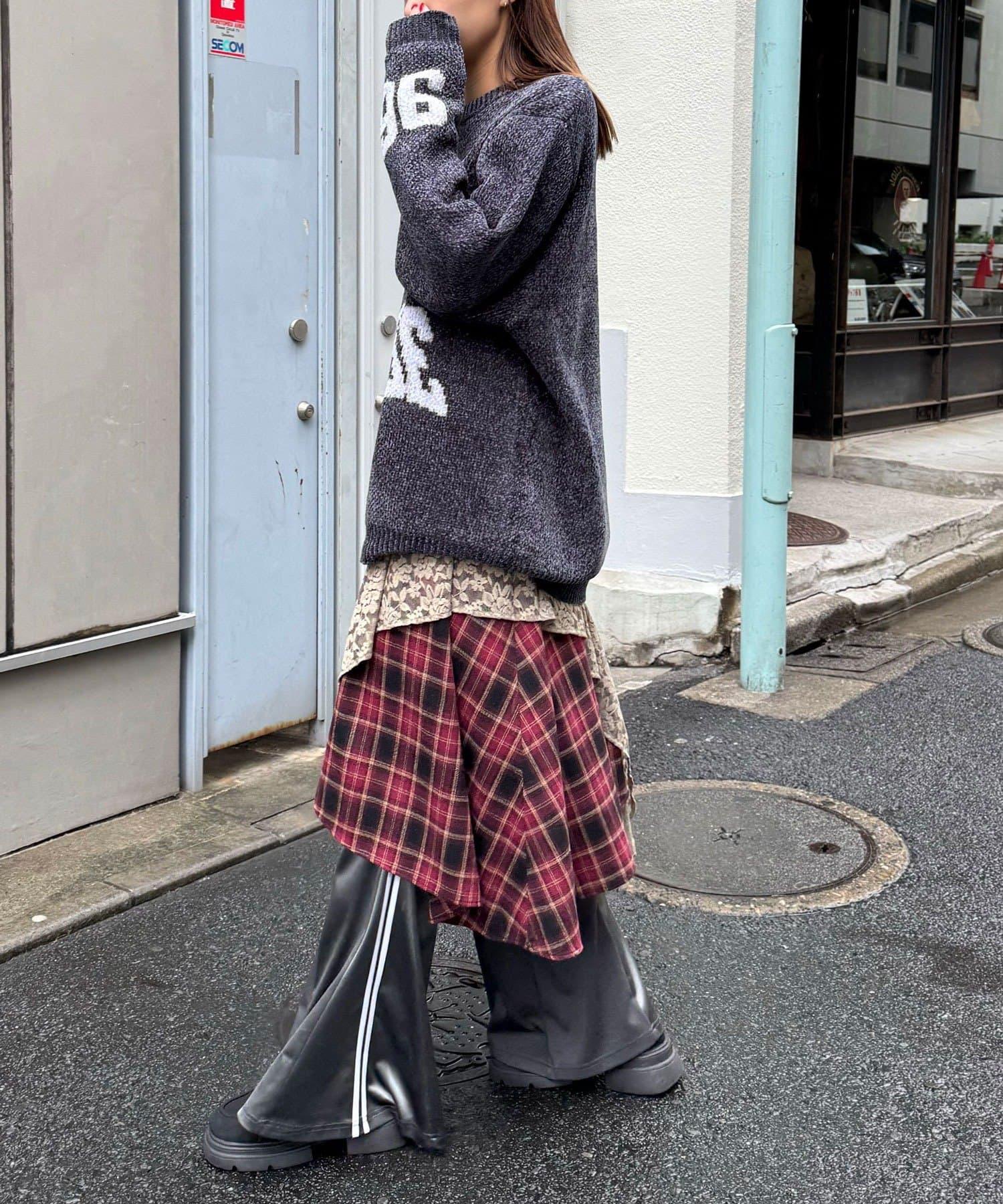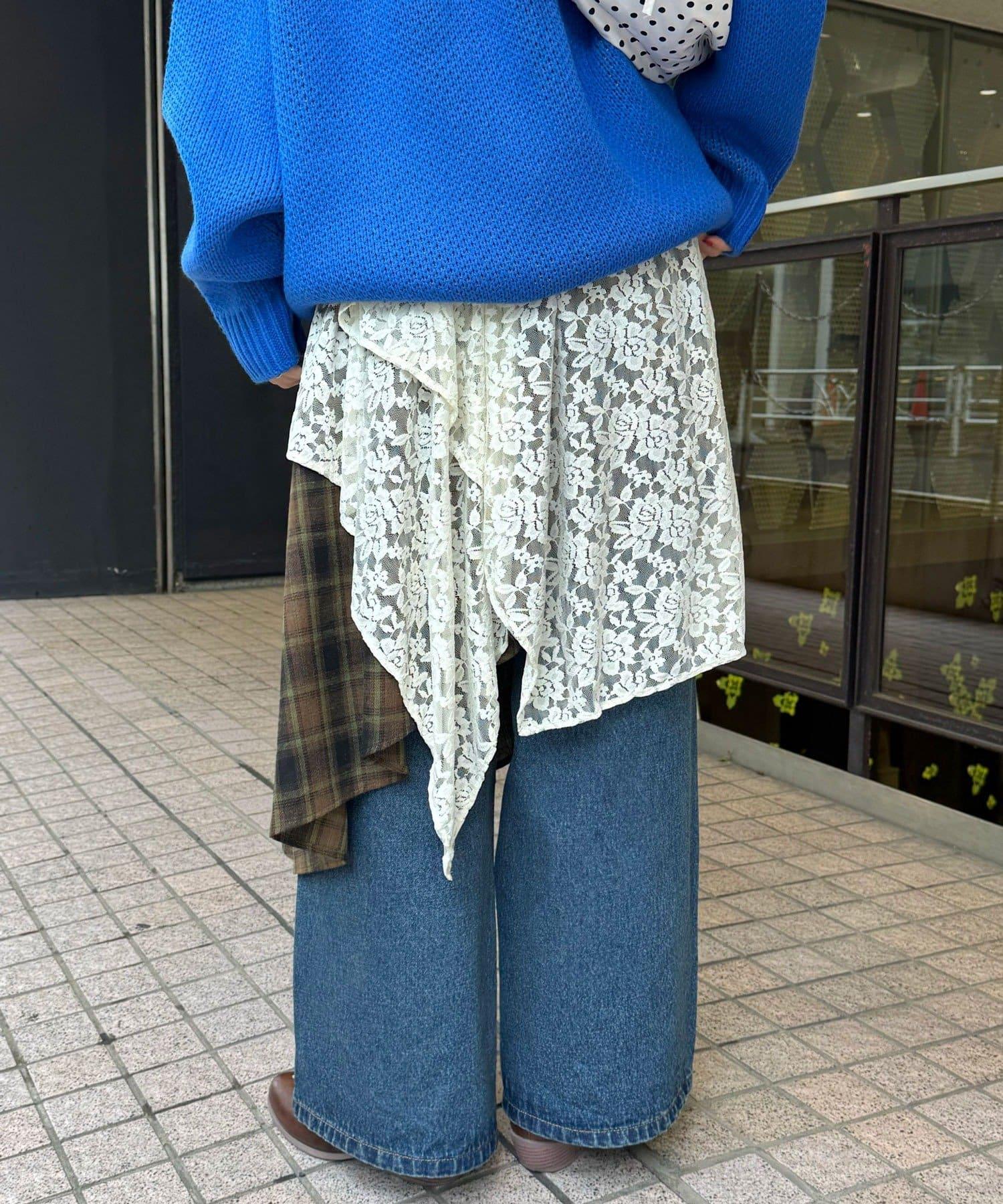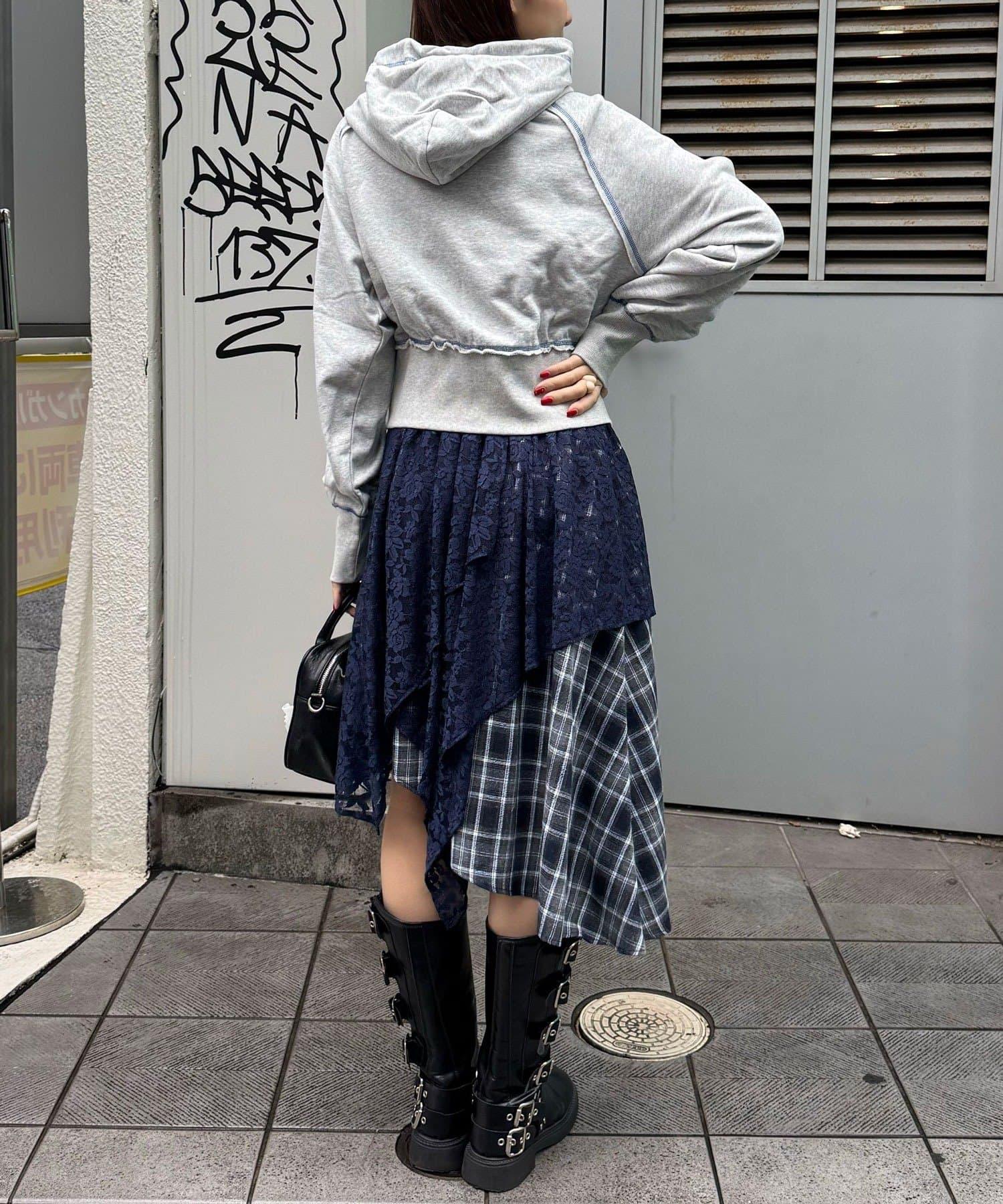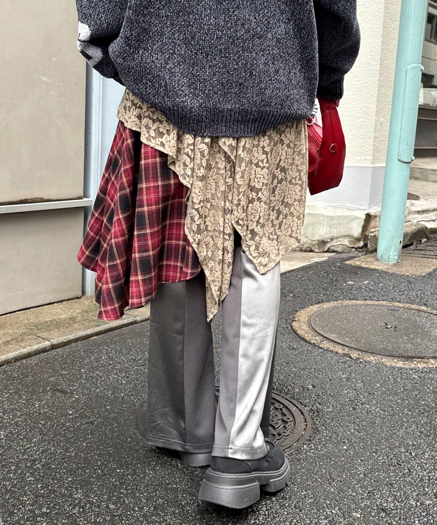 蕾絲與格紋相結合的中裙,設計富有層次感。
