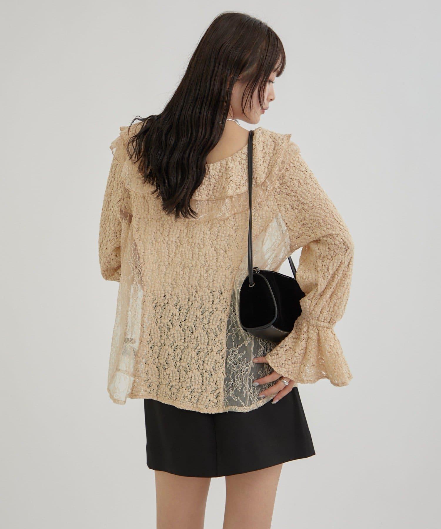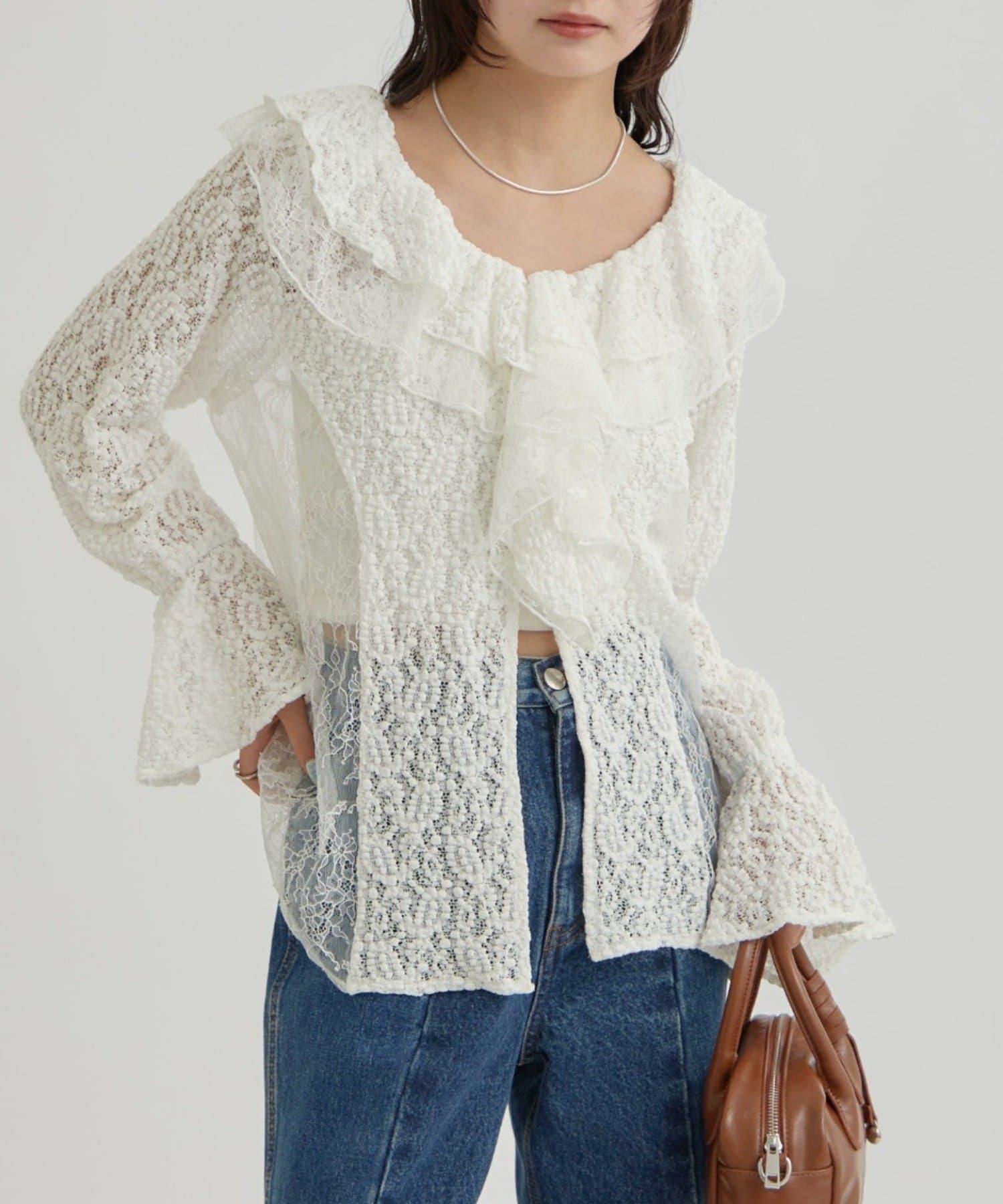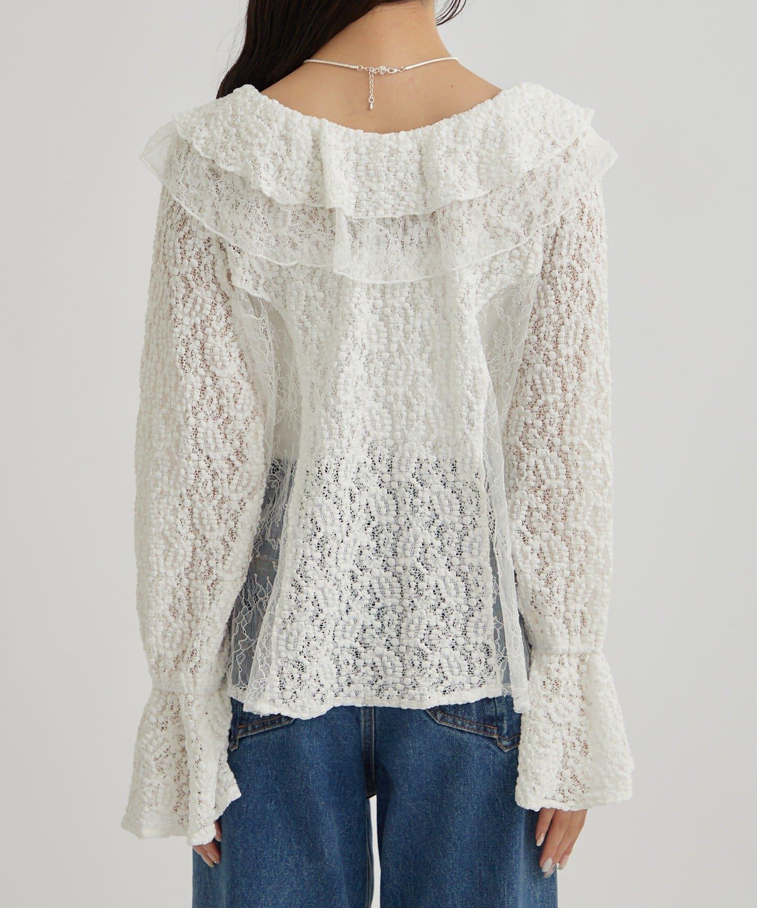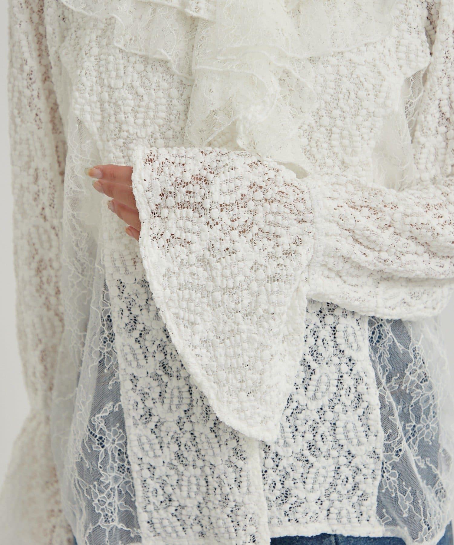 頸部大膽的流蘇與兩種精緻的蕾絲相結合,華麗的蕾絲讓這件上衣充滿了復古氣息。