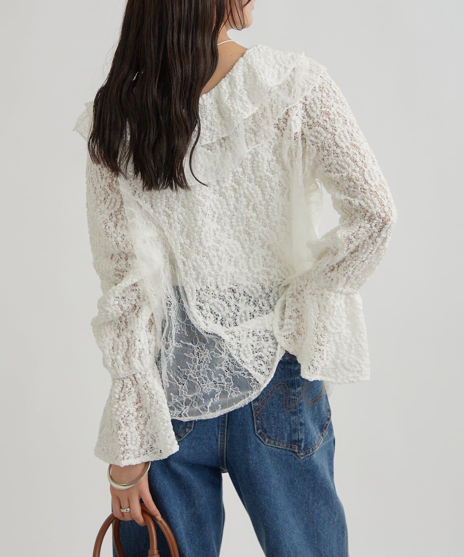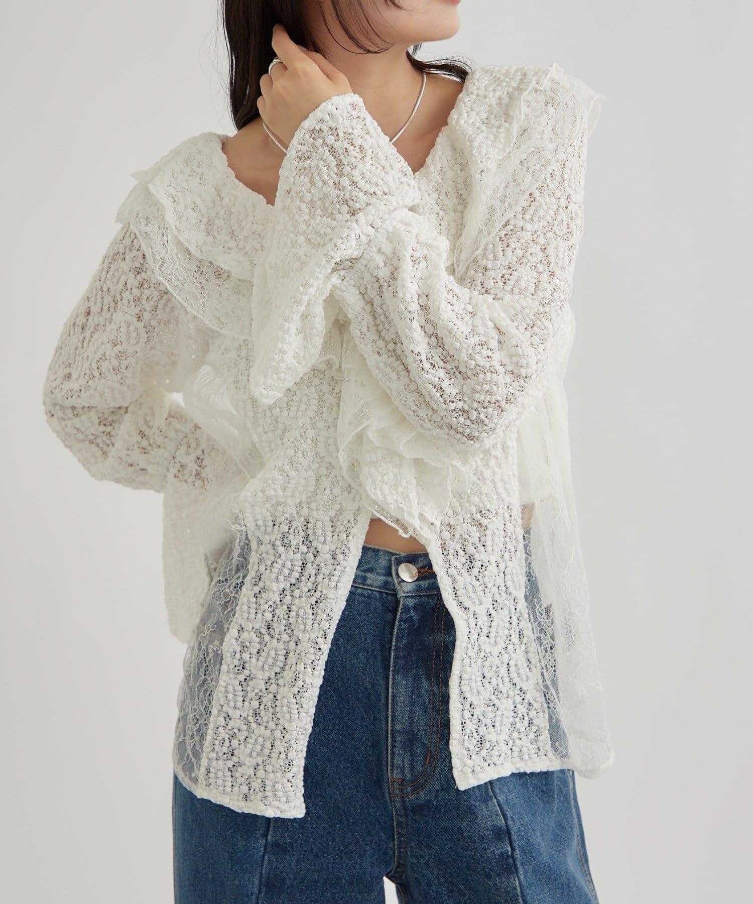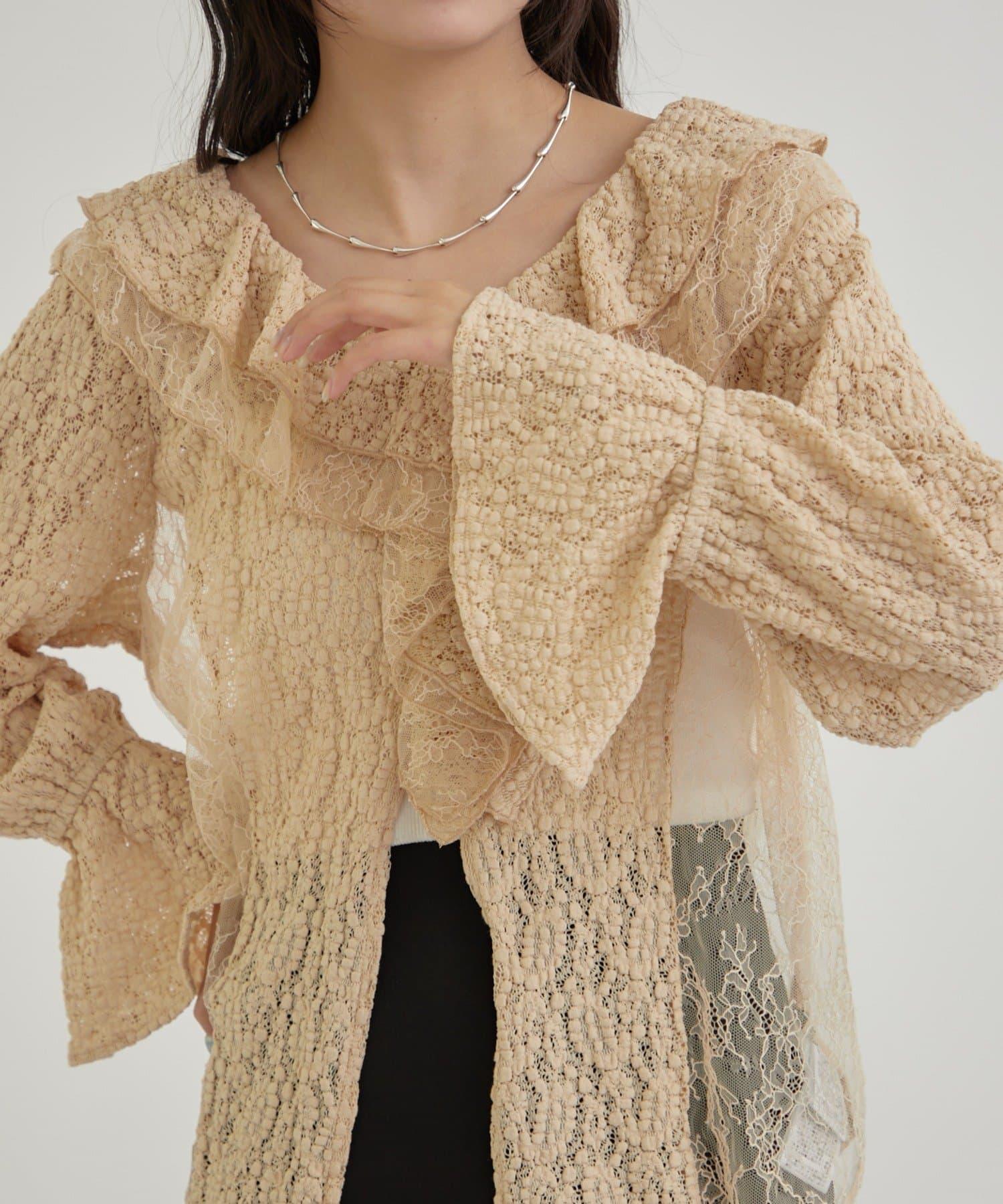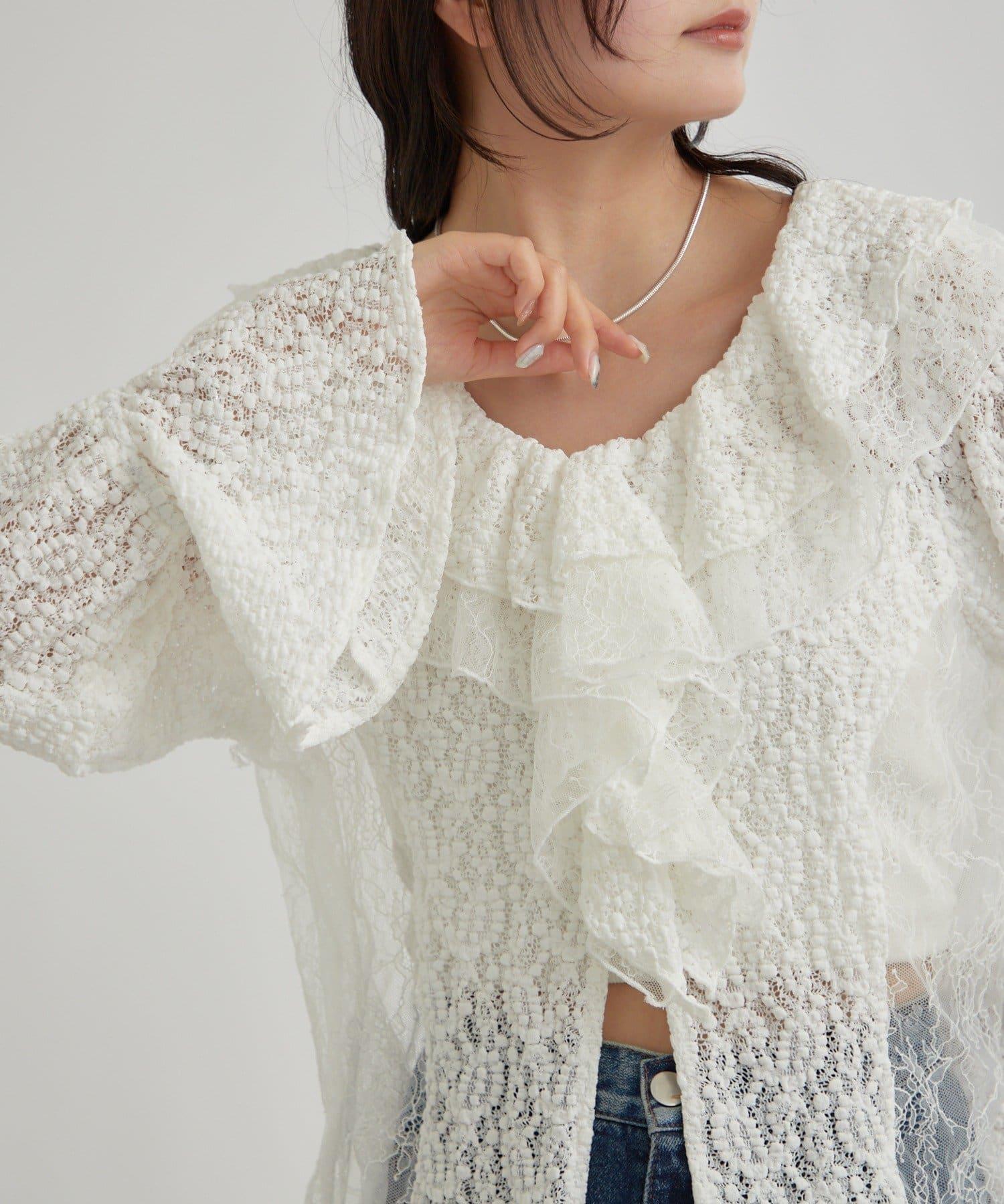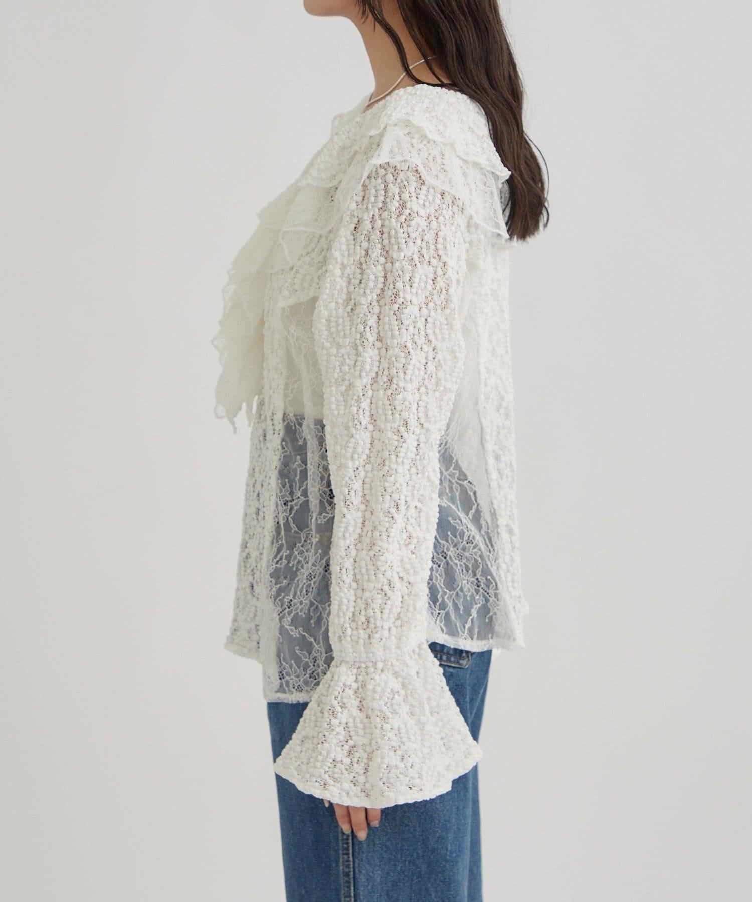頸部大膽的流蘇與兩種精緻的蕾絲相結合,華麗的蕾絲讓這件上衣充滿了復古氣息。