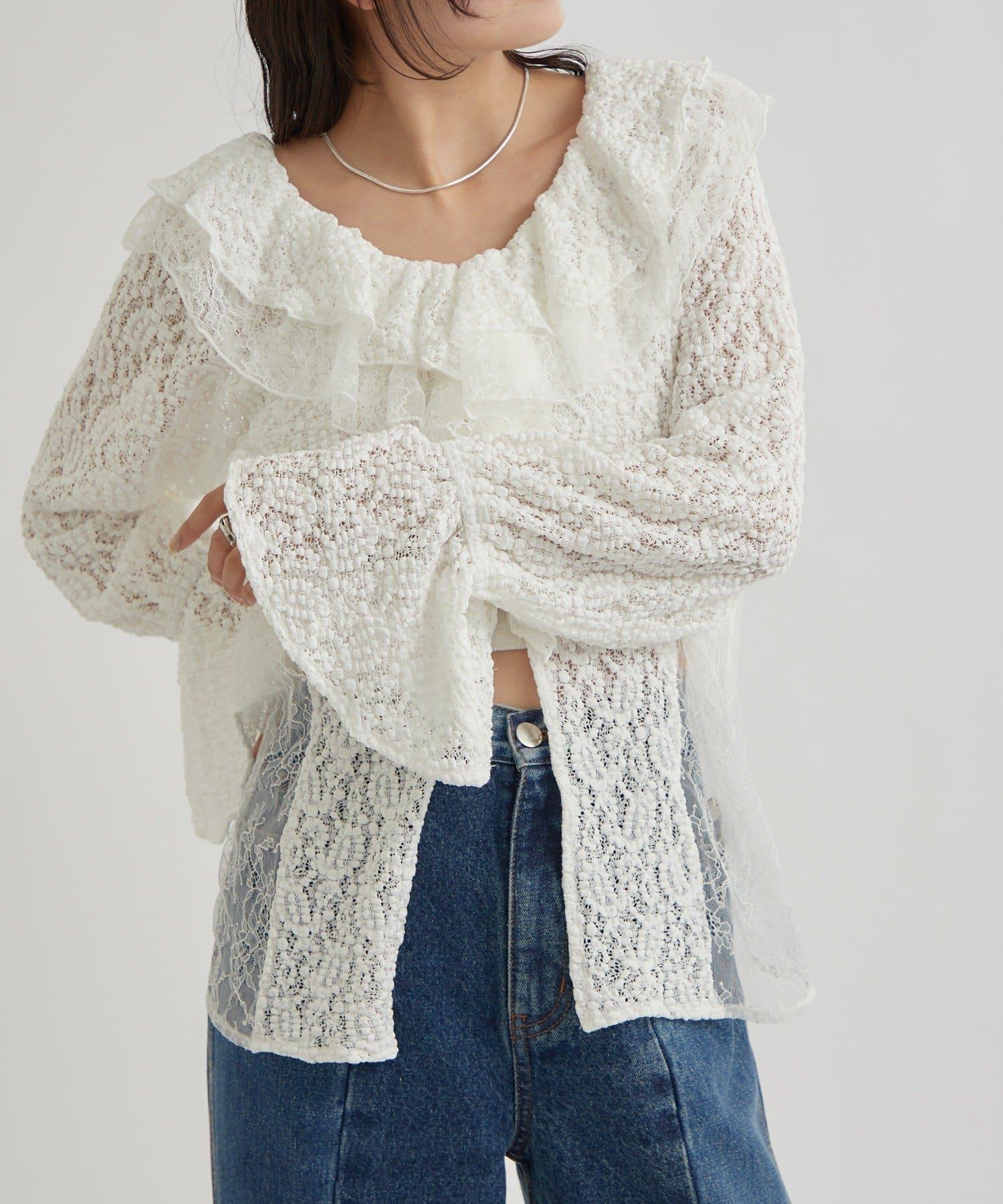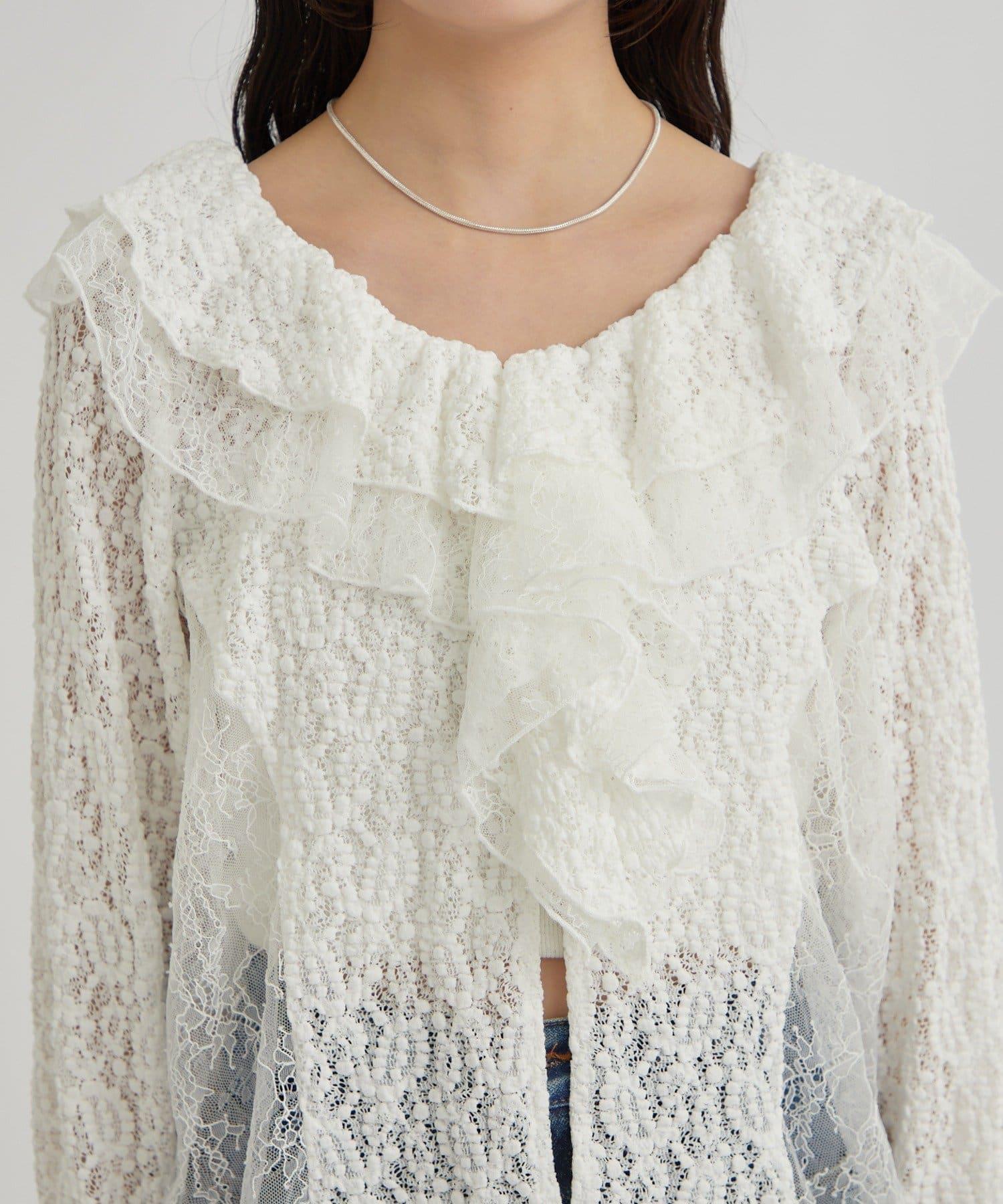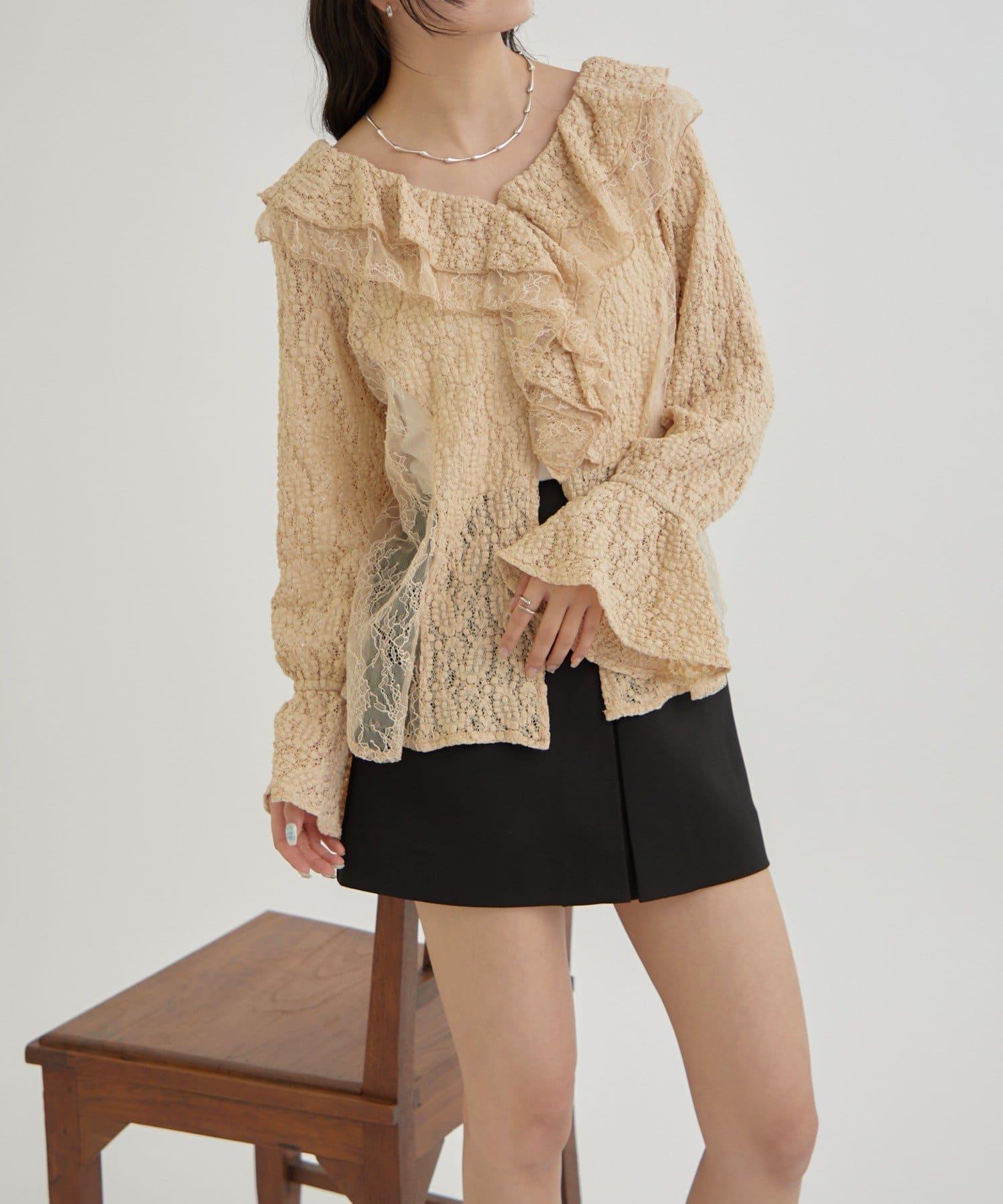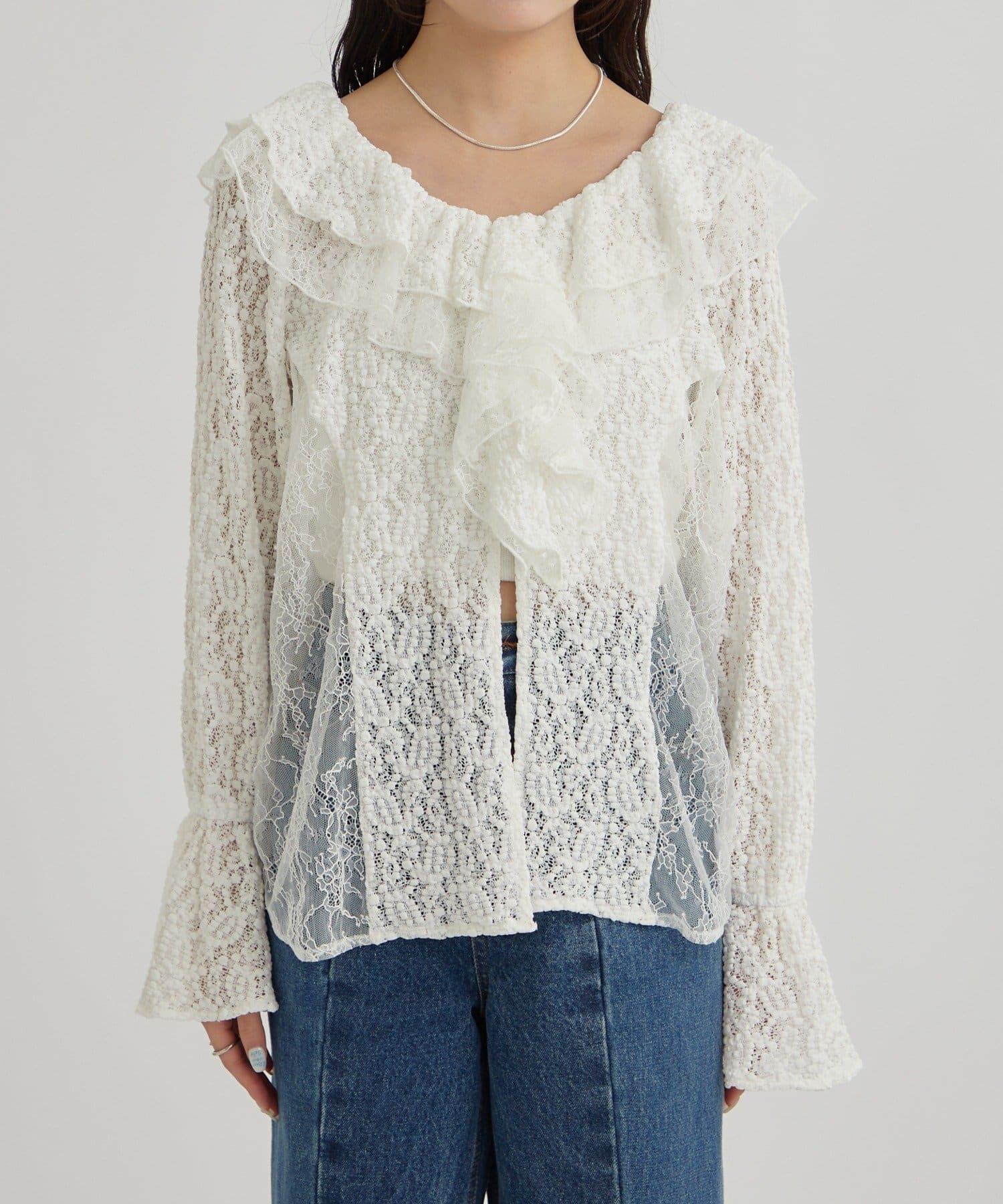 頸部大膽的流蘇與兩種精緻的蕾絲相結合,華麗的蕾絲讓這件上衣充滿了復古氣息。