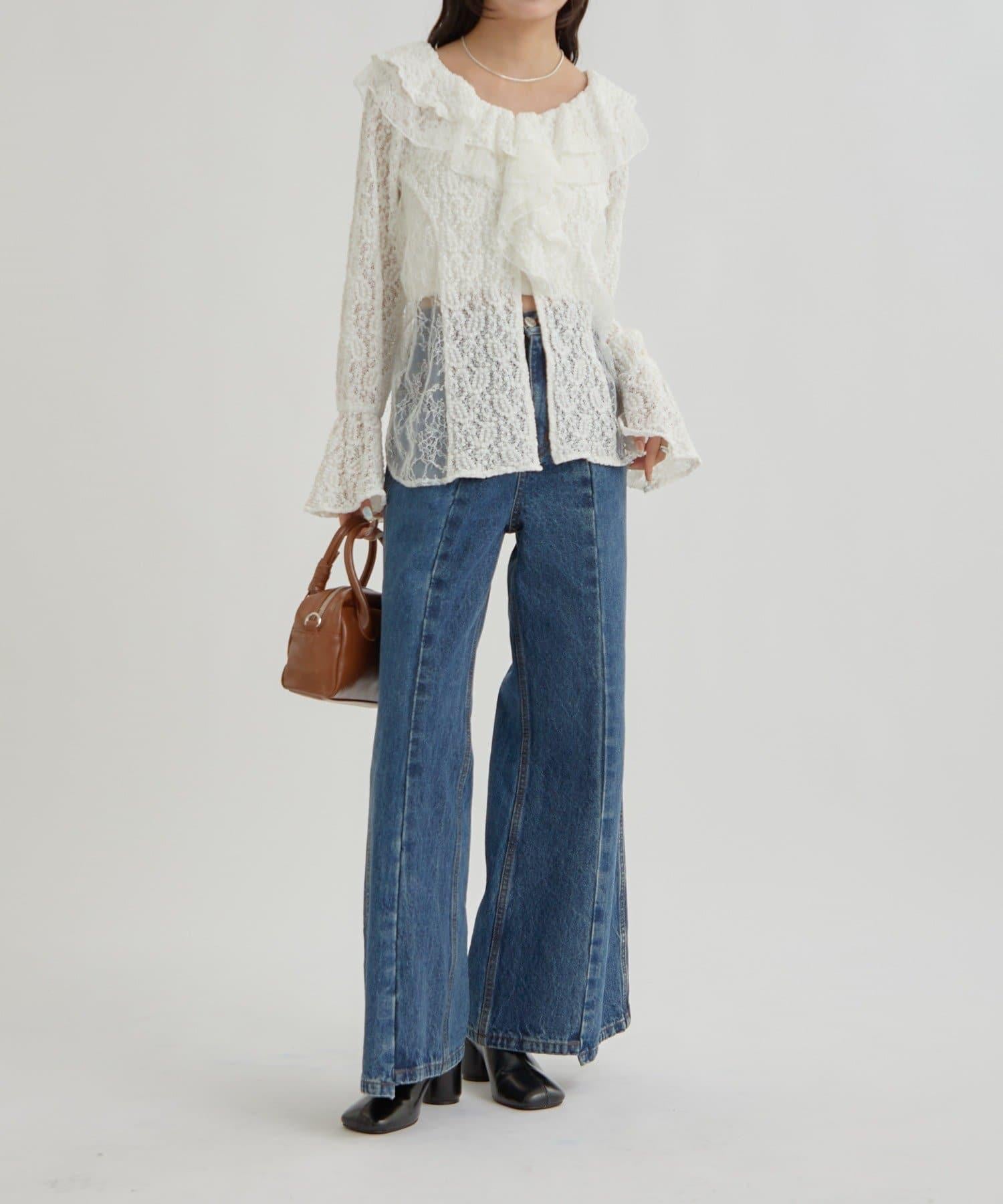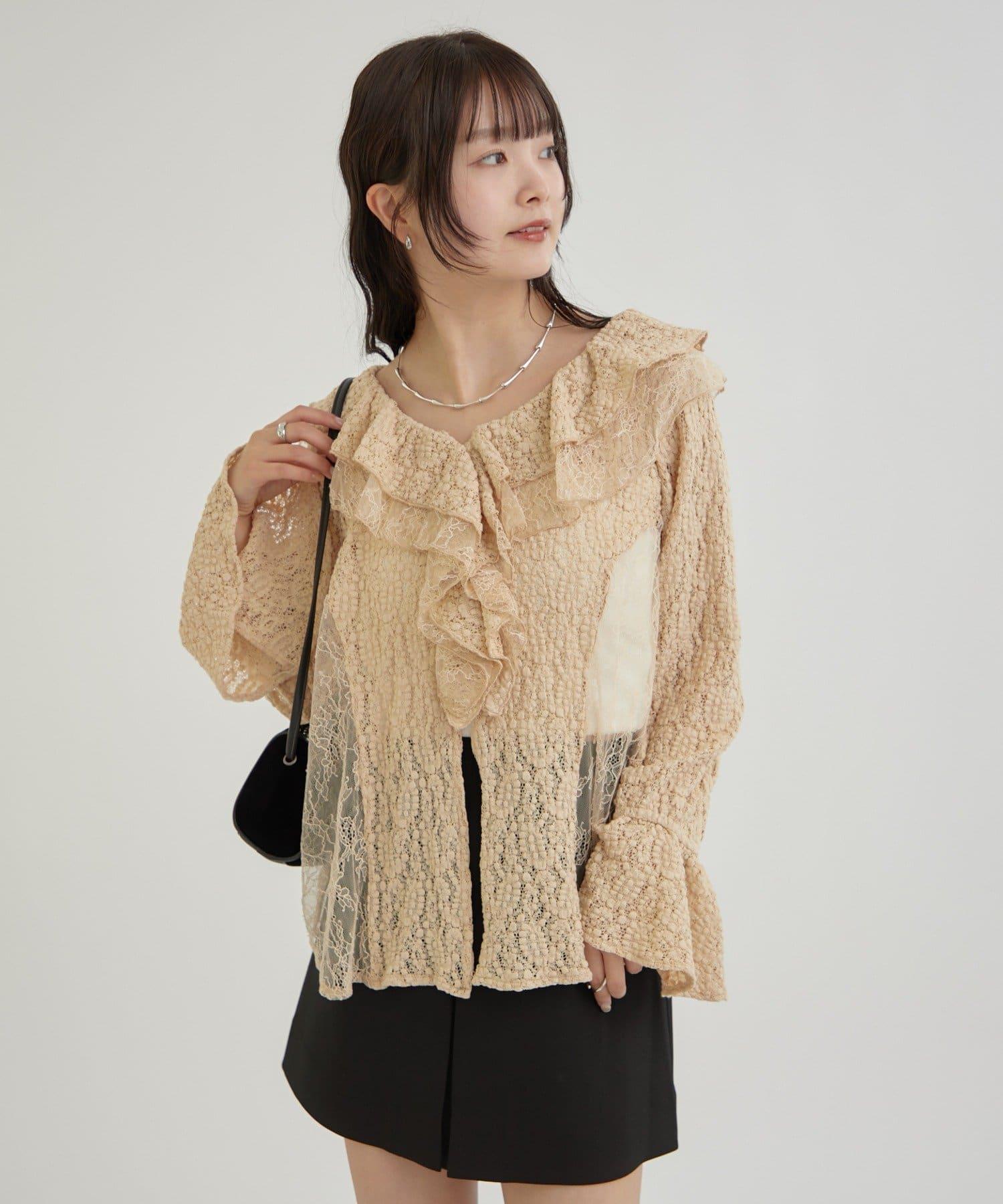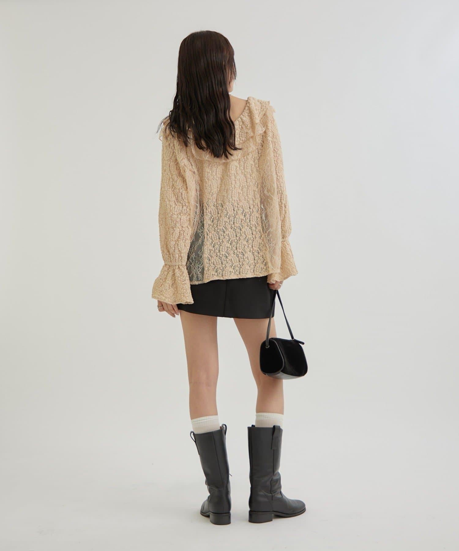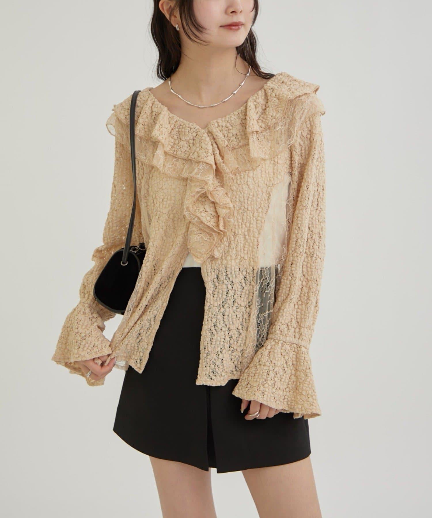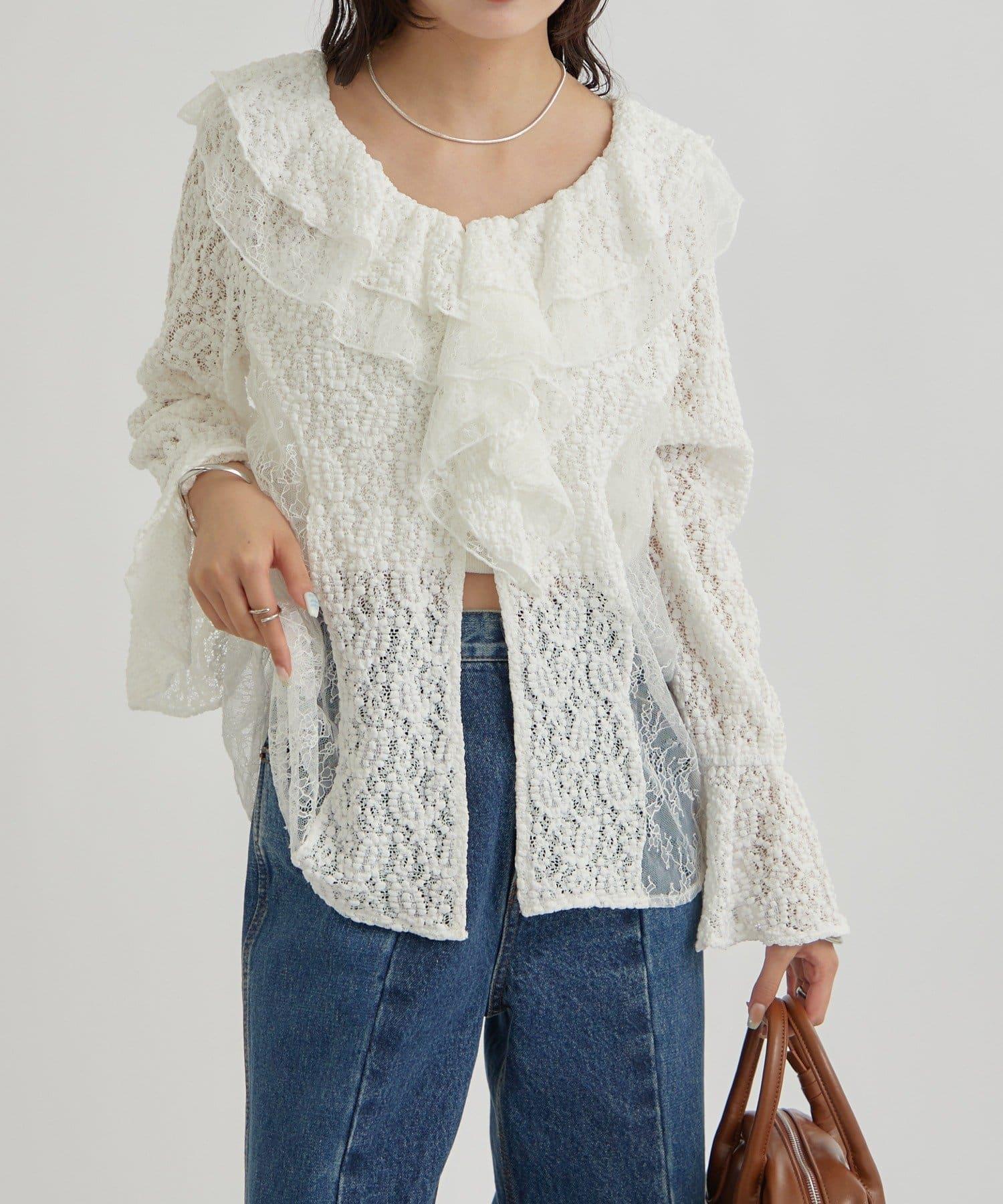頸部大膽的流蘇與兩種精緻的蕾絲相結合,華麗的蕾絲讓這件上衣充滿了復古氣息。