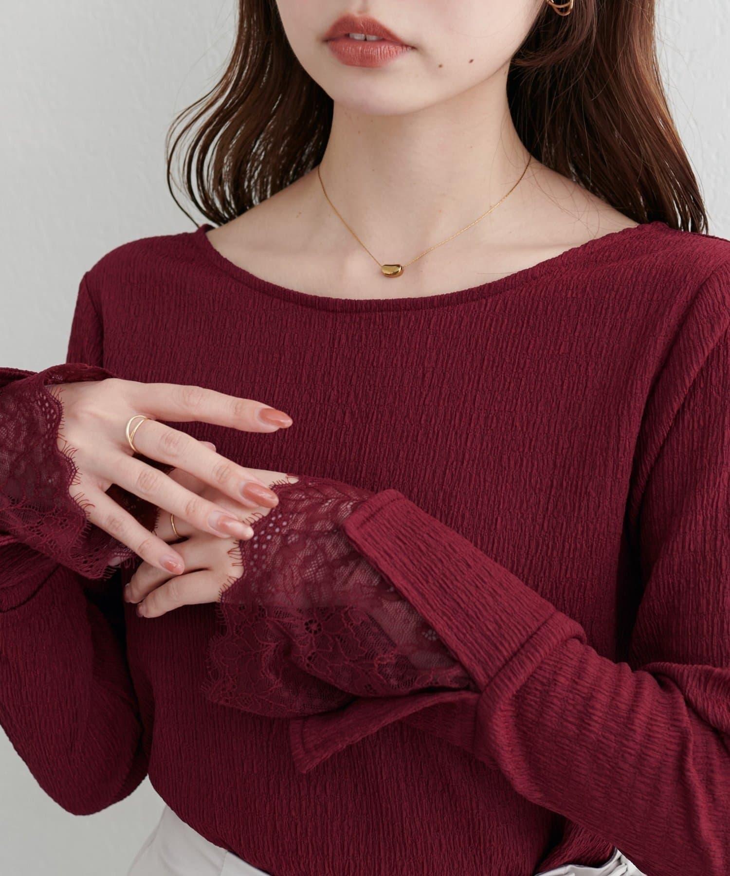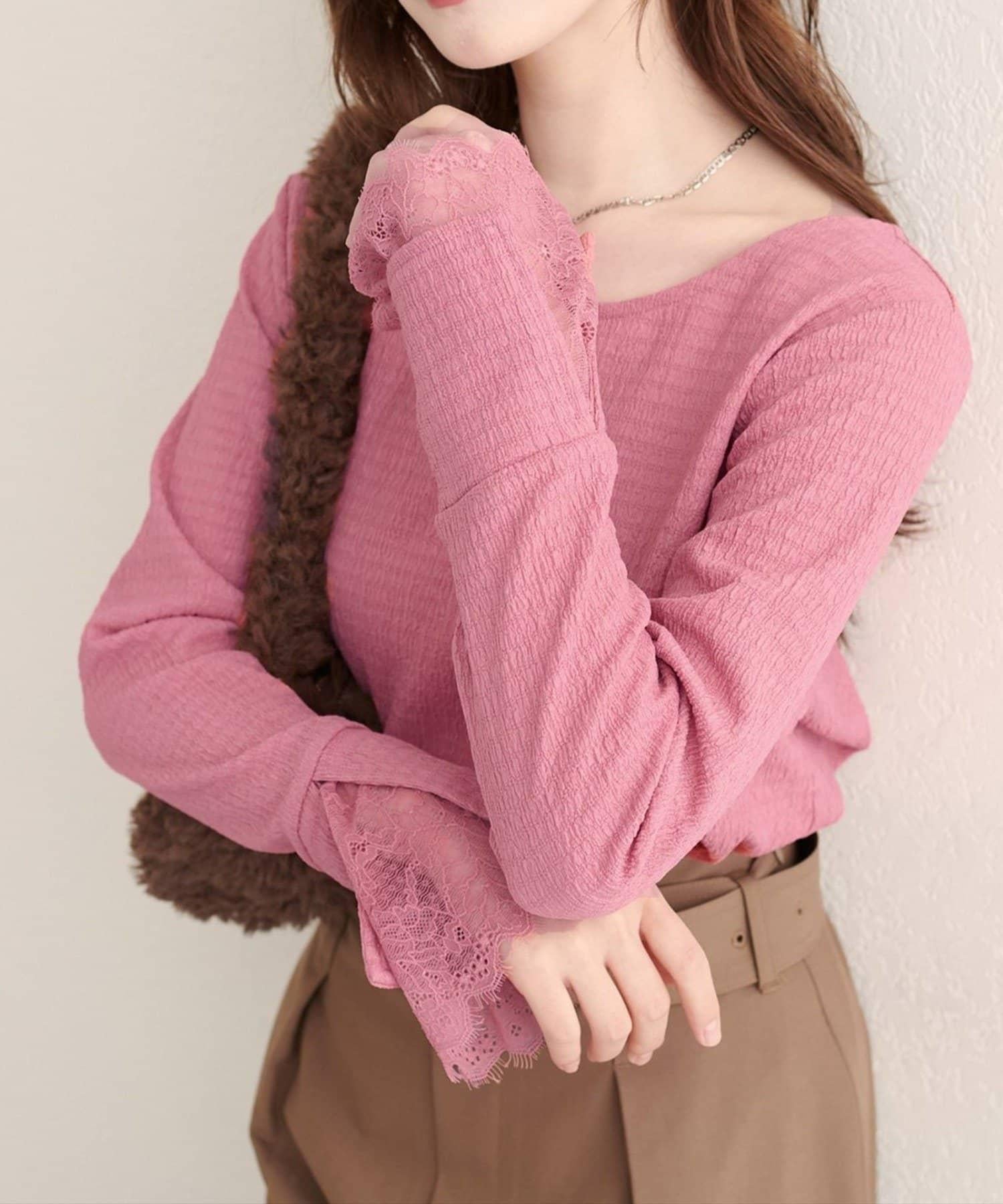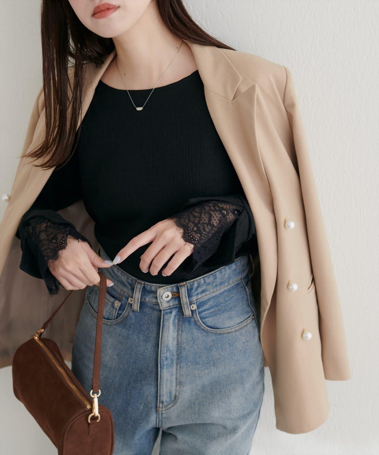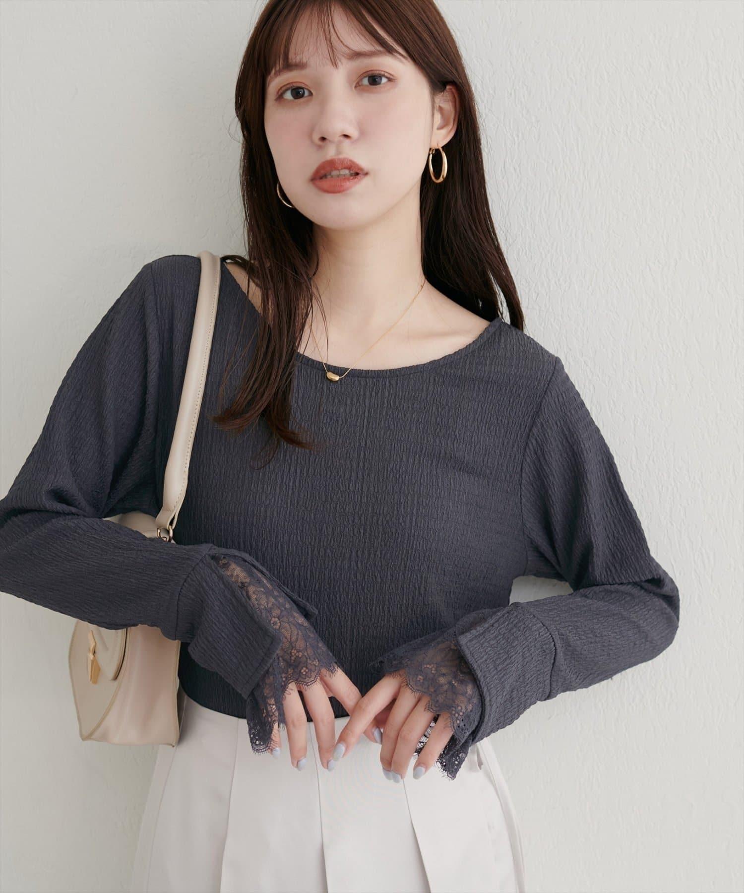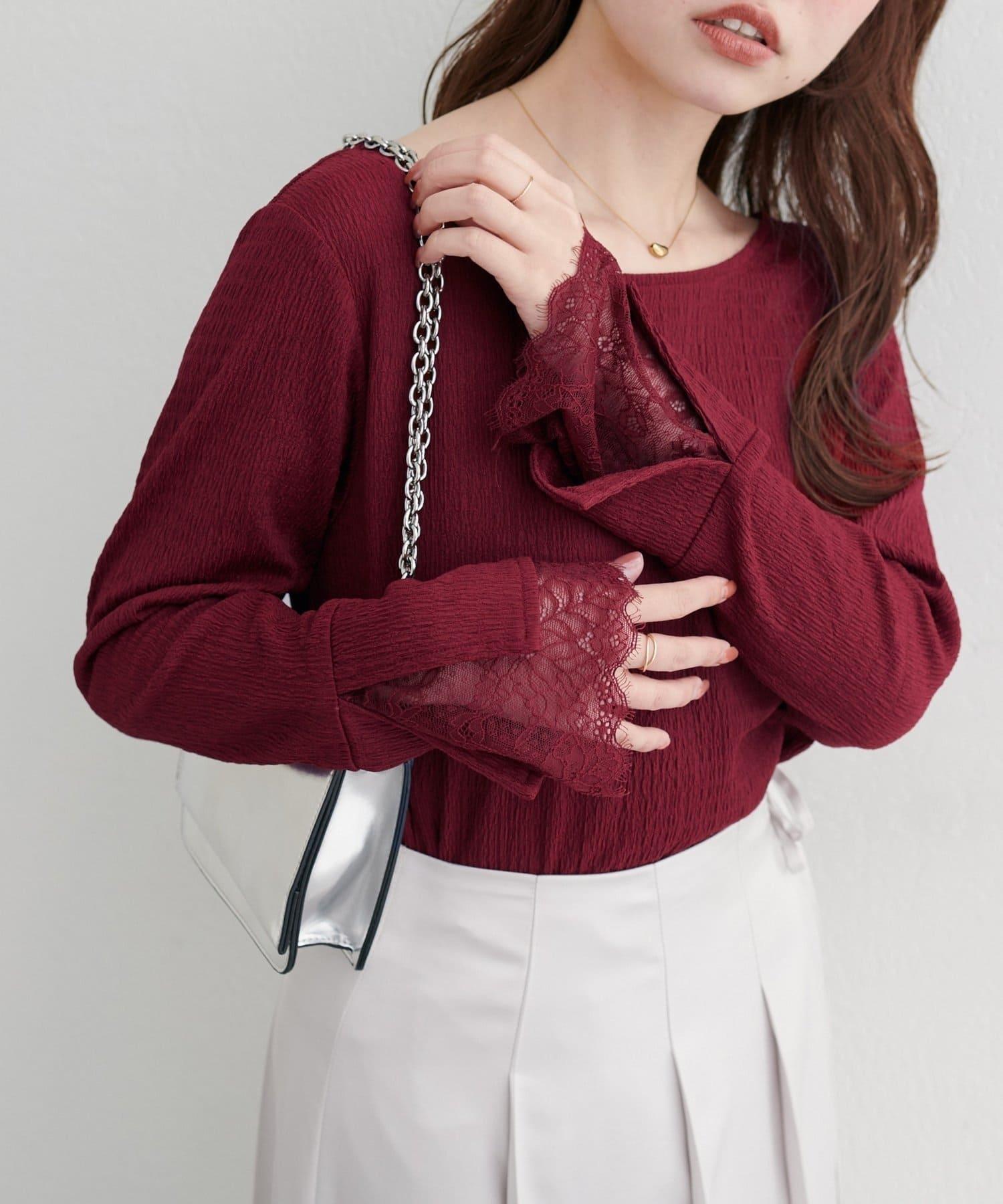 V 領可以穿在前面,露出肩部,營造出寬鬆的感覺。蕾絲不甜膩,給人精緻的印象。