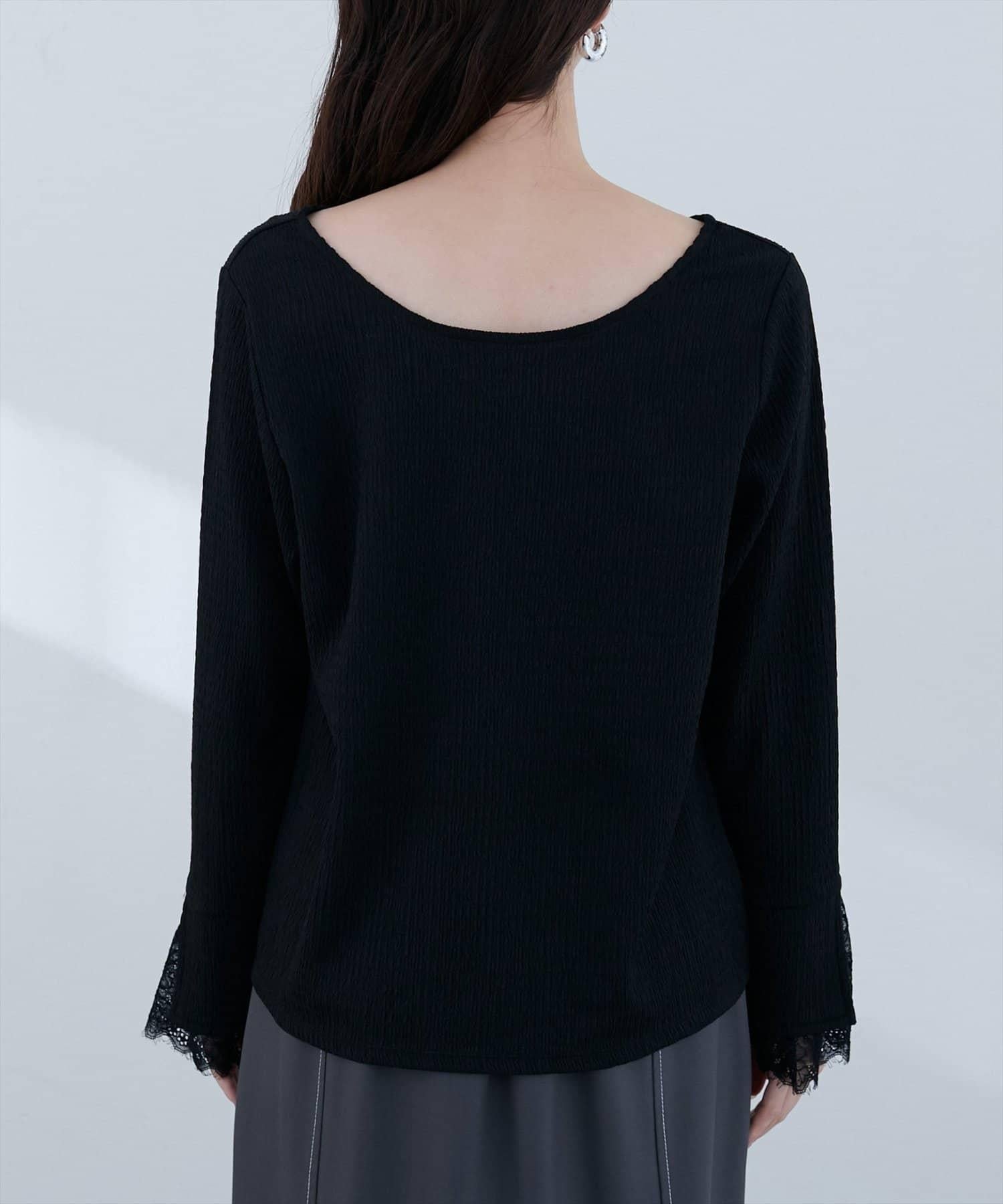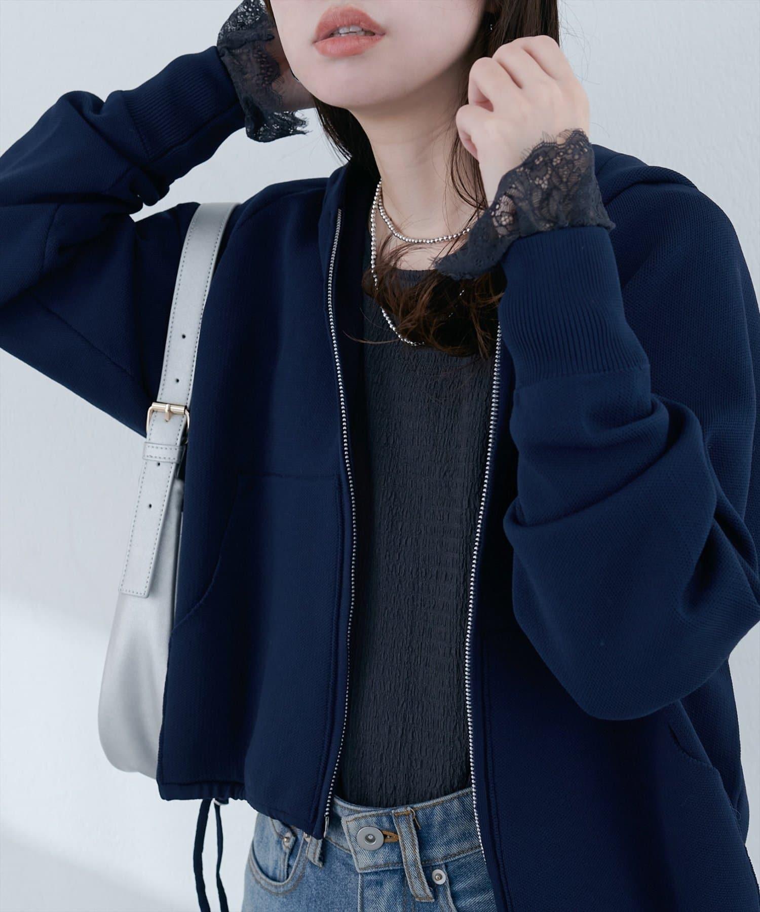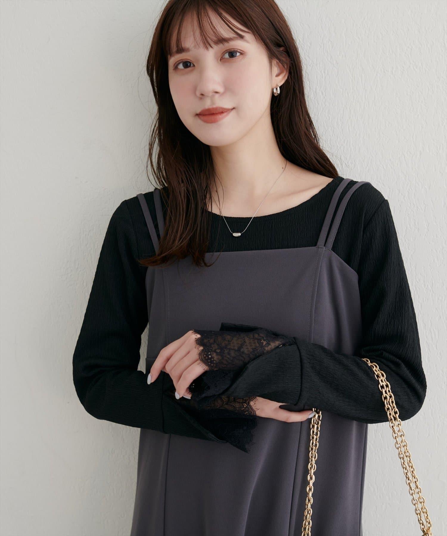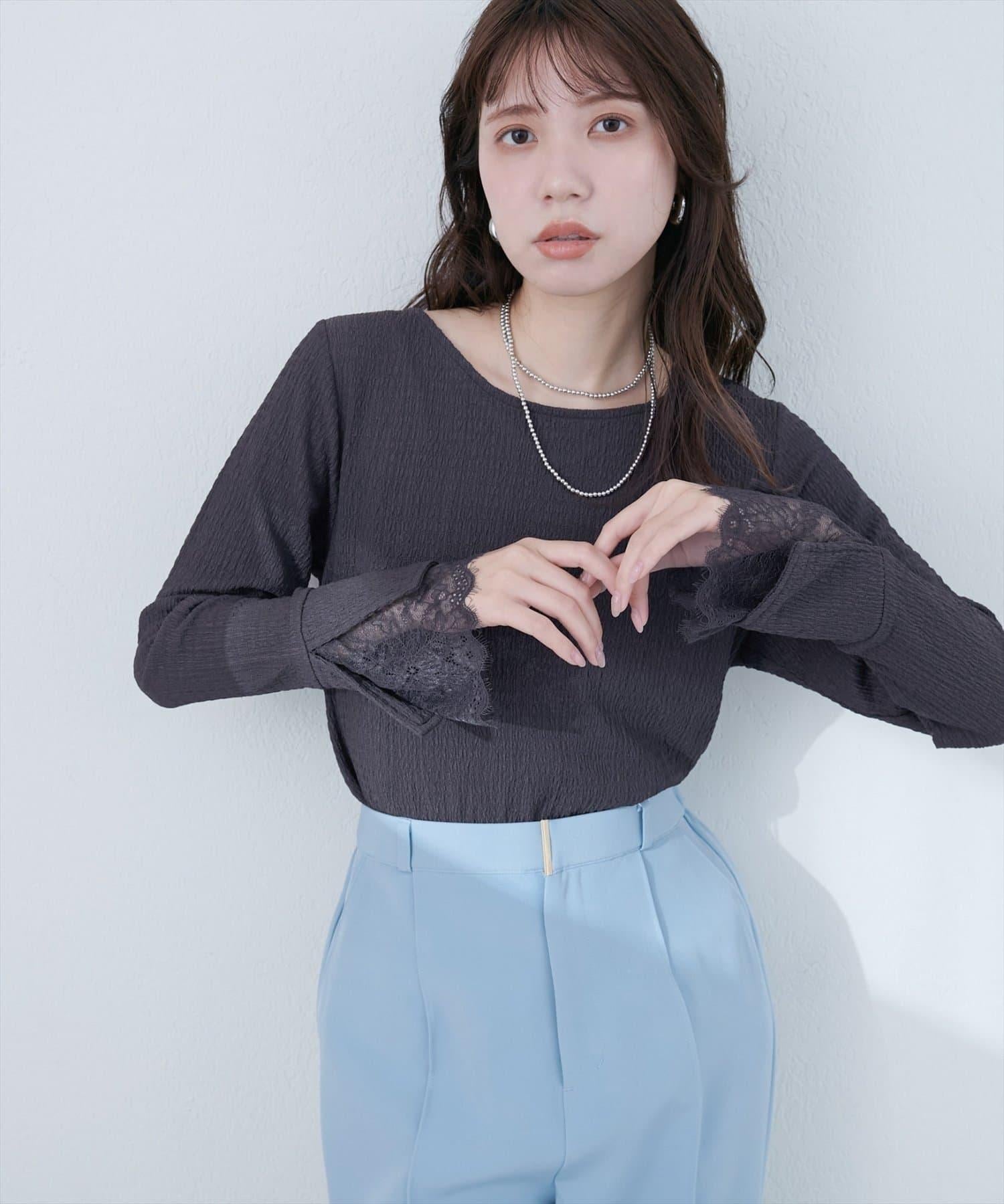 V 領可以穿在前面,露出肩部,營造出寬鬆的感覺。蕾絲不甜膩,給人精緻的印象。