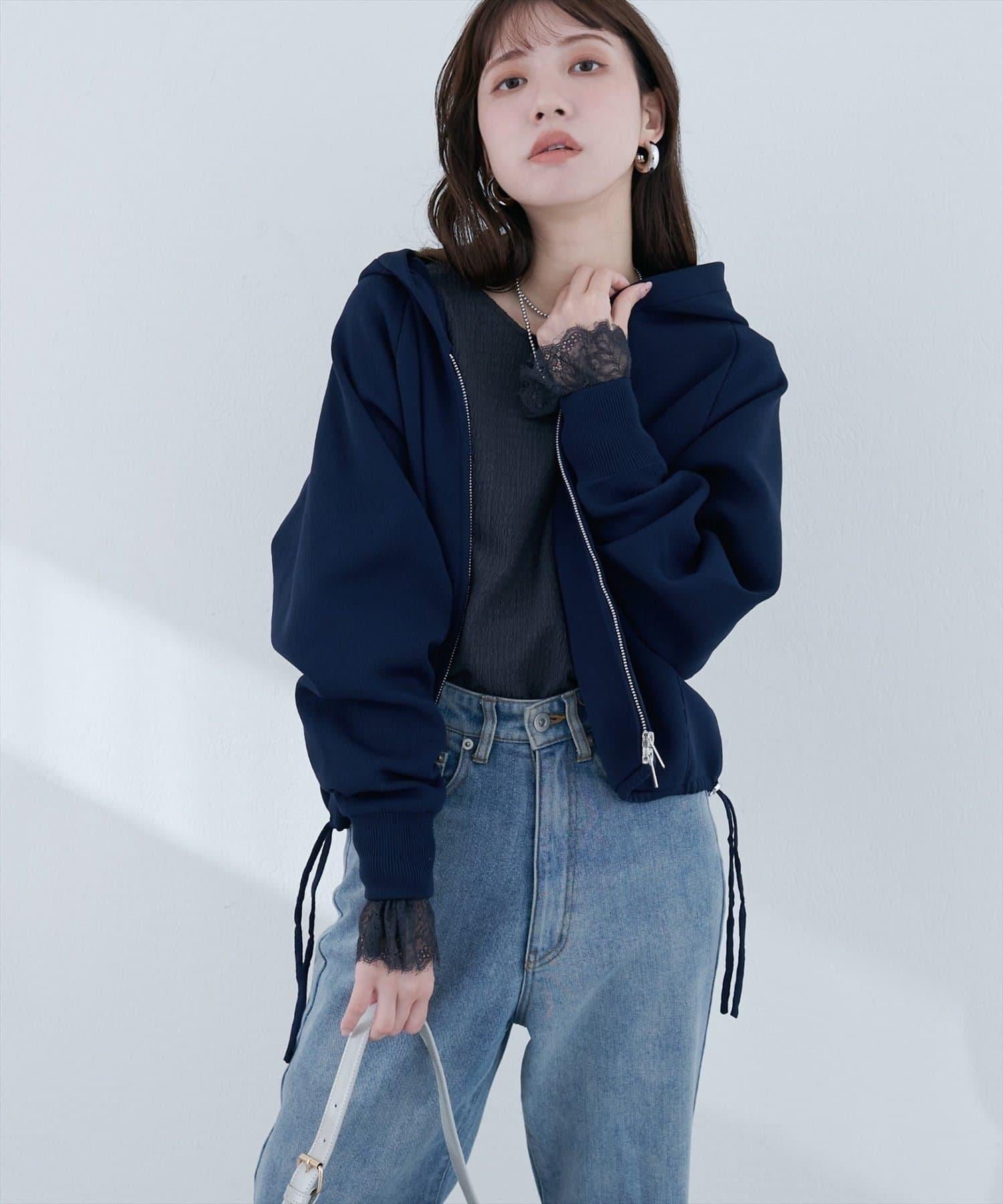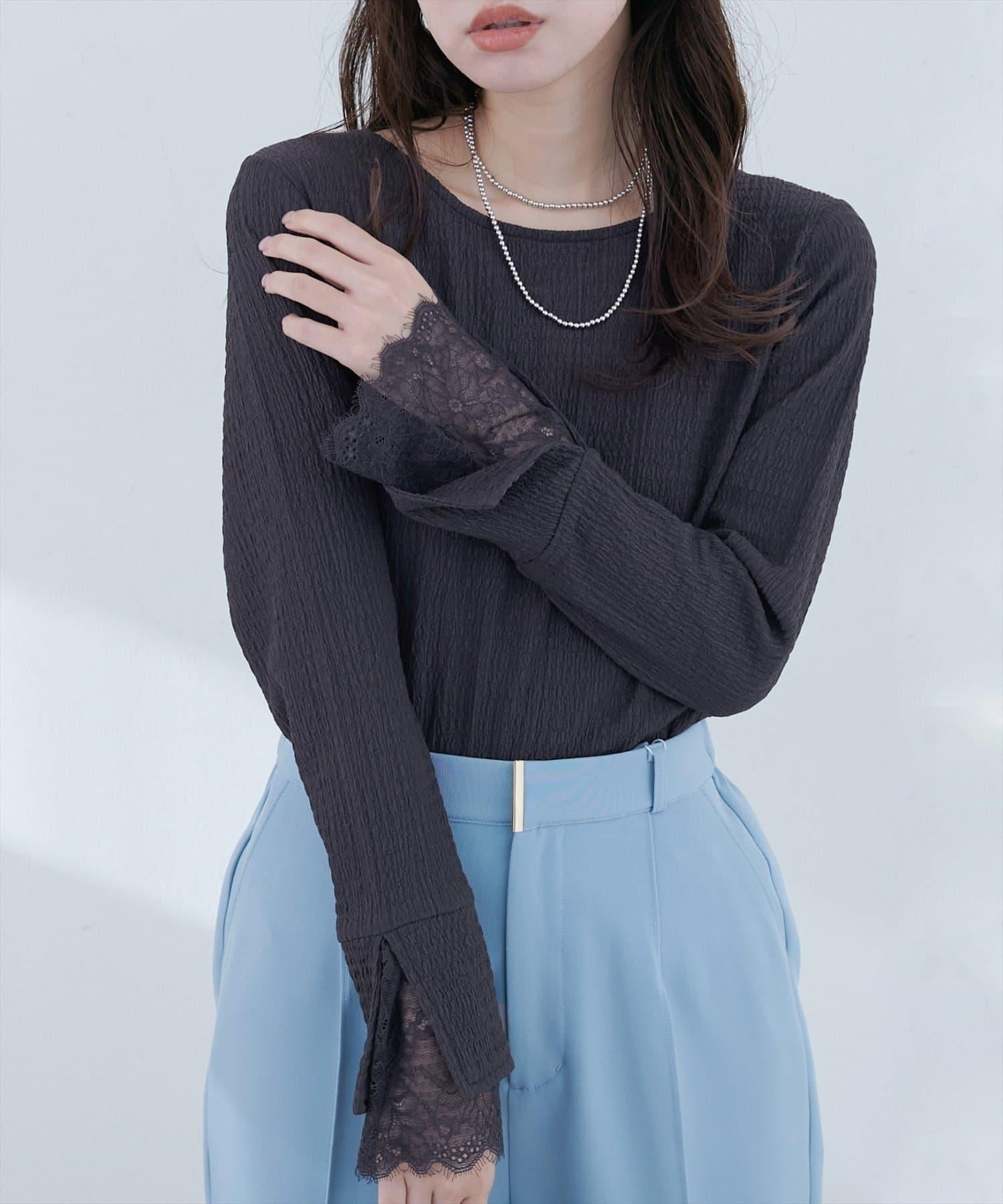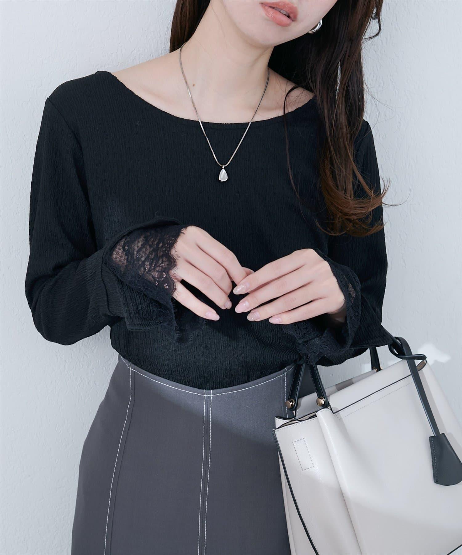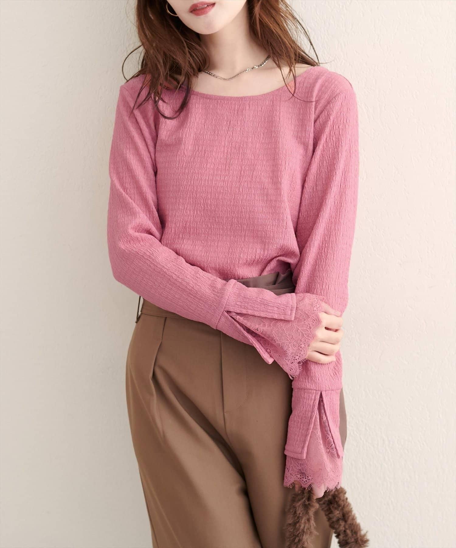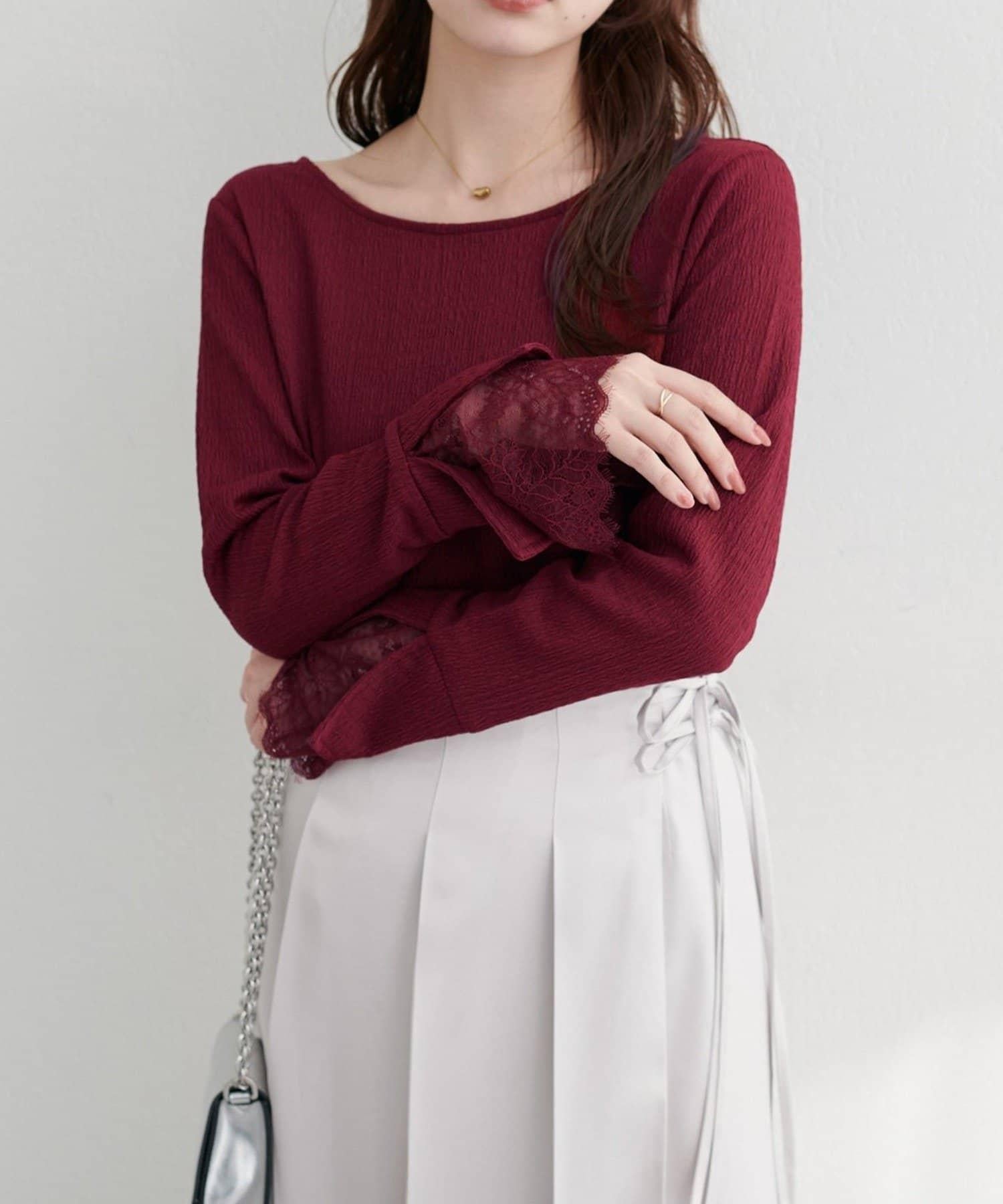 V 領可以穿在前面,露出肩部,營造出寬鬆的感覺。蕾絲不甜膩,給人精緻的印象。