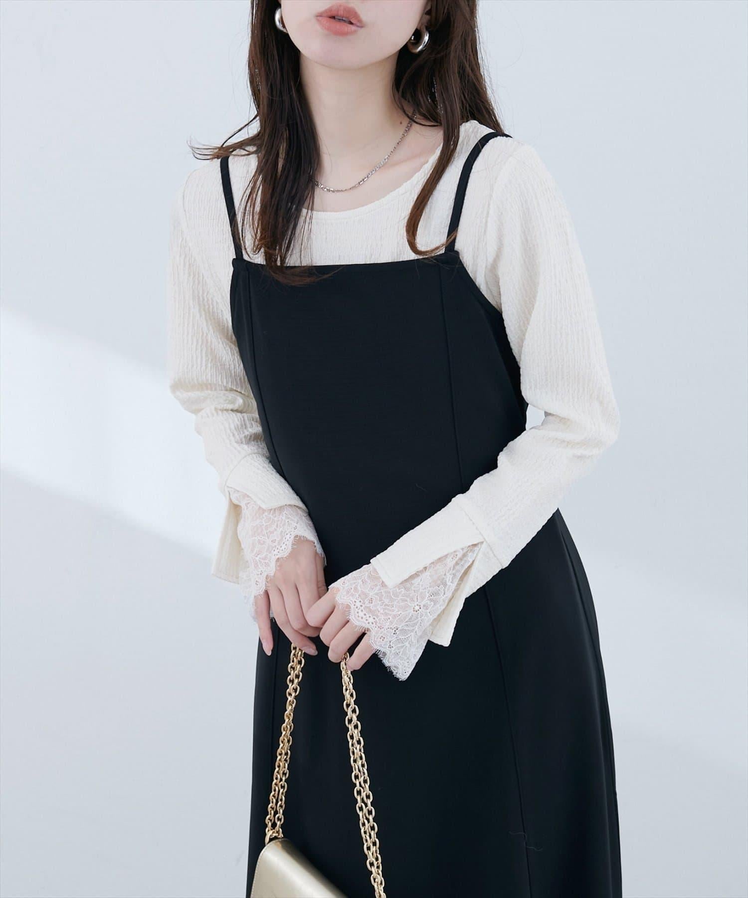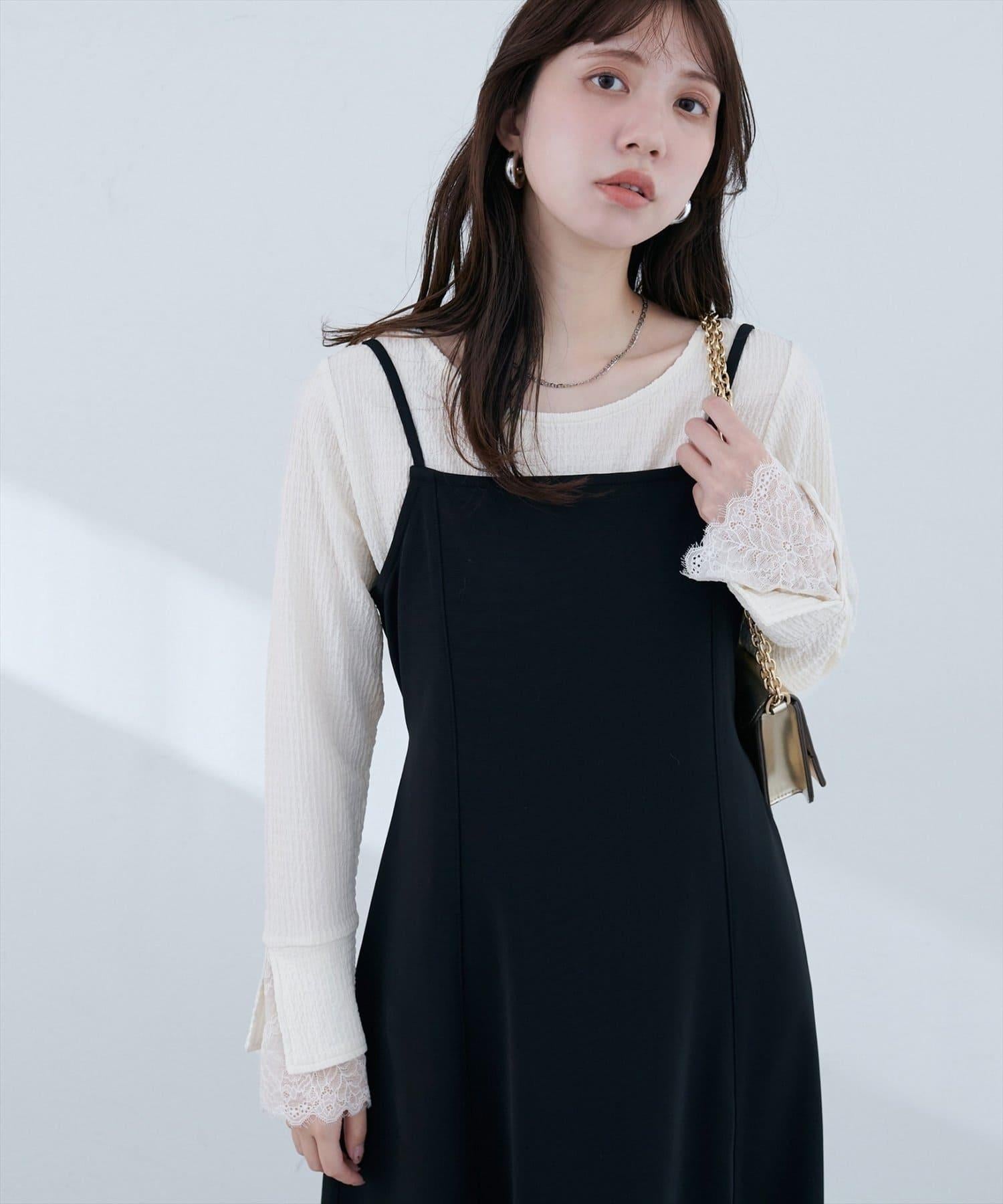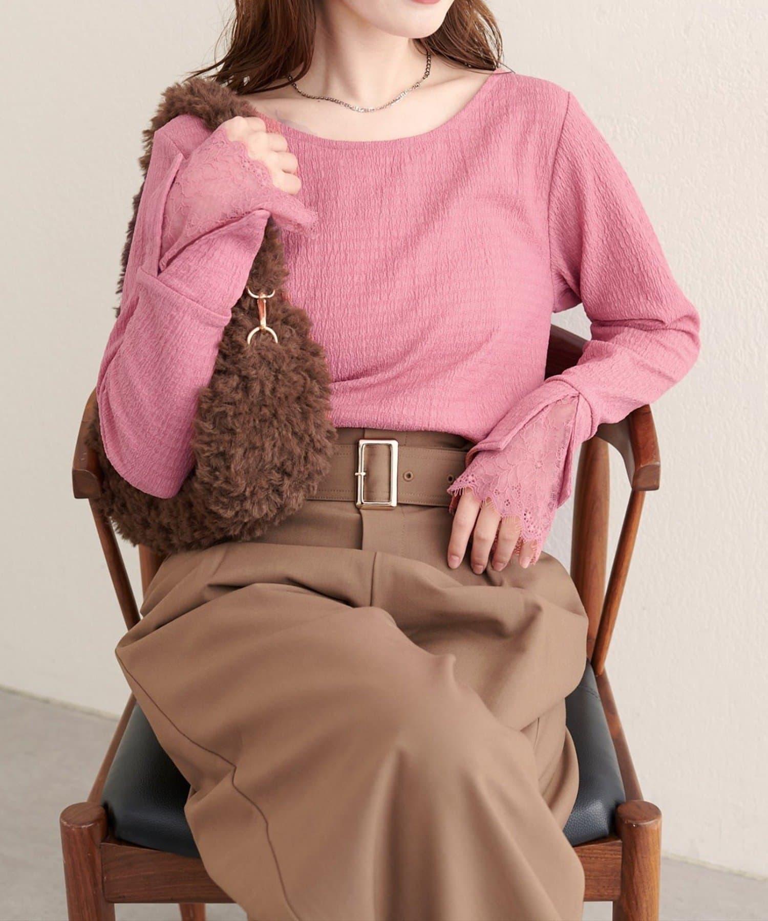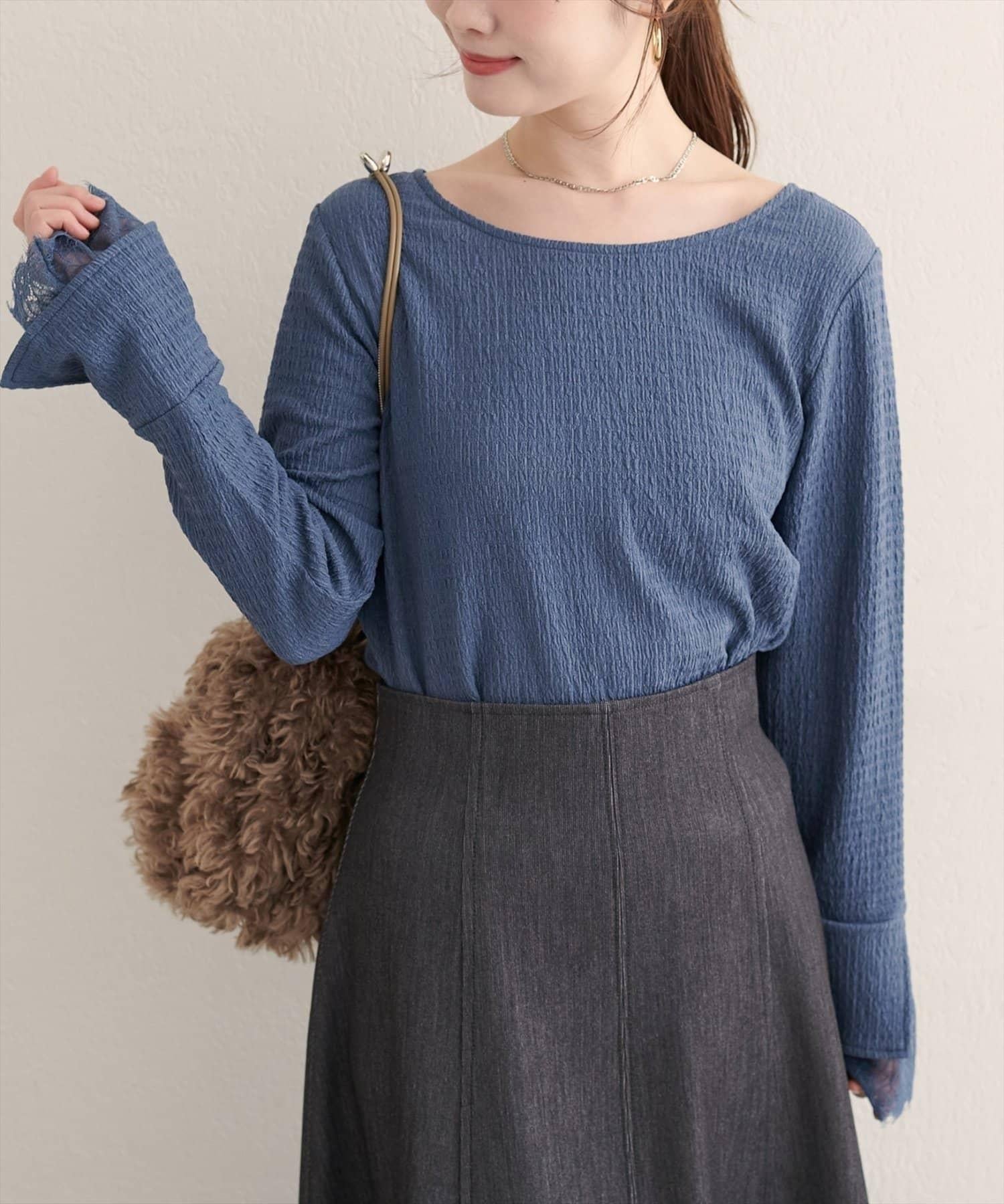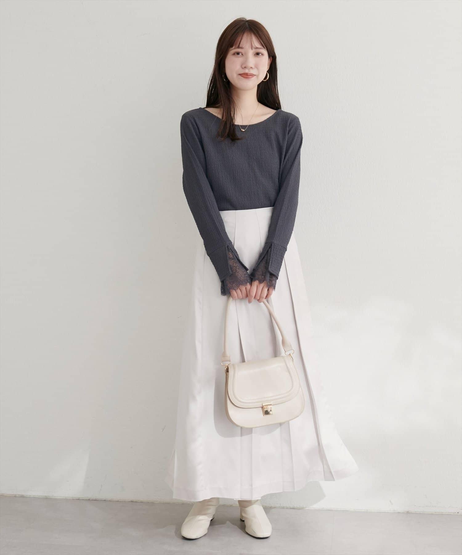 V 領可以穿在前面,露出肩部,營造出寬鬆的感覺。蕾絲不甜膩,給人精緻的印象。