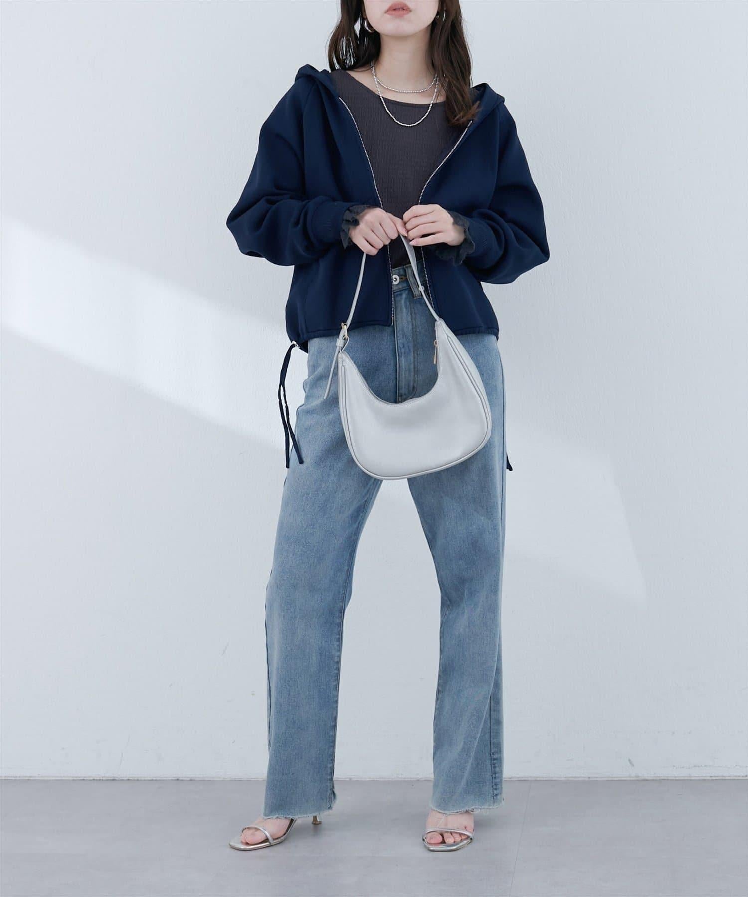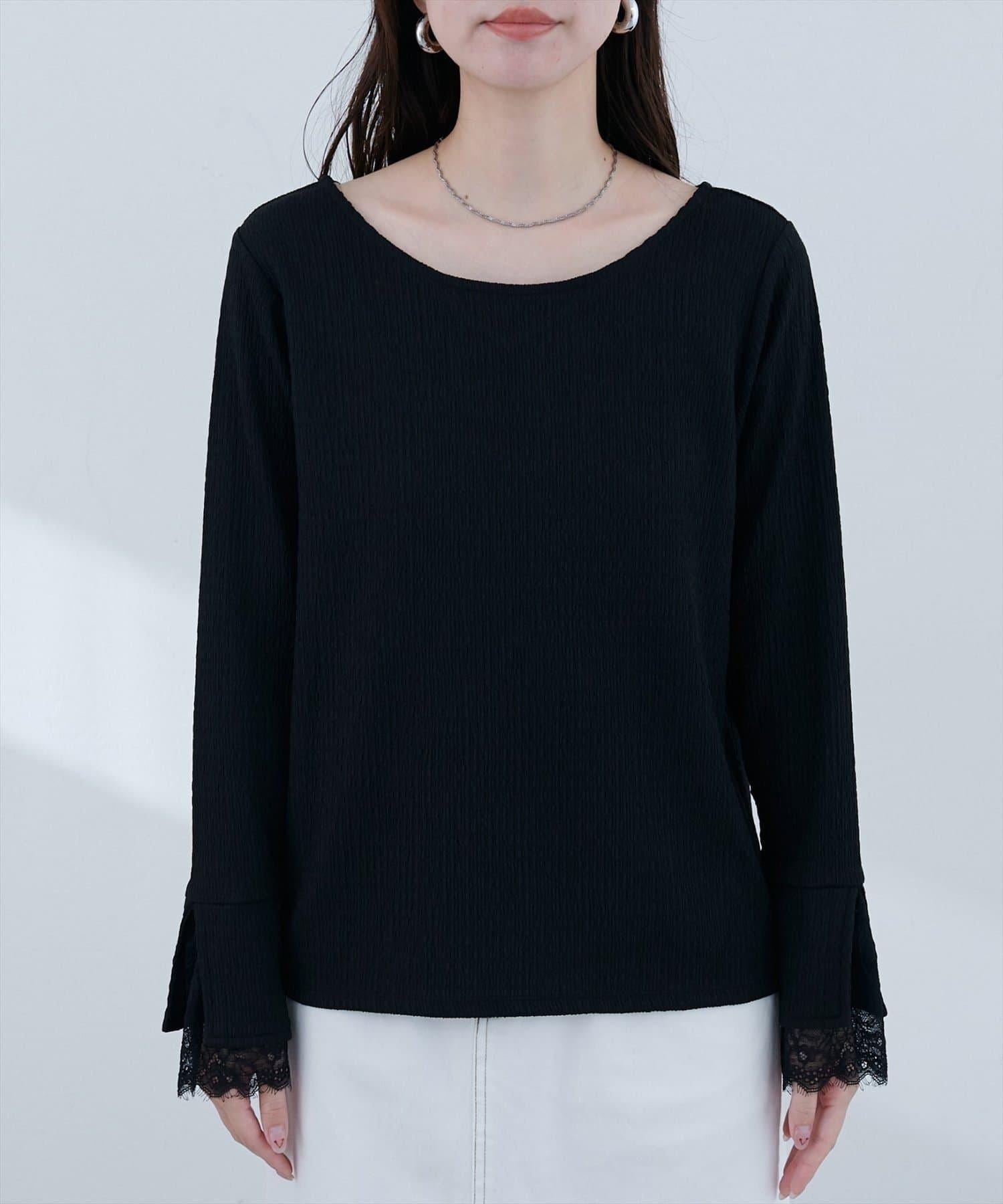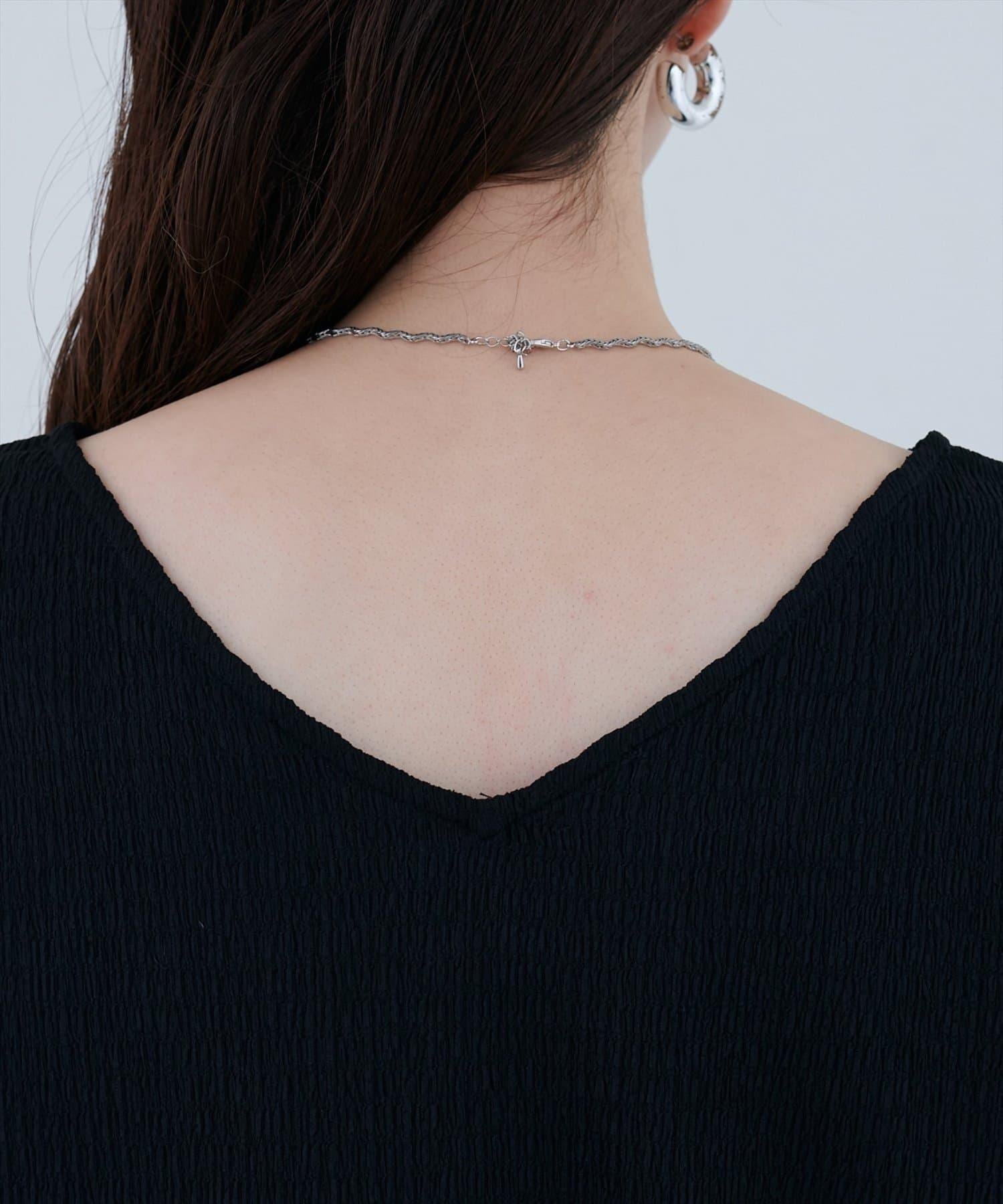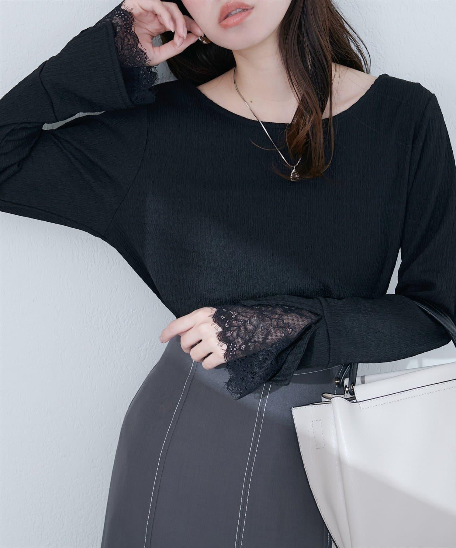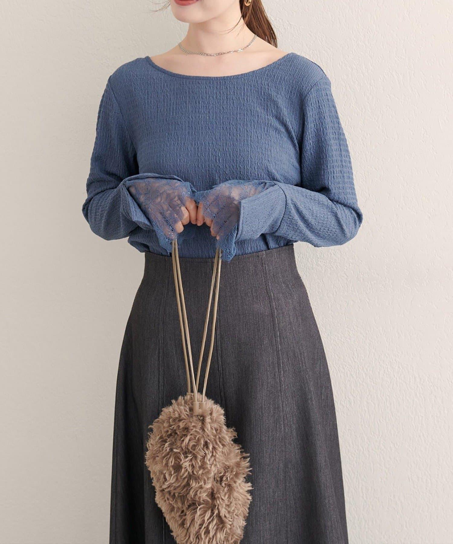 V 領可以穿在前面,露出肩部,營造出寬鬆的感覺。蕾絲不甜膩,給人精緻的印象。