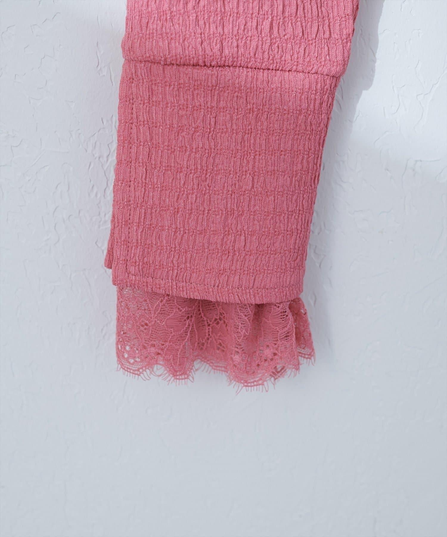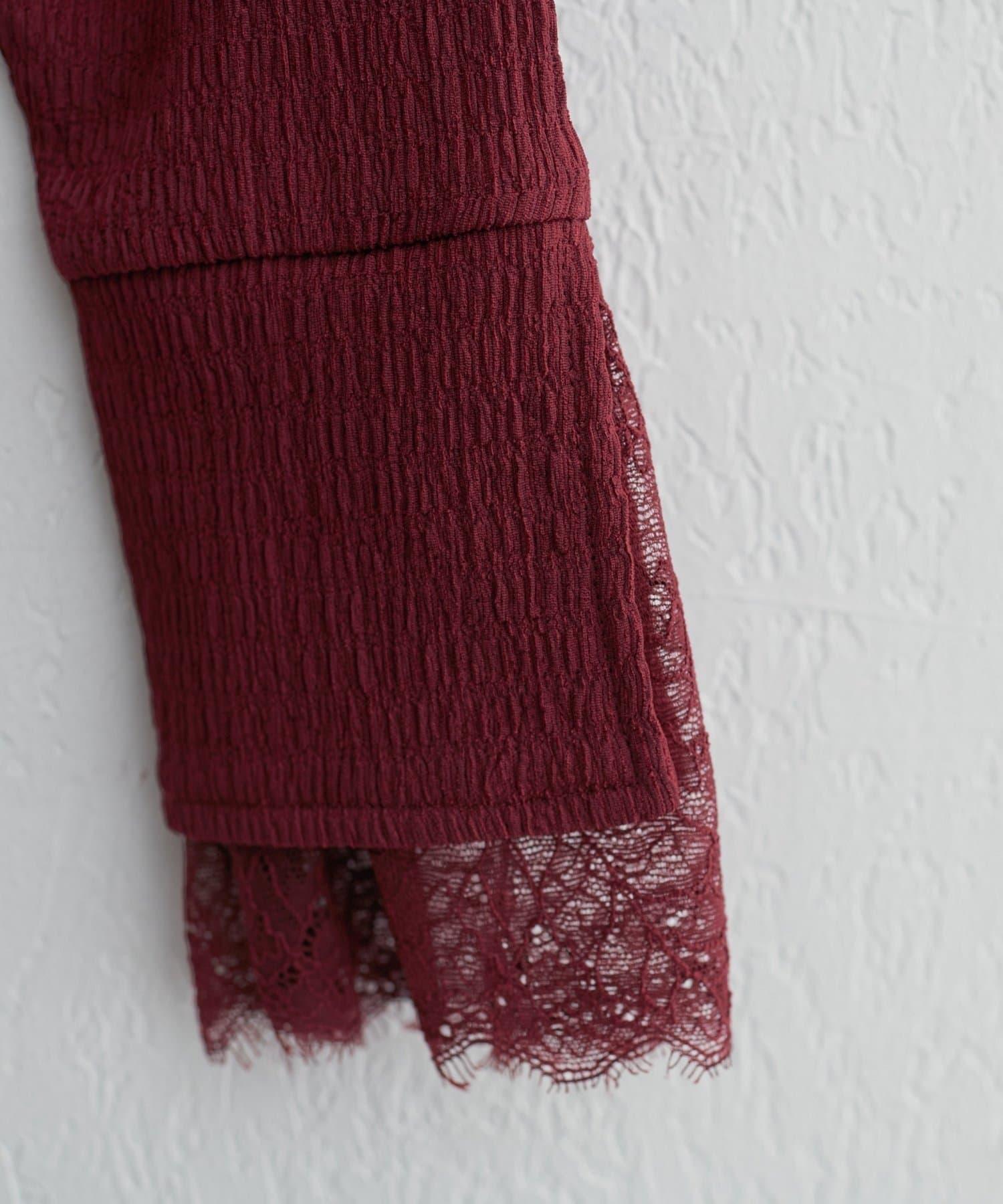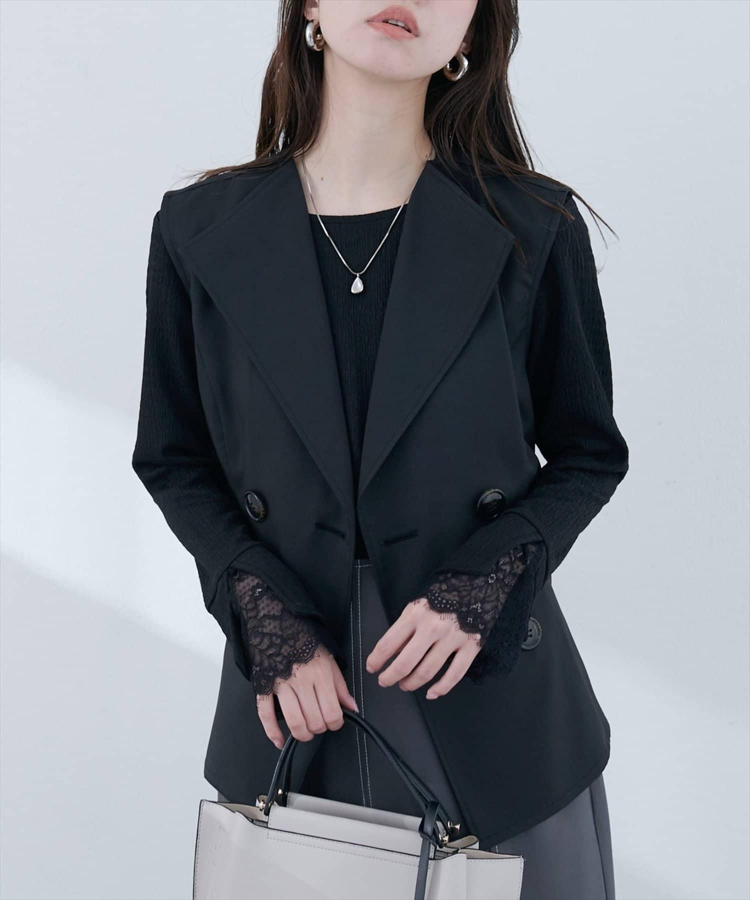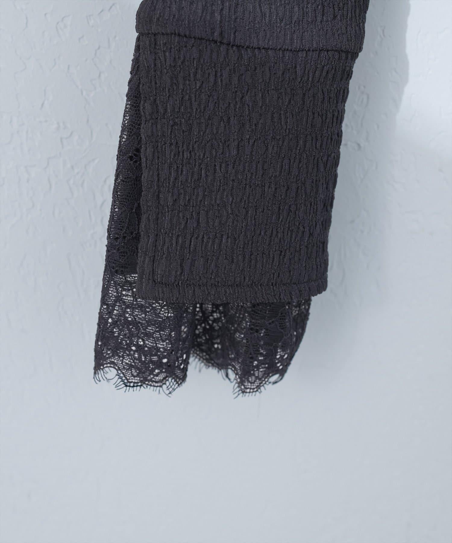 長袖剪裁,前後雙向設計,袖口處有精緻的蕾絲花邊。