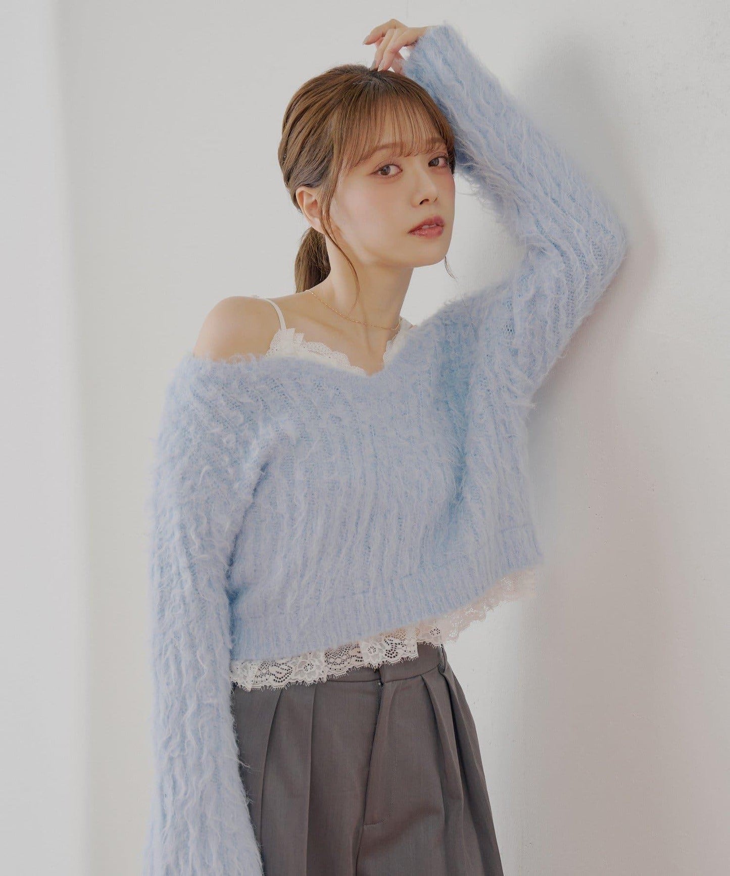 可愛的針織♡,蕾絲和毛茸茸的針織對接設計
