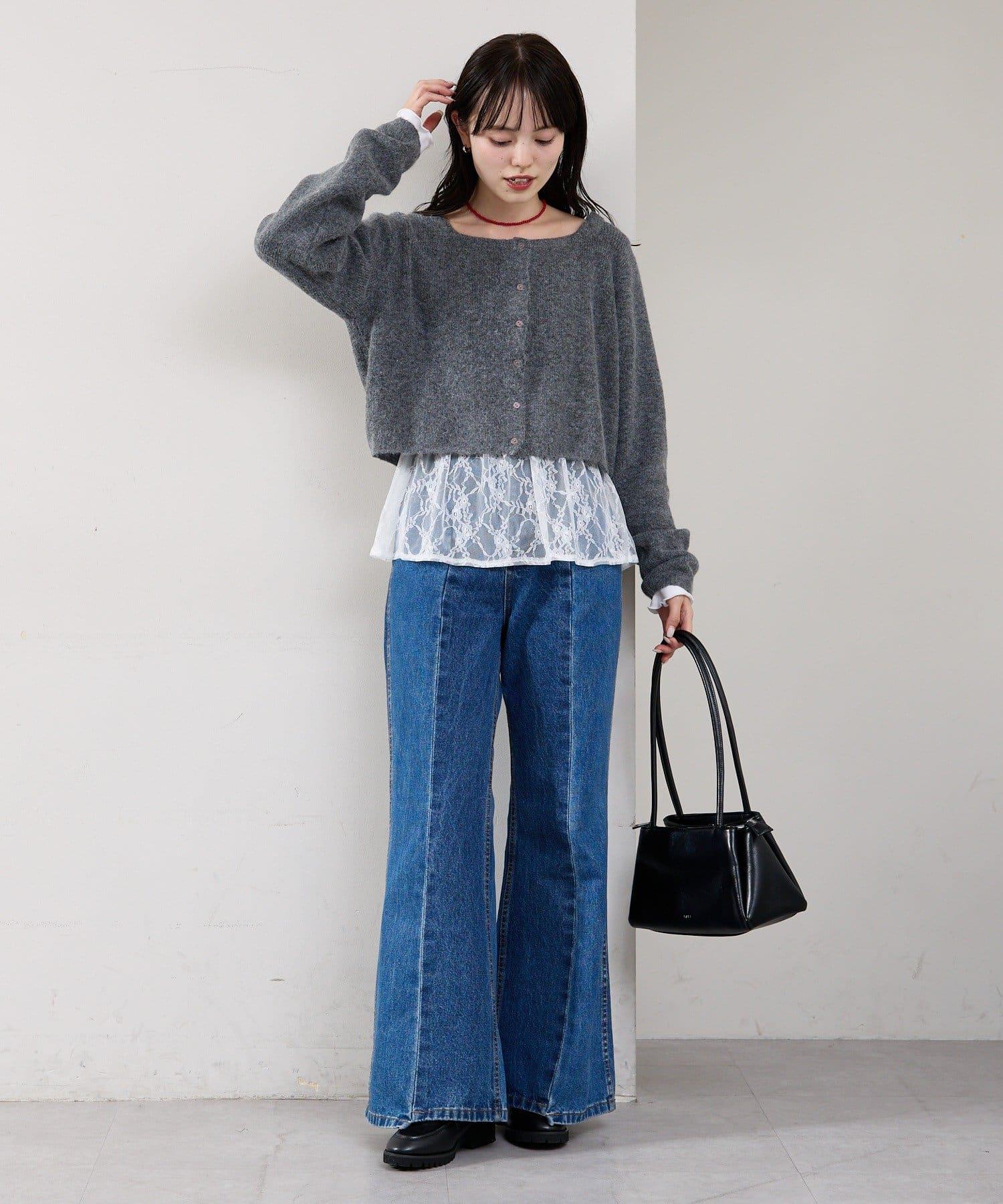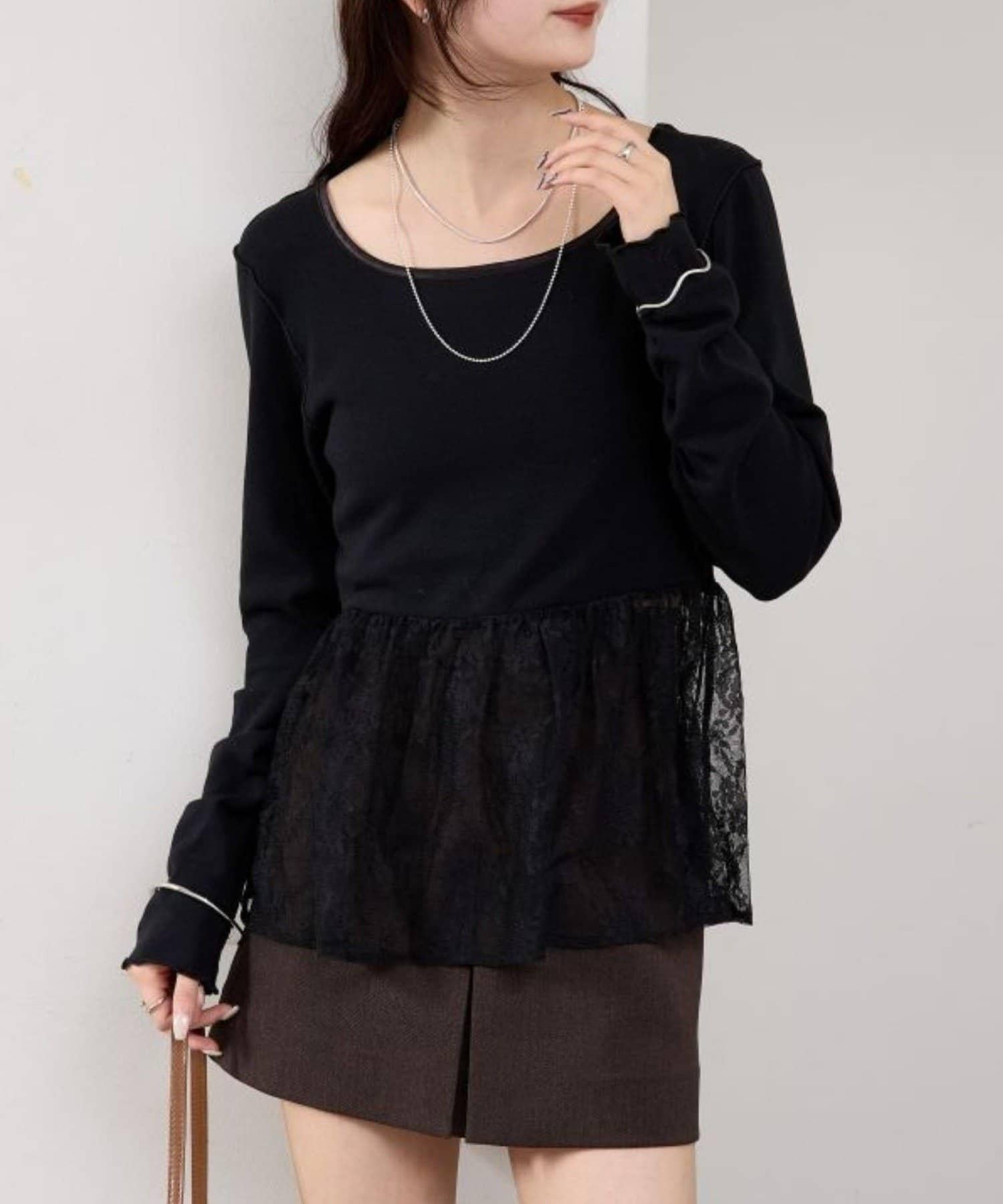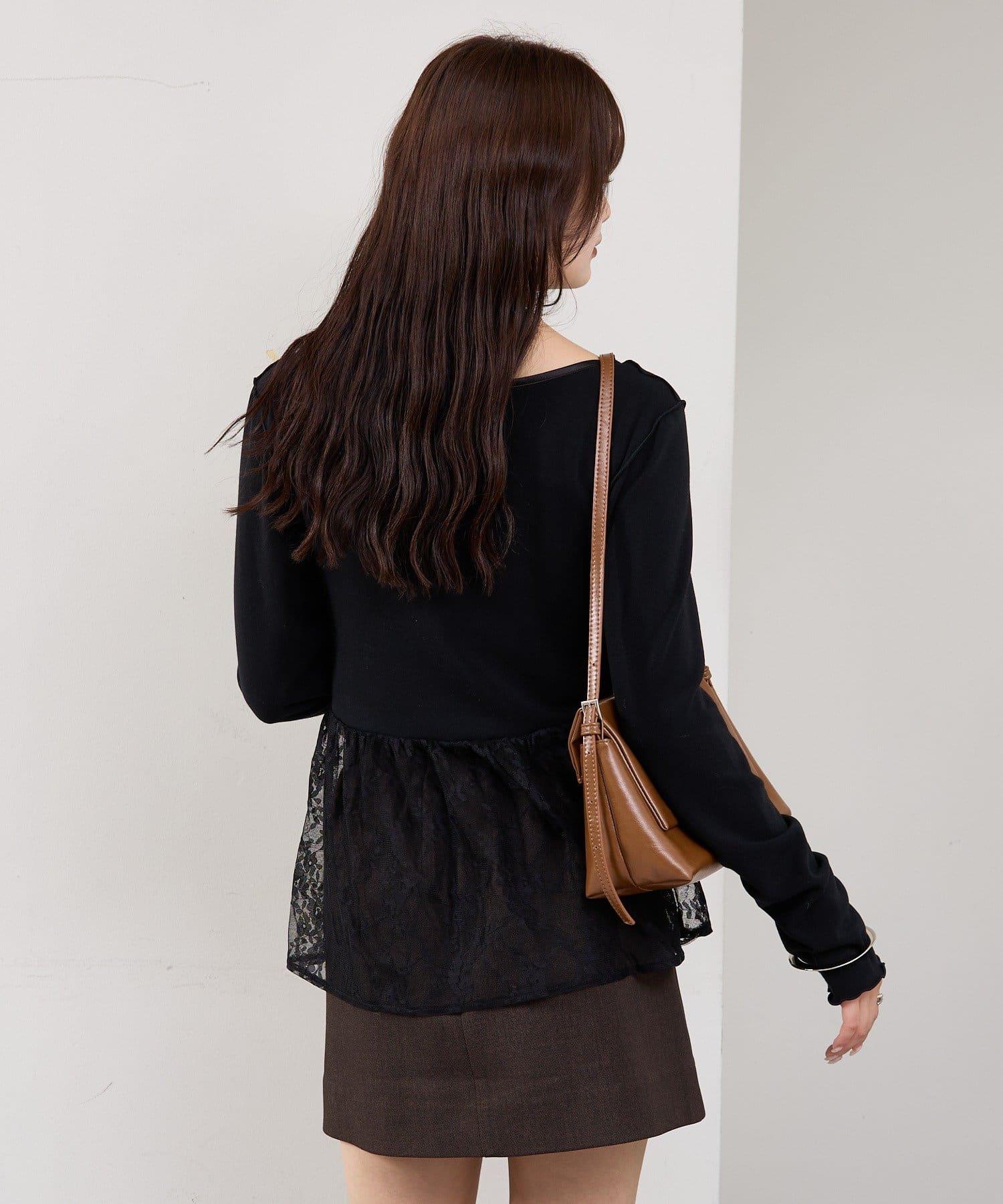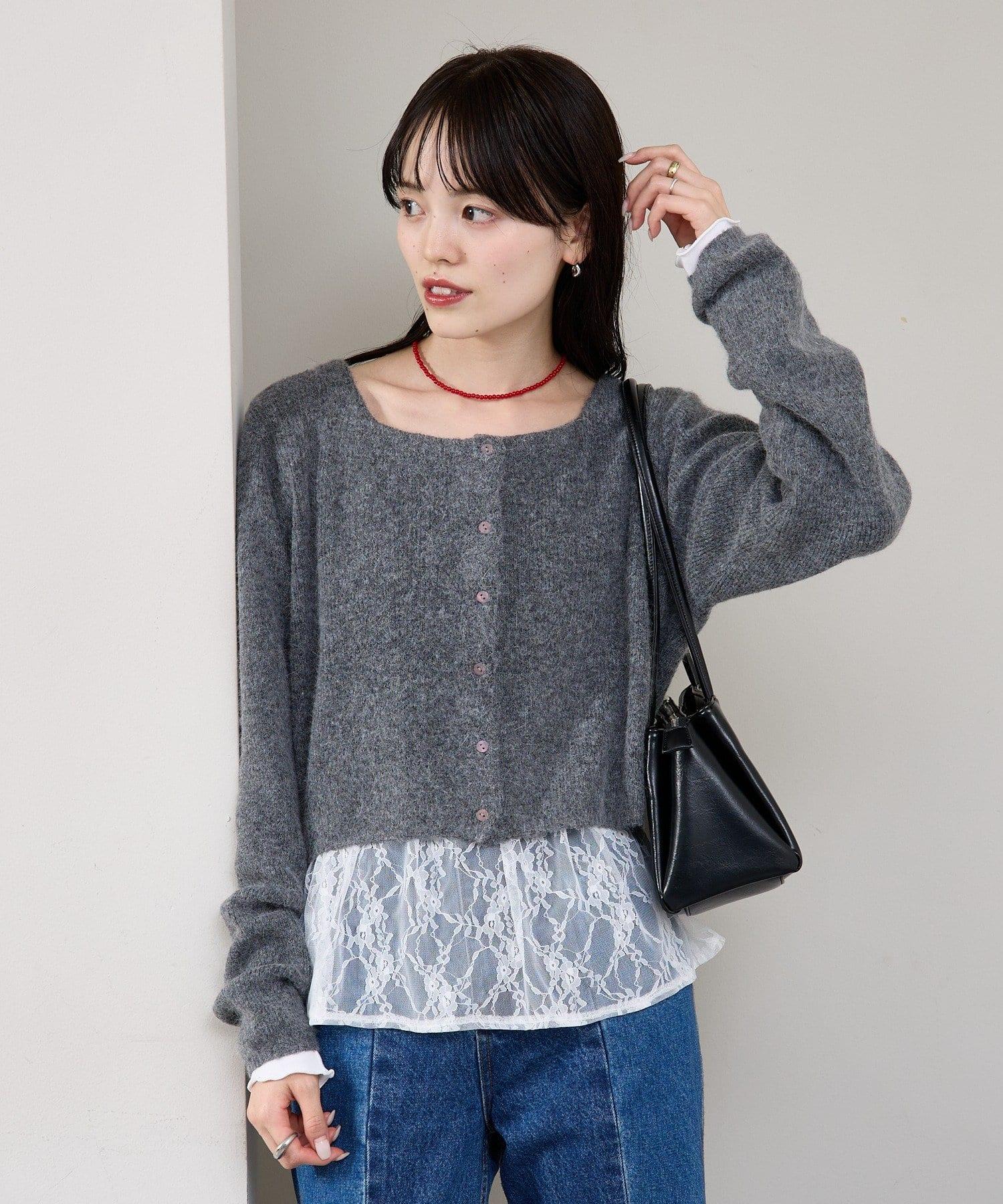 將其作為小巧開衫的內搭,露出下襬的蕾絲部分,讓秋冬風格更顯女性魅力。