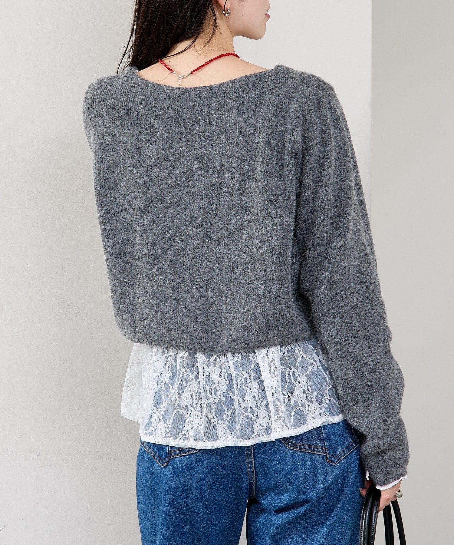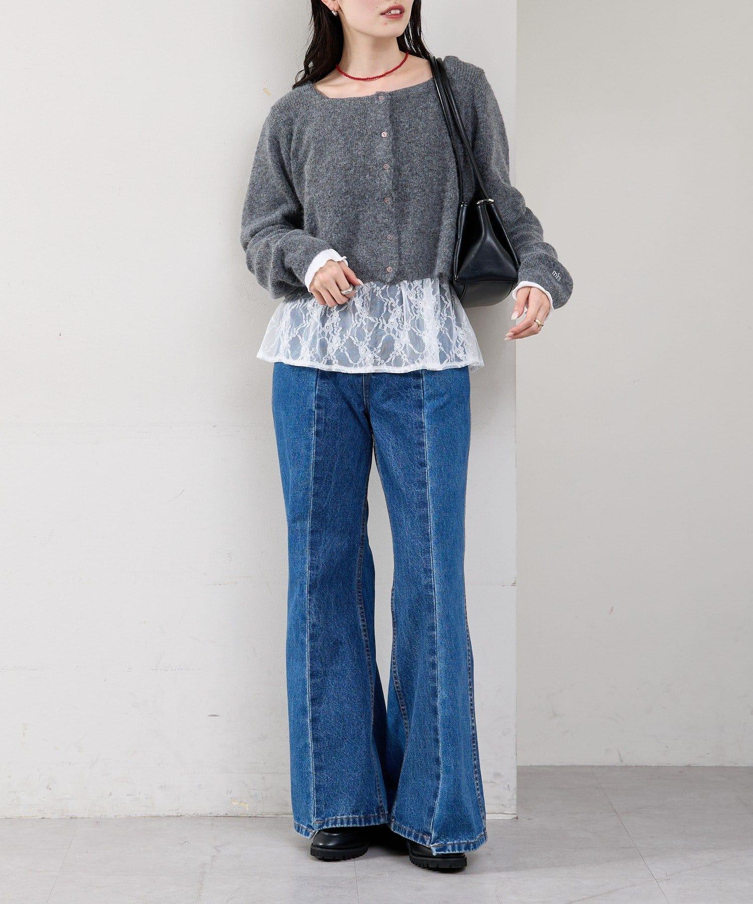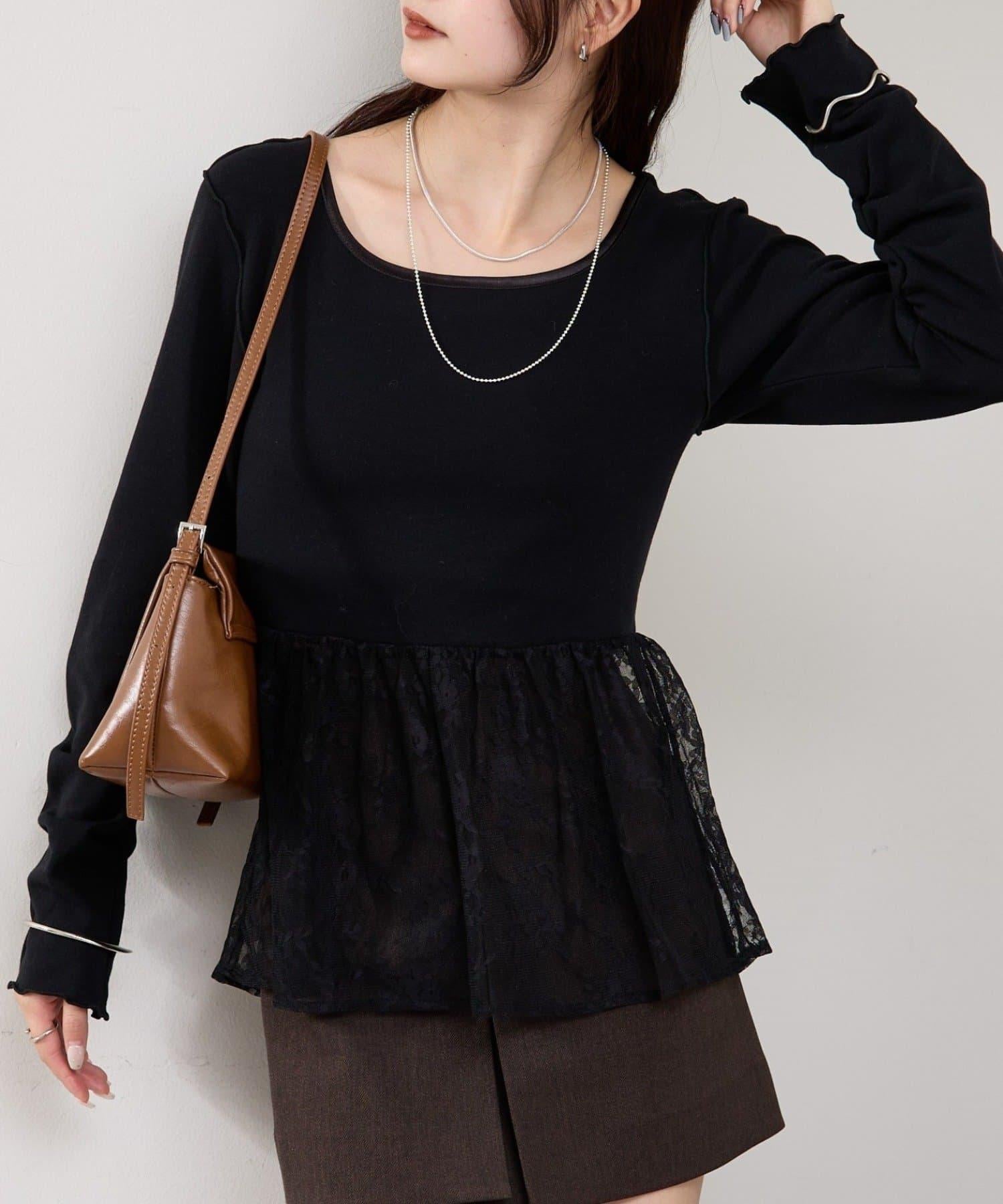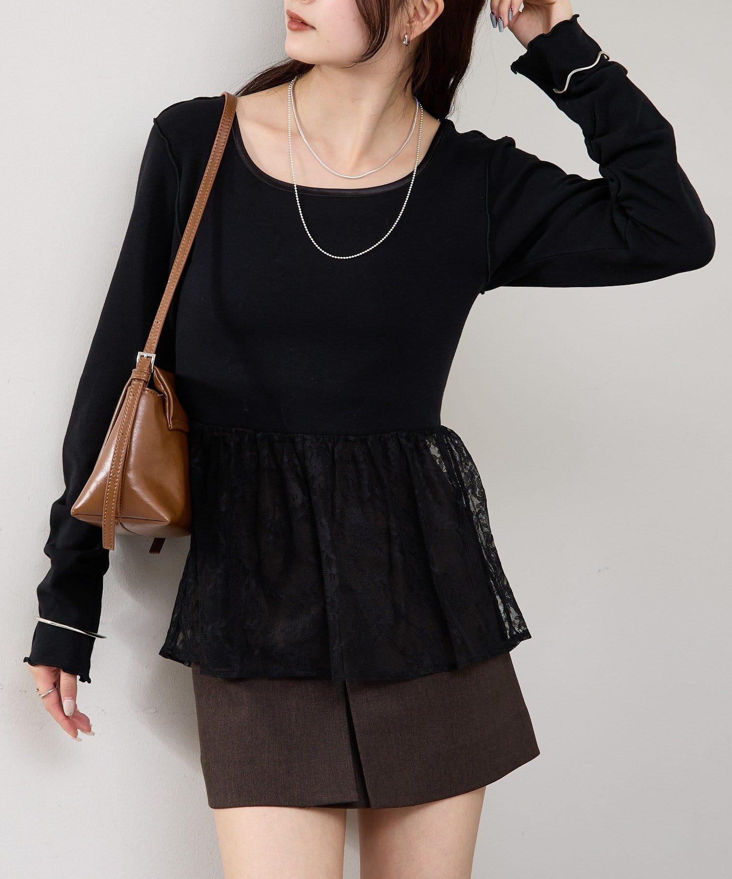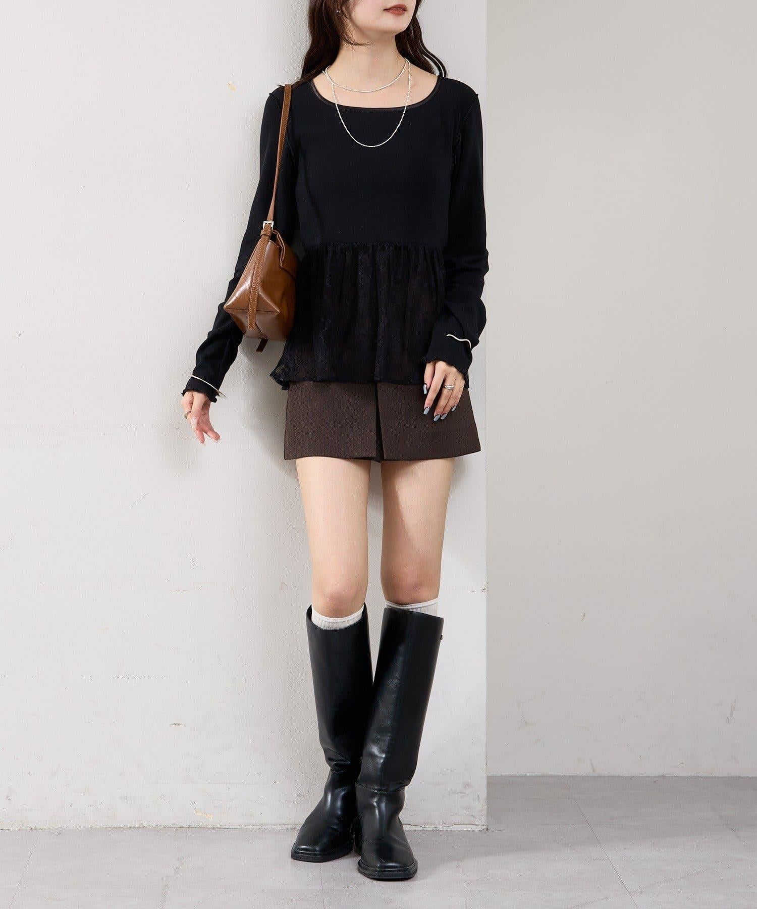 將其作為小巧開衫的內搭,露出下襬的蕾絲部分,讓秋冬風格更顯女性魅力。