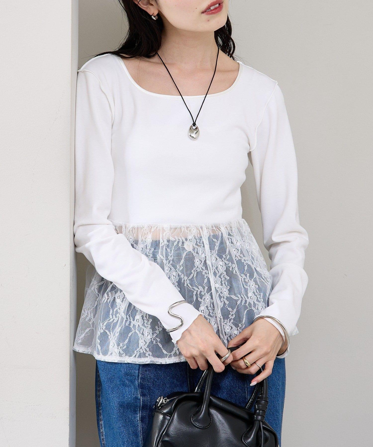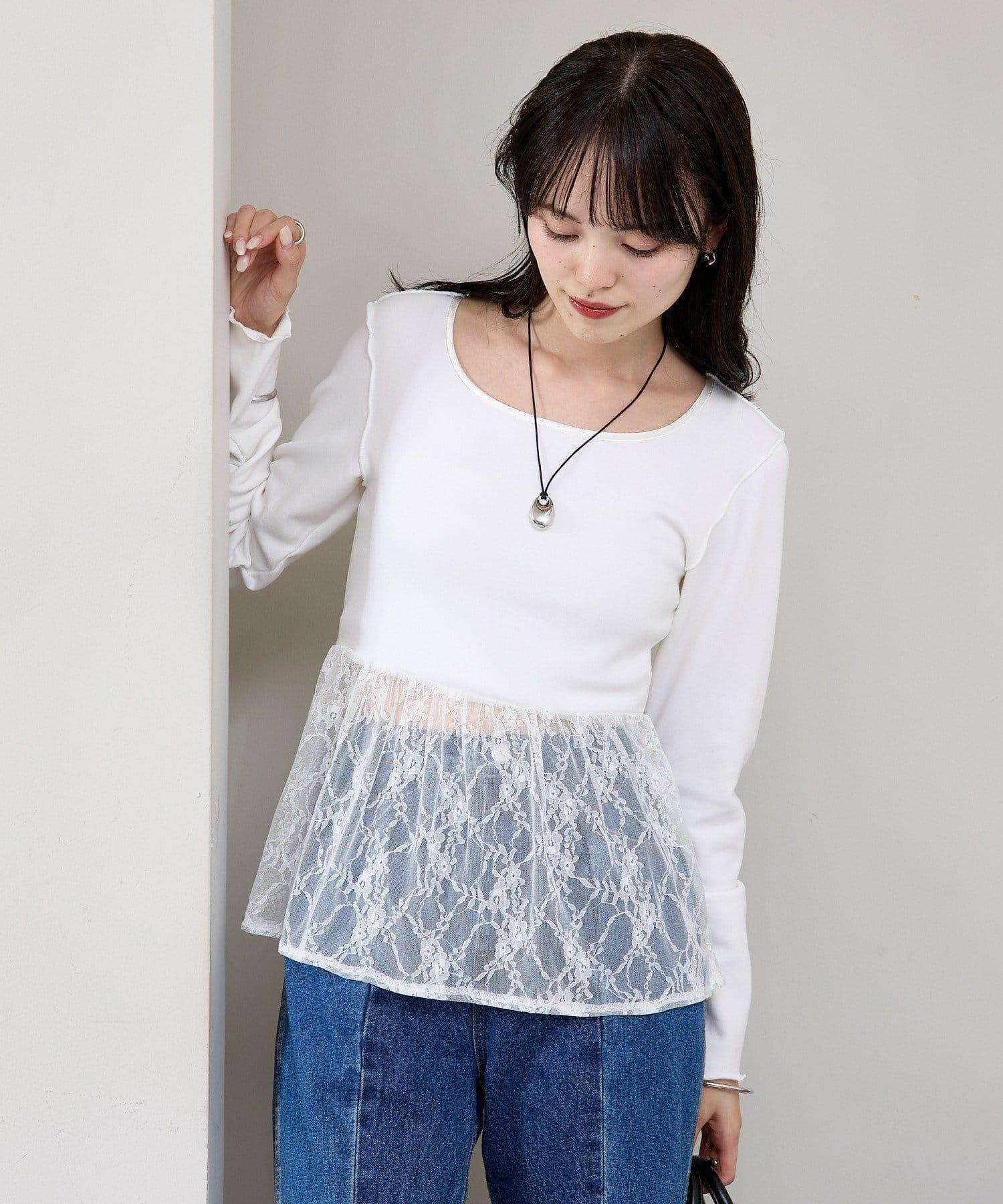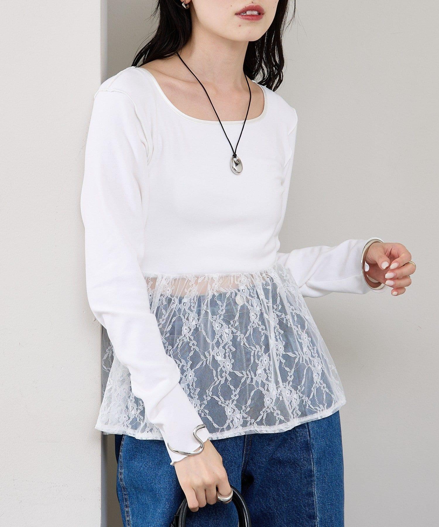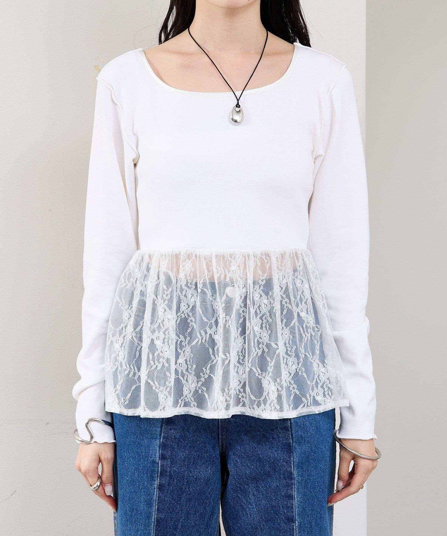 蕾絲蓬蓬裙設計為這款長 T 增添了女人味。