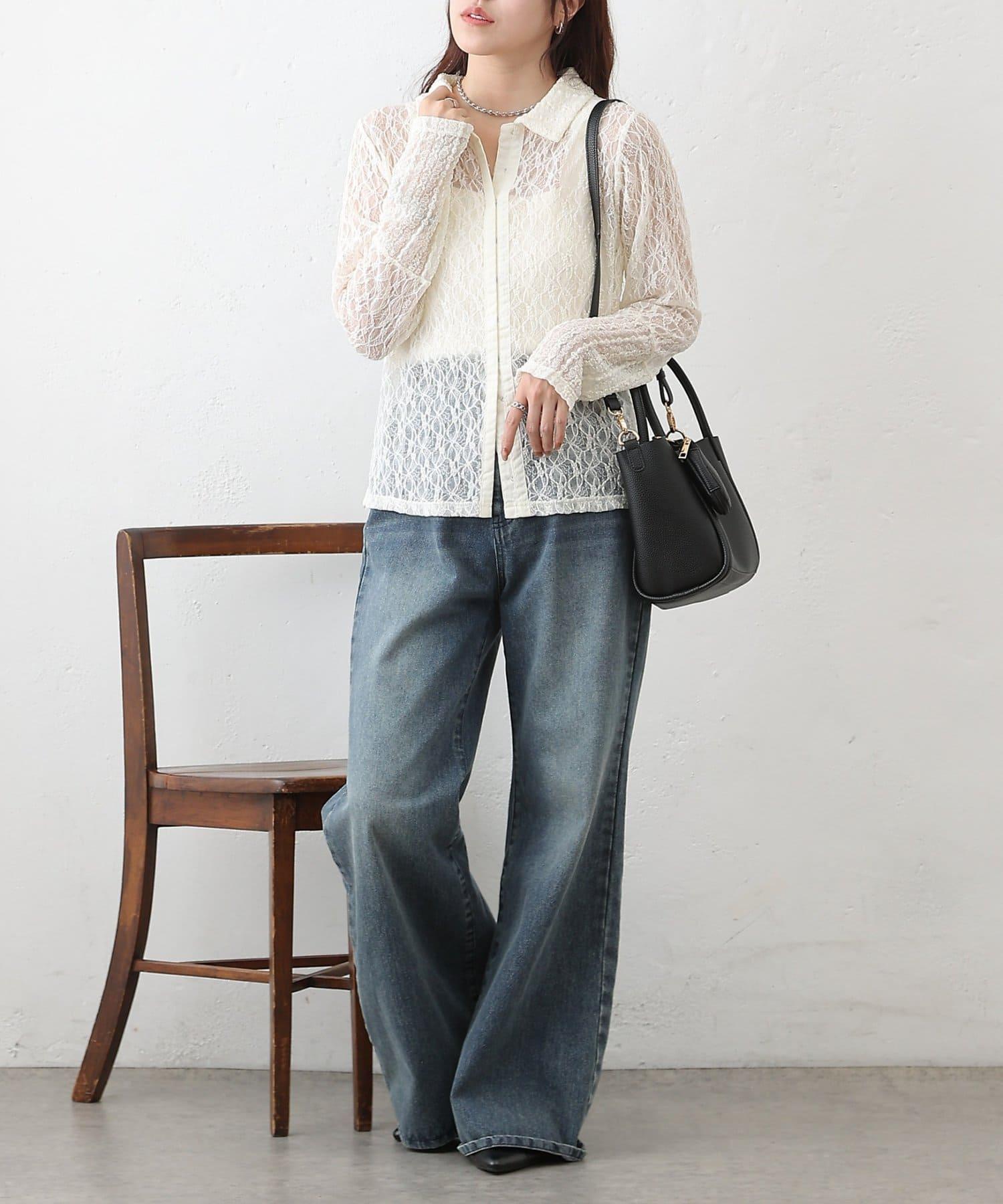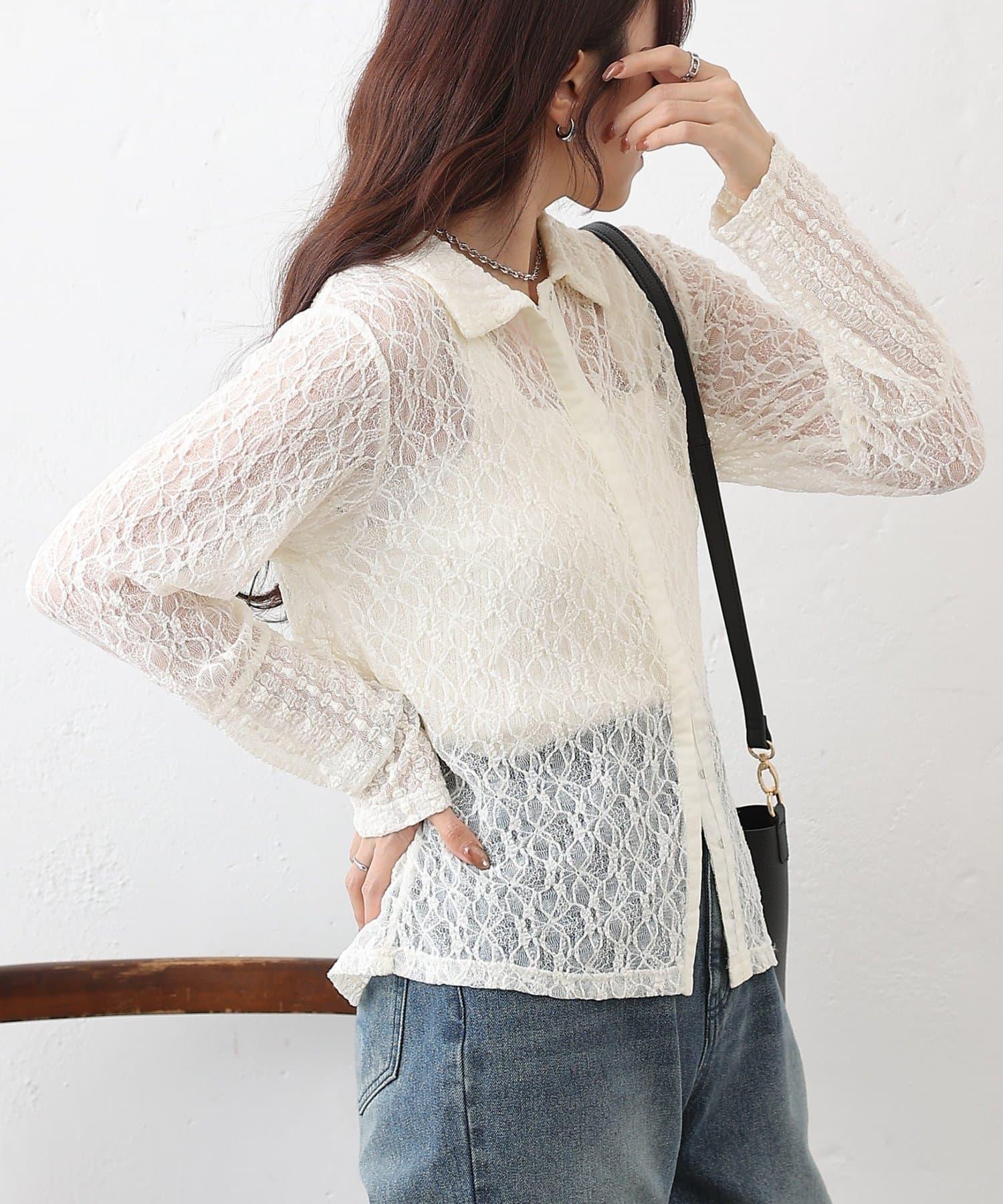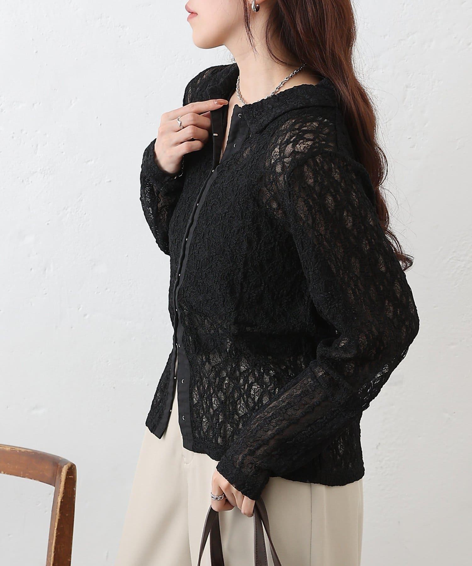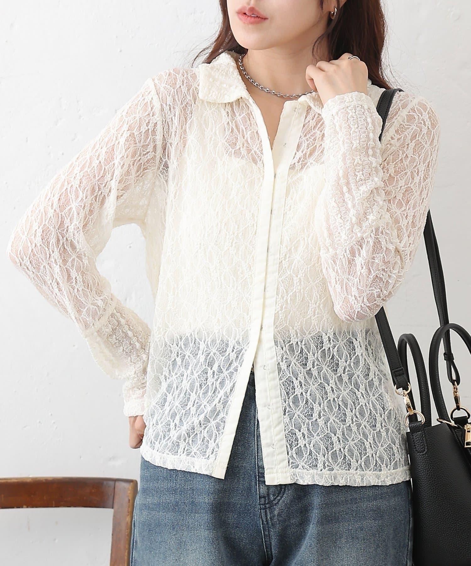 這款襯衫開衫採用蕾絲面料,將女性的柔美與成熟完美結合。