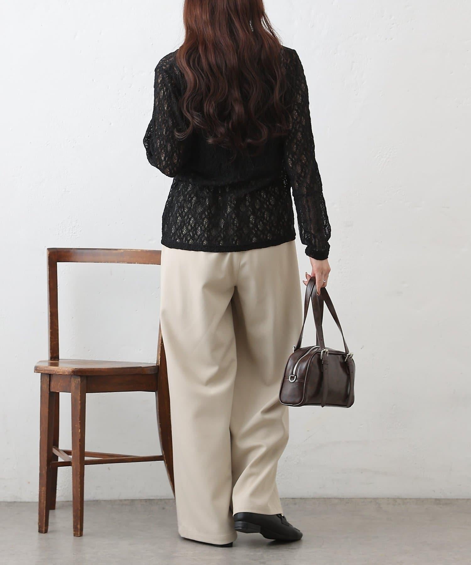 主體部分的蕾絲面料透明度適中,衣袖和衣領處有點綴。