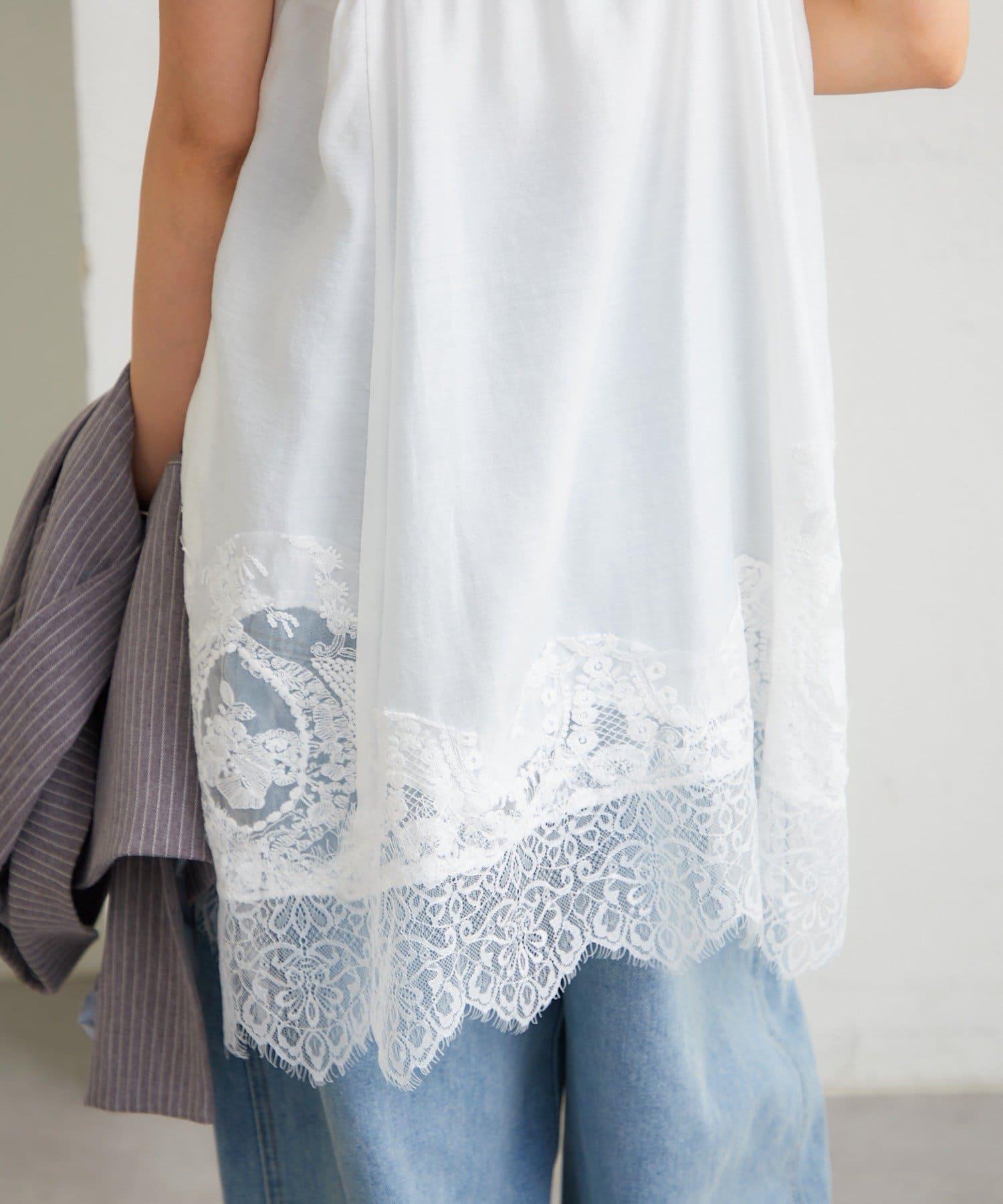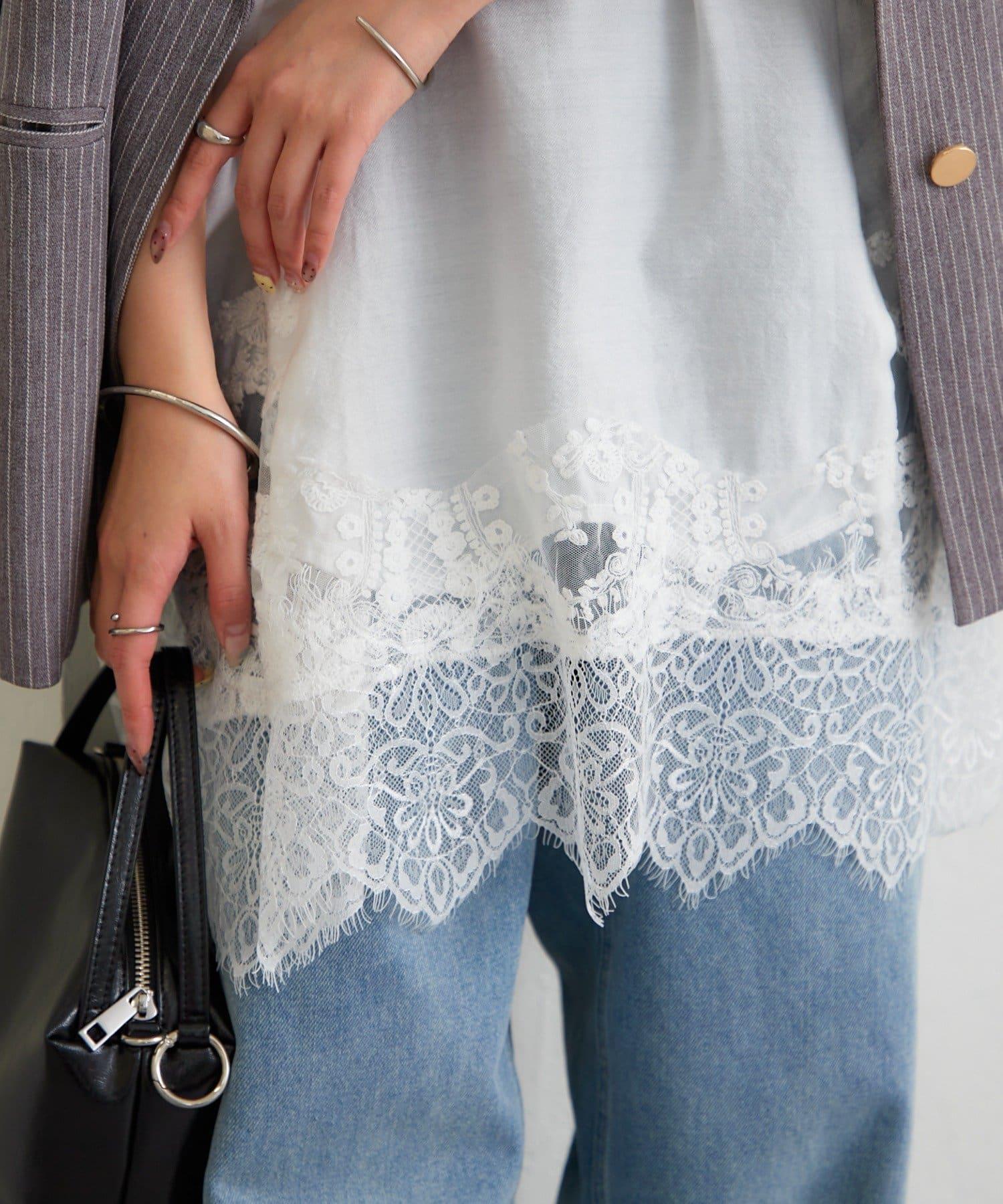 蕾絲一直延伸到胸部和下襬,更顯女性柔美。