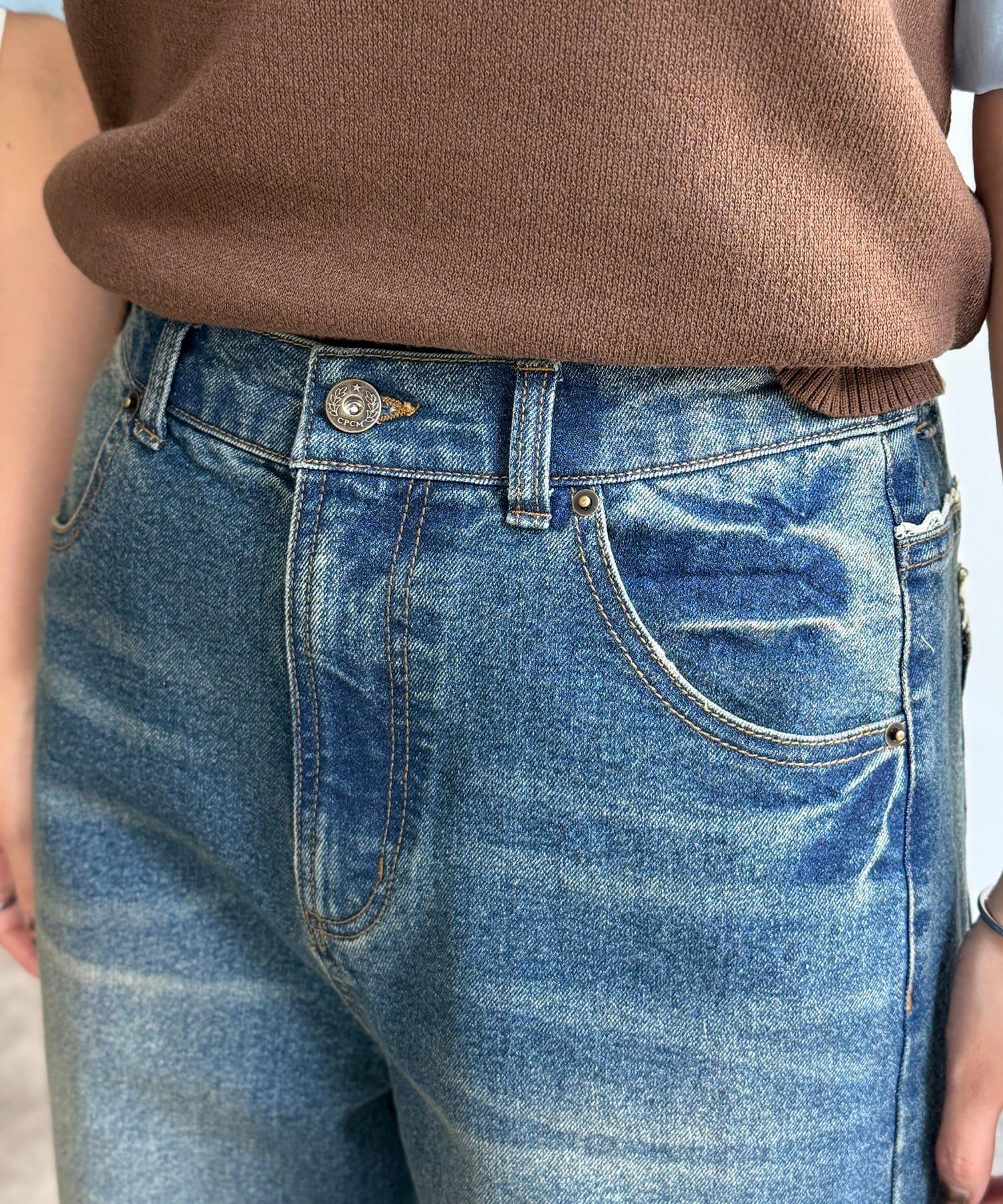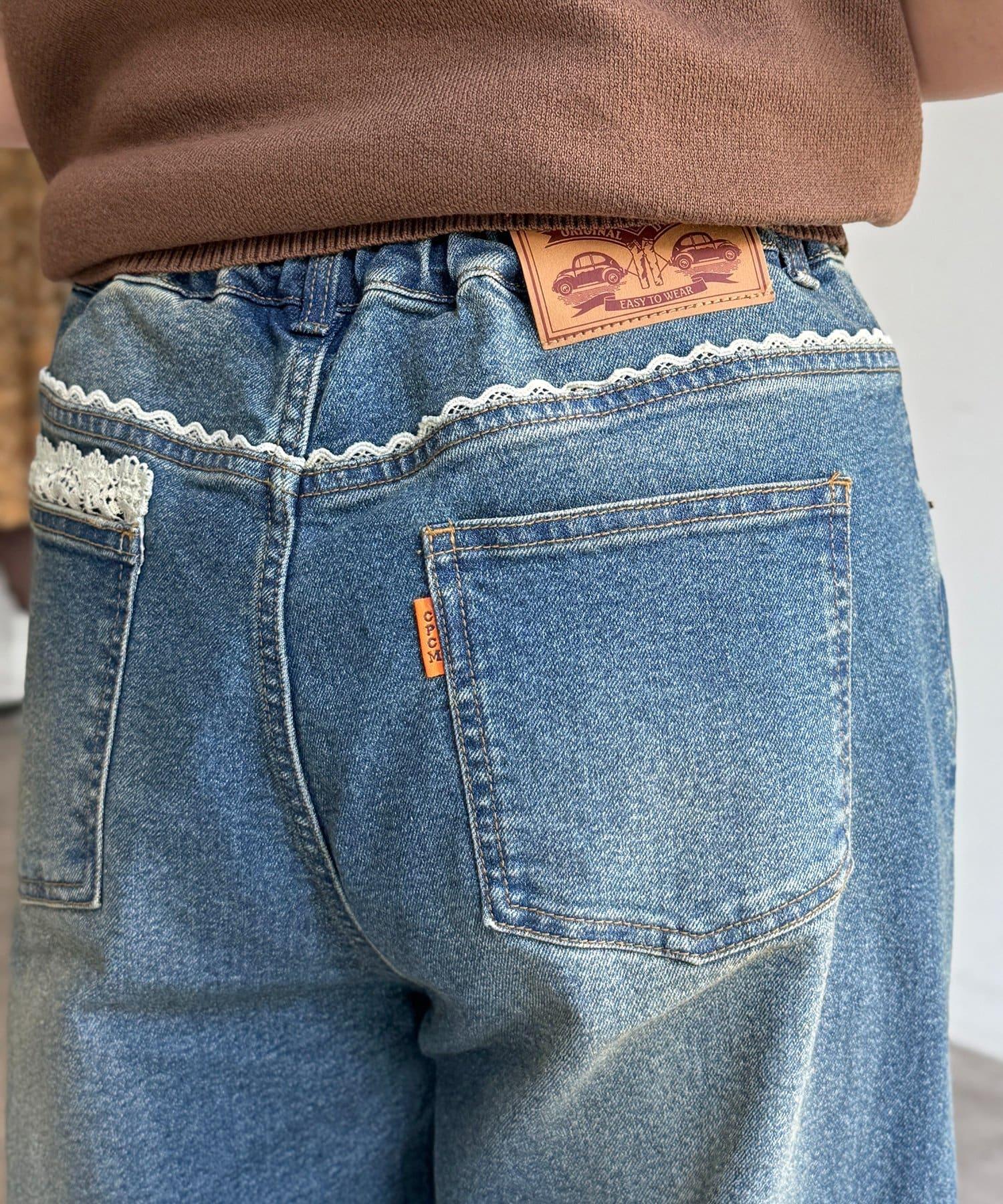 蕾絲拼接 彎刀 丹寧 牛仔褲
