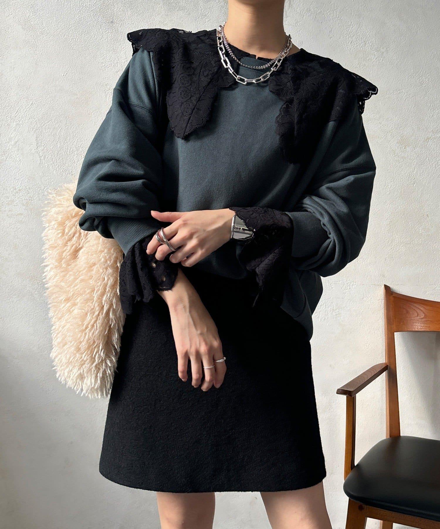 這款襯衫的衣領和衣袖均採用蕾絲設計。