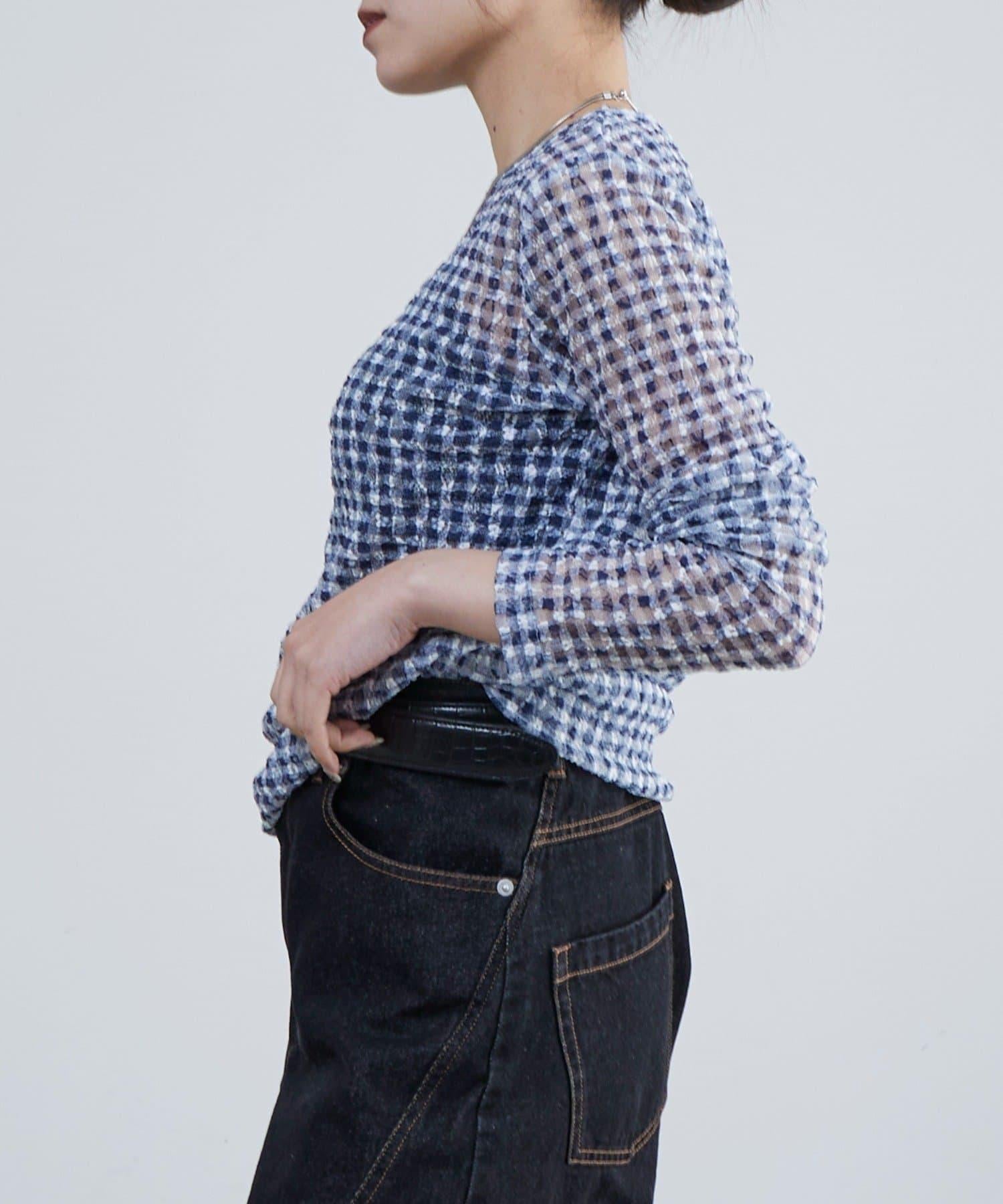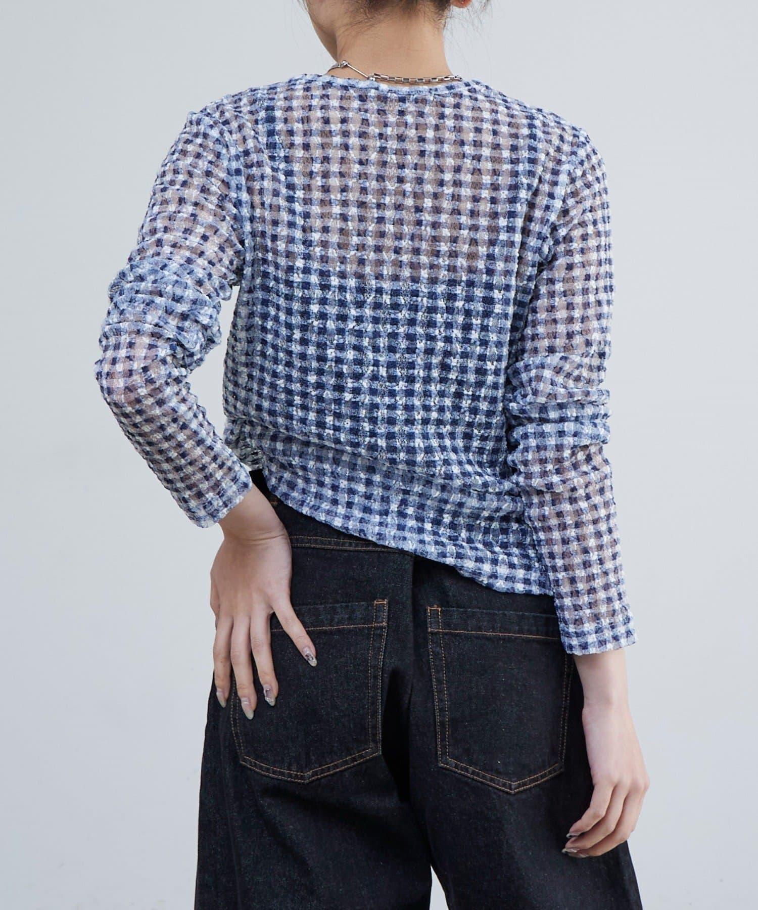 蕾絲格紋上衣